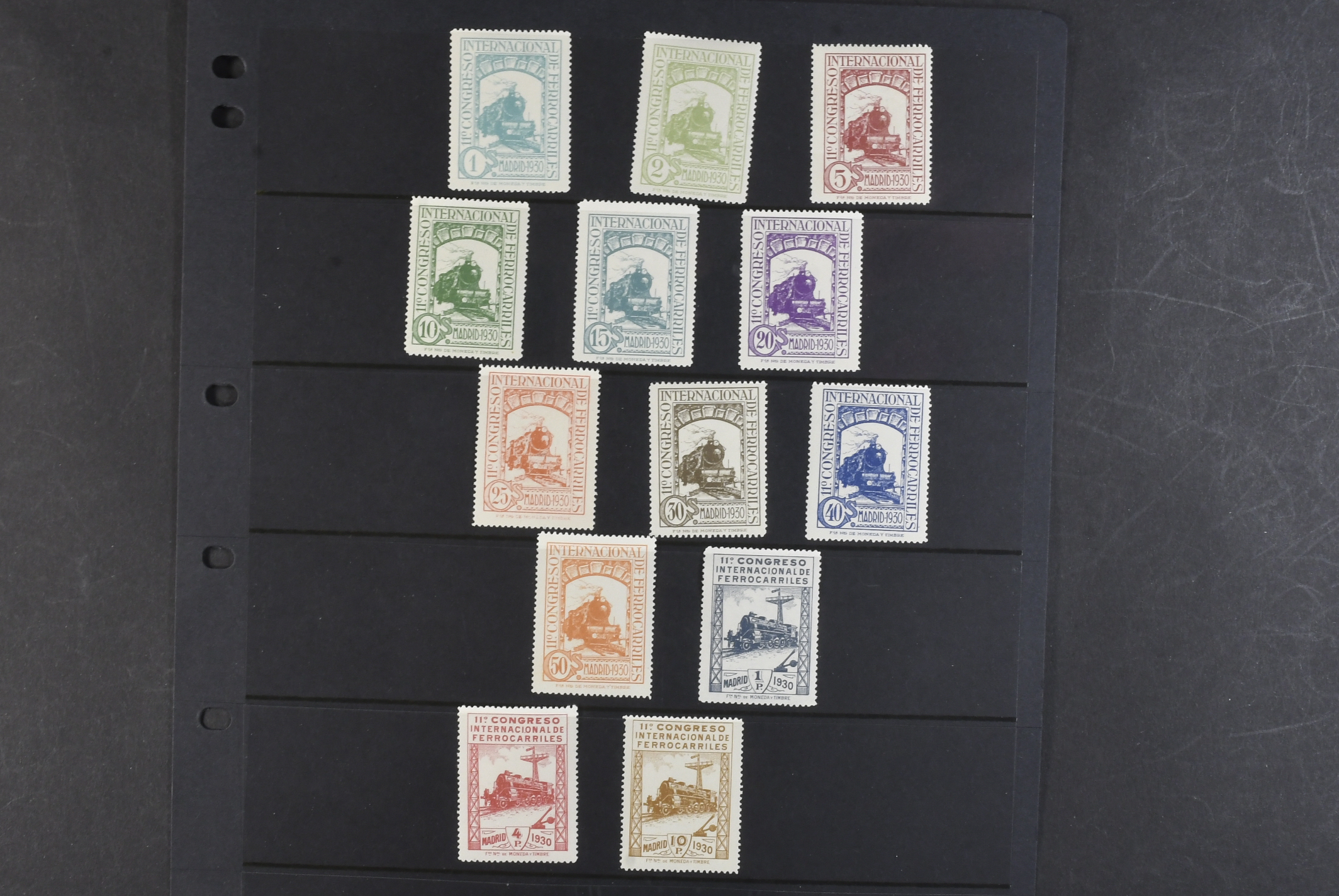 Spain. Michel 444–56 ★★, 1930 Railway Congress SET (13). Some of the lower values *, but thew high values are **. 10 Pta with minor short perf. EUR 1300