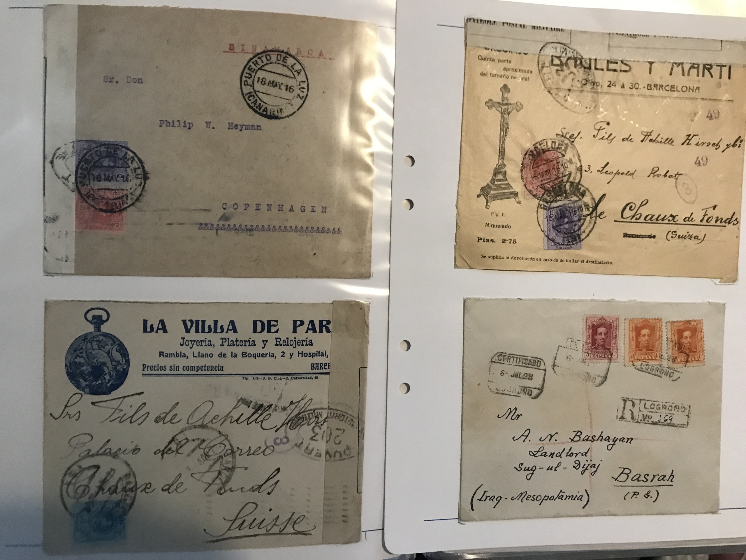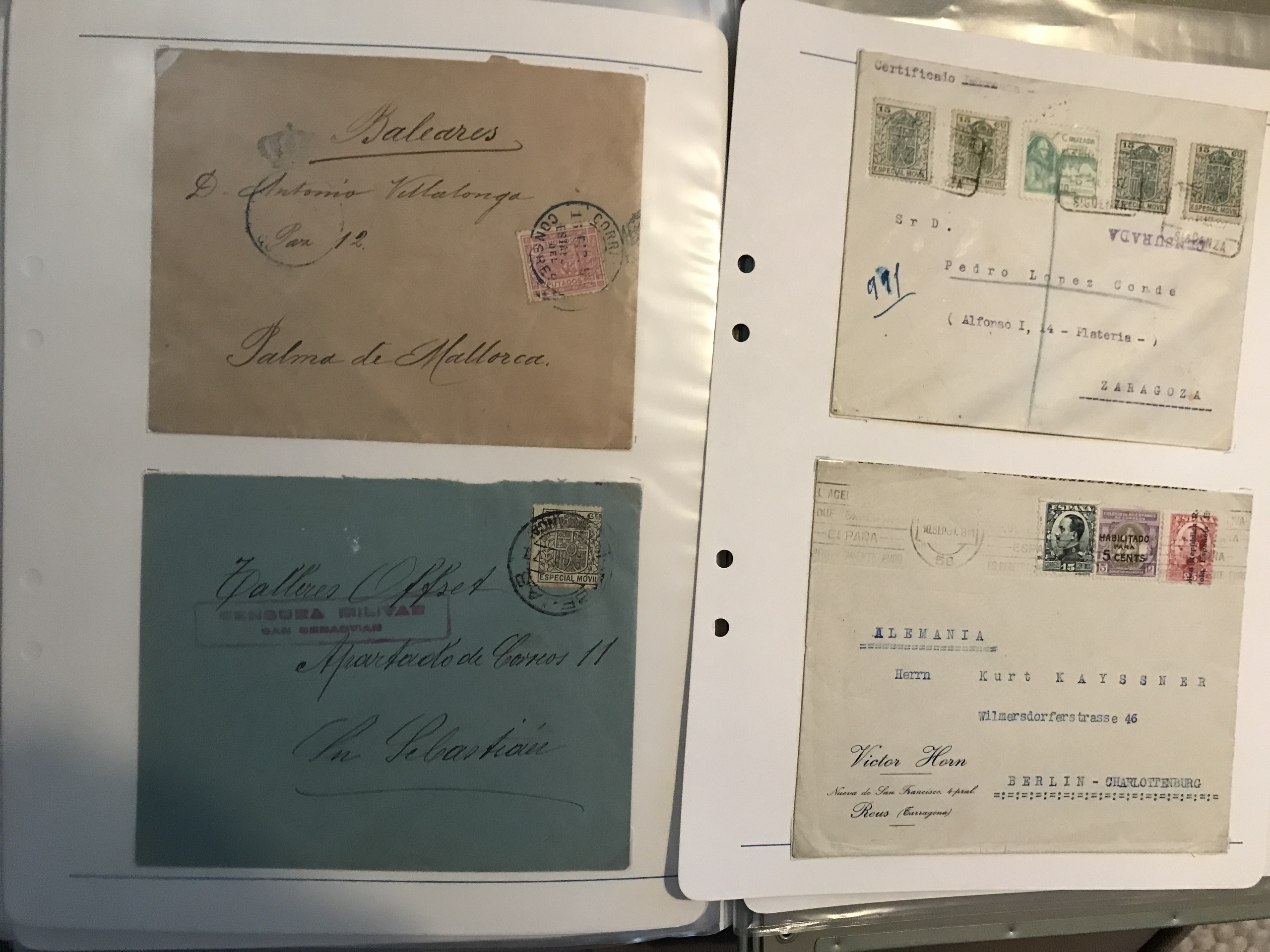 Spain. Covers. Binder with 116 covers 1821–1930s incl. 27 prephil. Containing many censor and registered, some air, etc. Please see a selection of scans at www.philea.se.