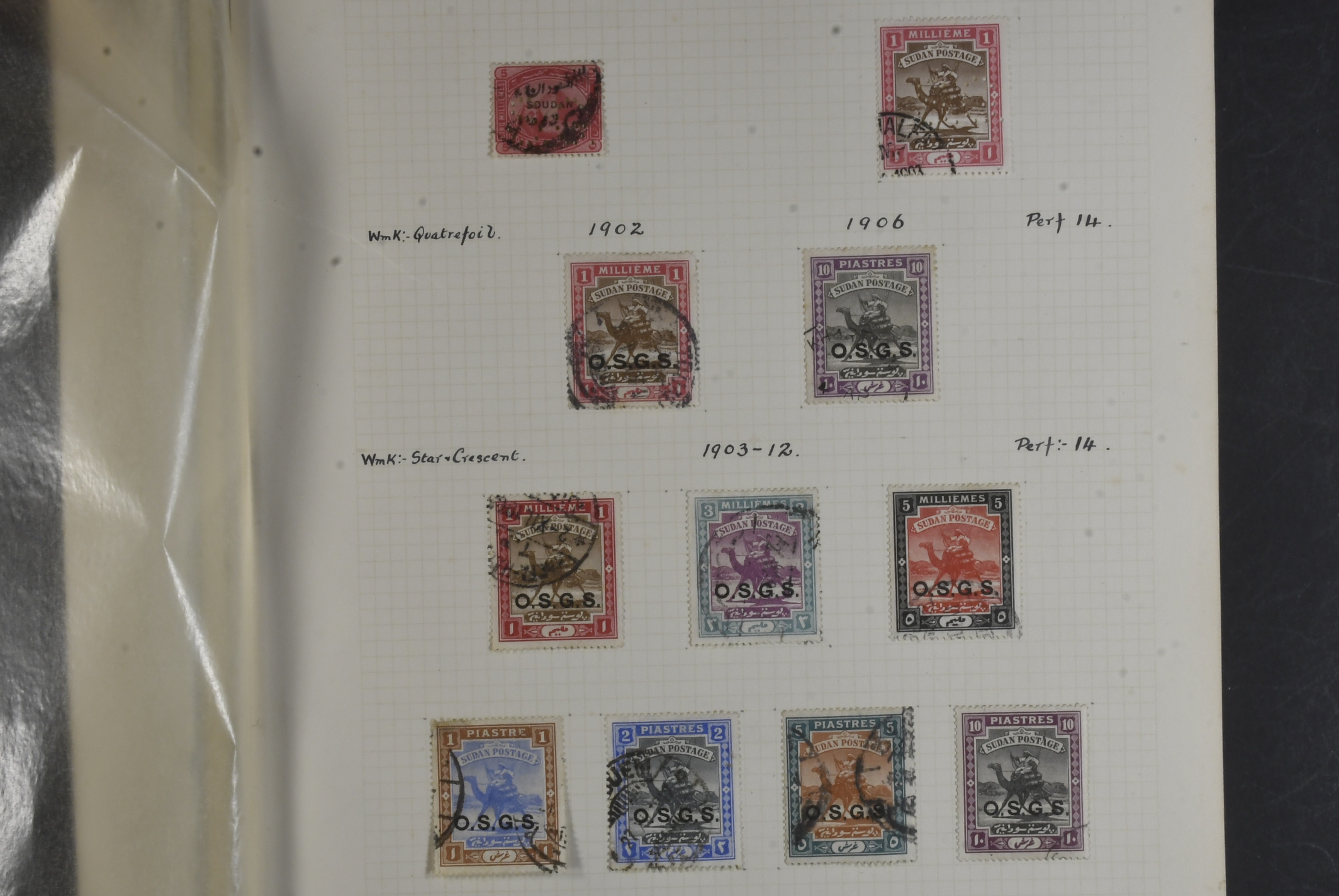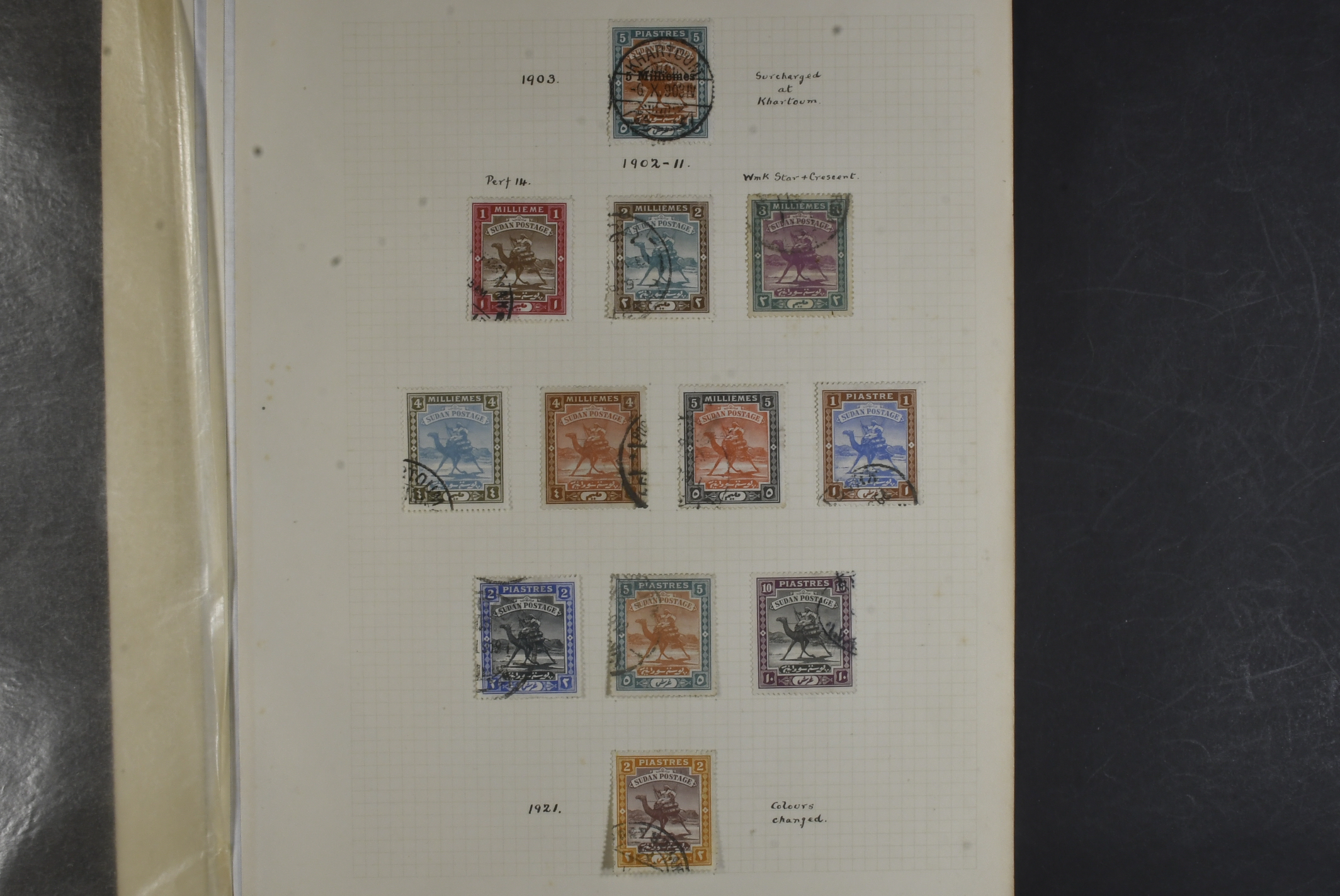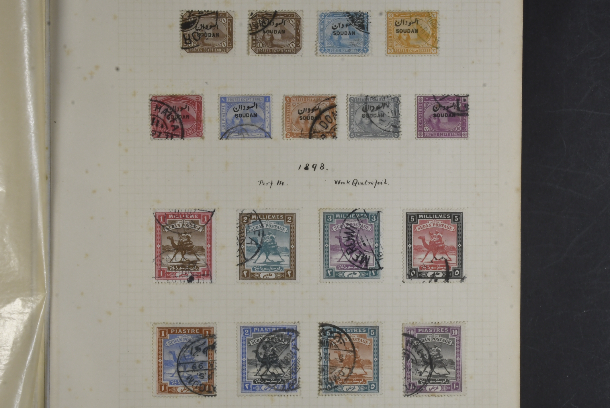 Sudan. Used. Outstanding collection with diploma award certificate, stamps and postal history, all written up from the first issues onwards, all used, virtually complete incl. General Gordon, better o/ps, camel drivers, etc through to 1897 postage dues onwards, 1900 officials from perf-ins followed by extensive overprints, complete and finally the army service o/ps from 1905. The covers look interesting too!
