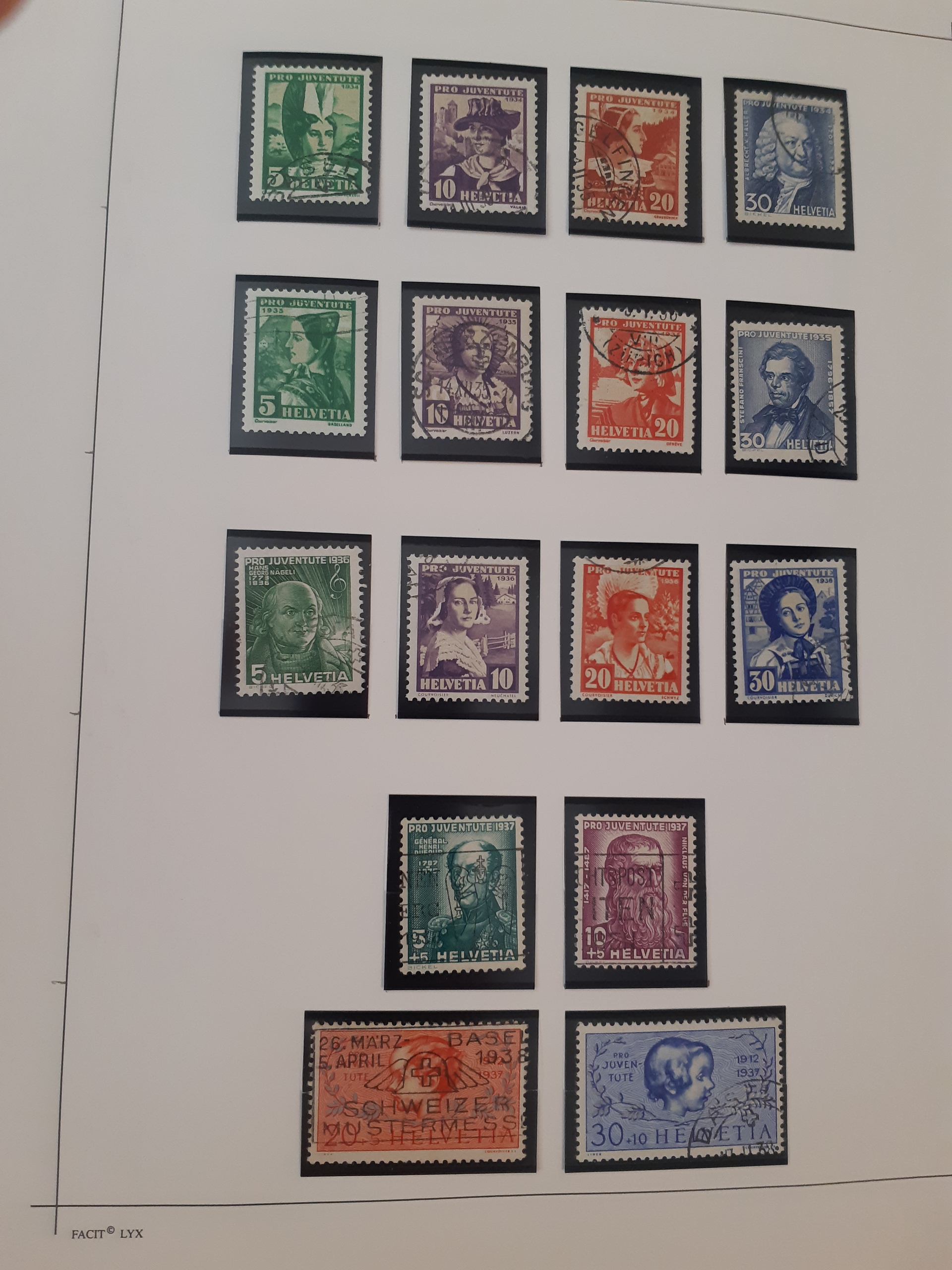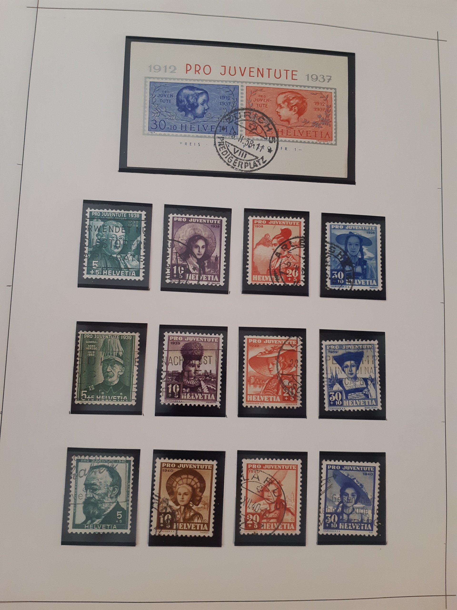 Switzerland. Collection used 1910s–1950s in Facit album. E.g. some souvenir sheets, incl. one on registered cover sent to Brugg. Please see a selection of scans at www.philea.se. Good quality. (400)
