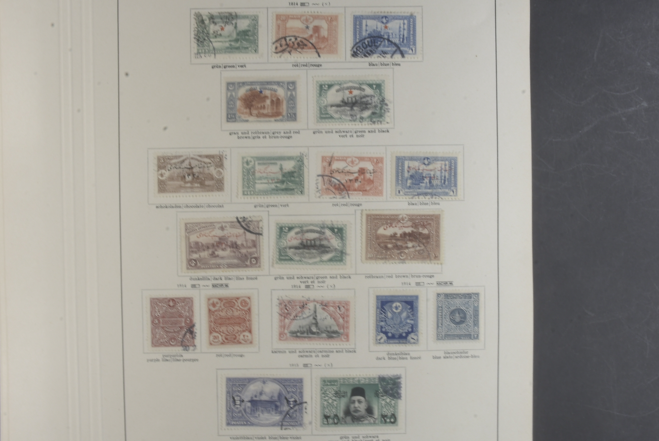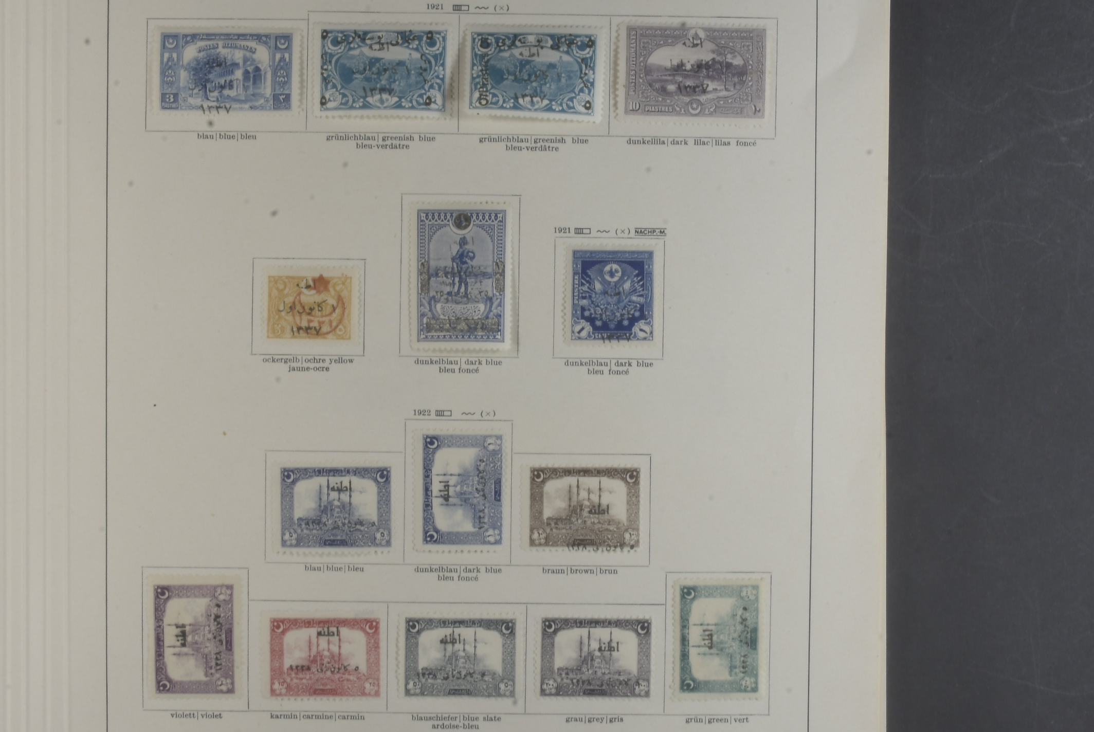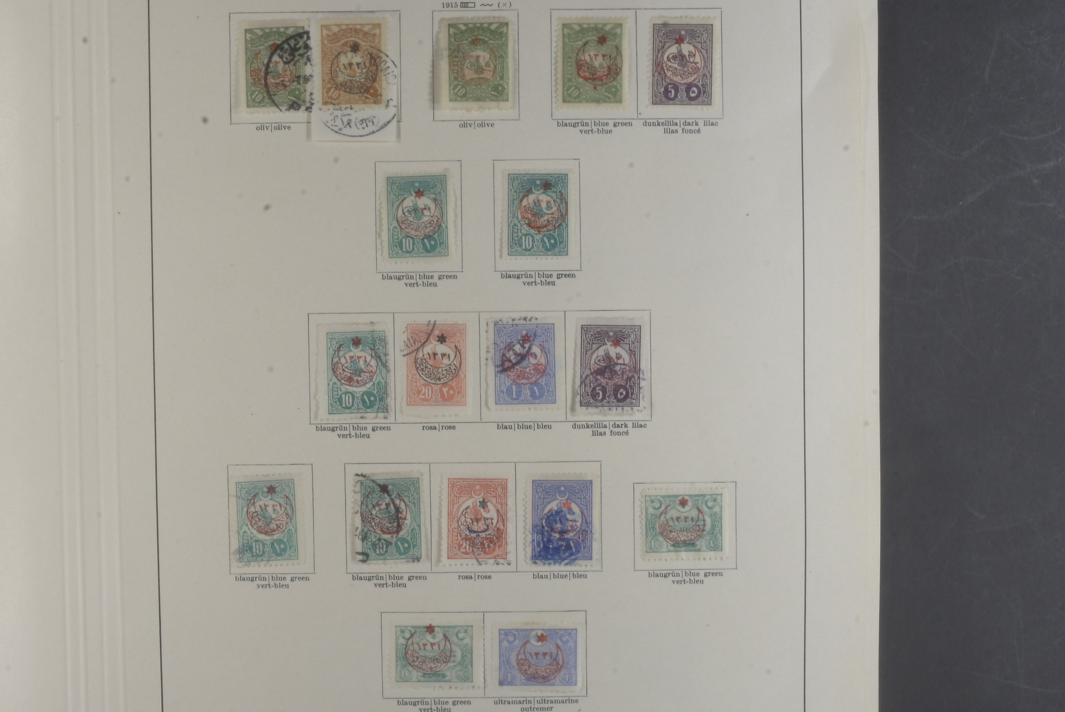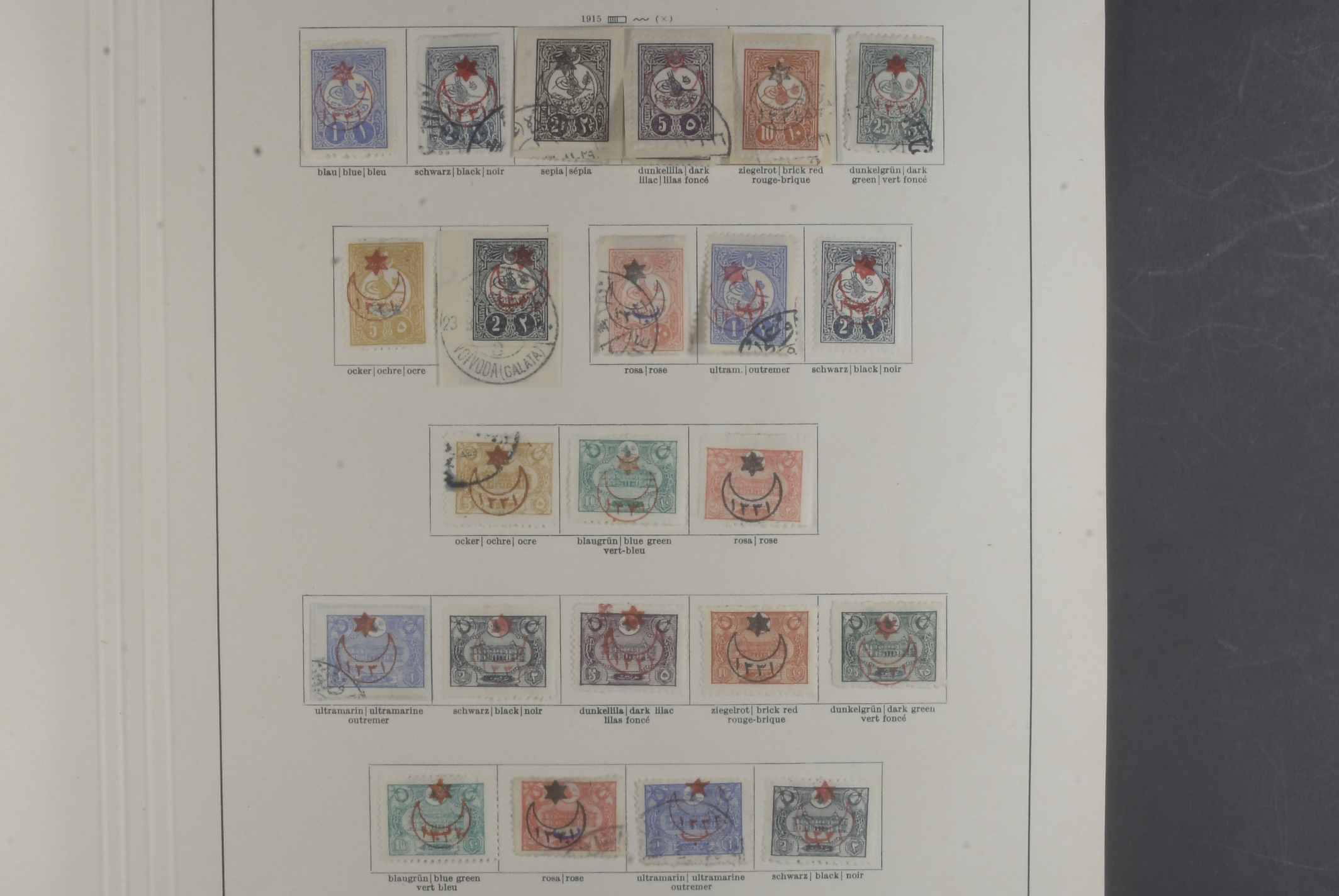 Turkey. Collection ★/⊙ 1863–1955 on leaves. Almost complete in main numbers used or mint. A few stuck on the leaves, but mostly OK. Many better and seldom seen stamps, e.g. Mi 1–4 used, 10 *, 181–88 I and II *, 181–88 III on piece, 201–02 III *, 195–202 IV *, 229–45 used, 640–52 *, 787–806 and 857–90 */o, 985–99 used, due 1–4 used and much more. Somewhat mixed quality.