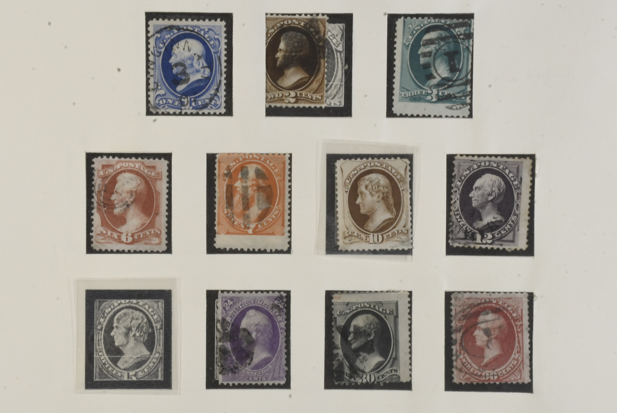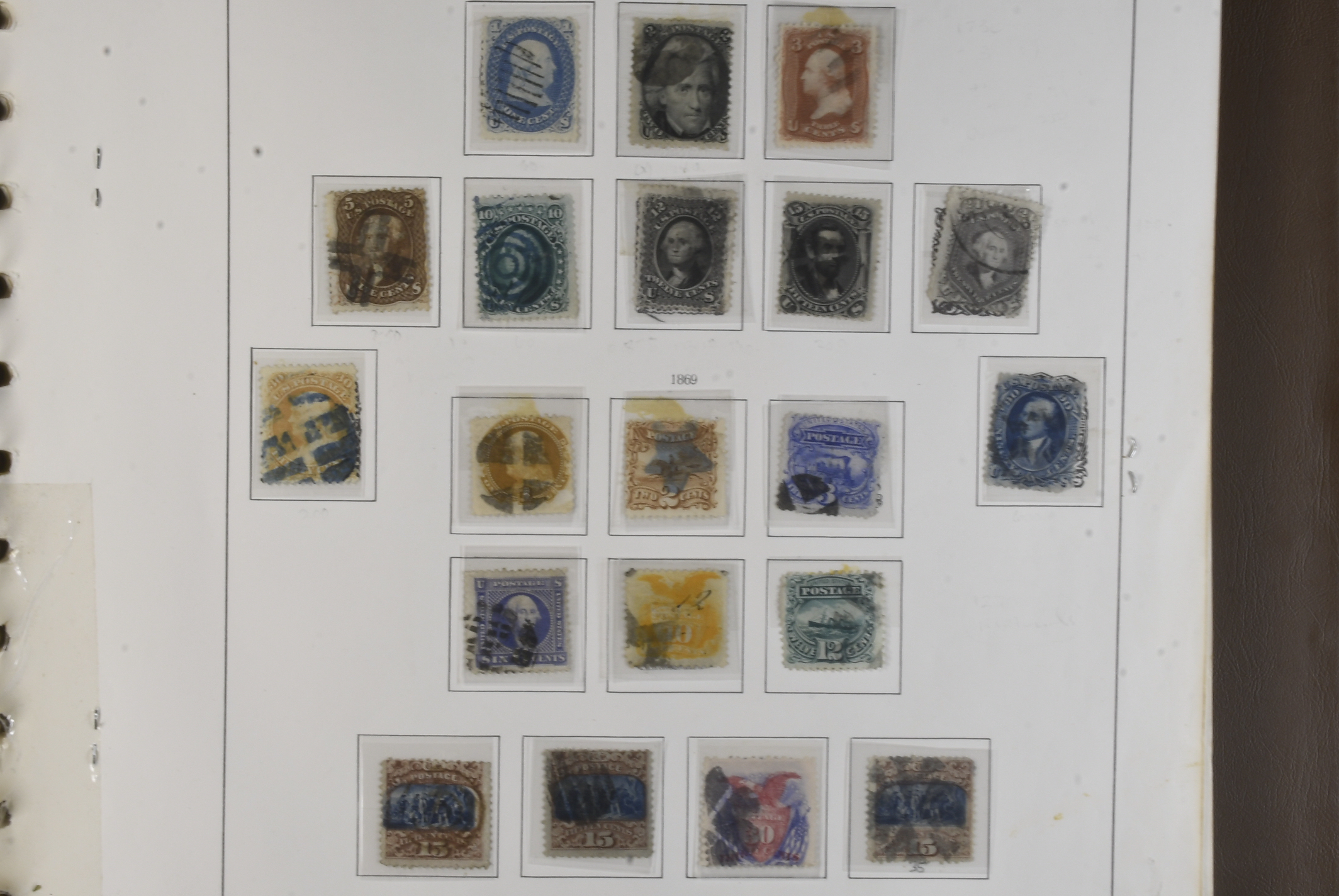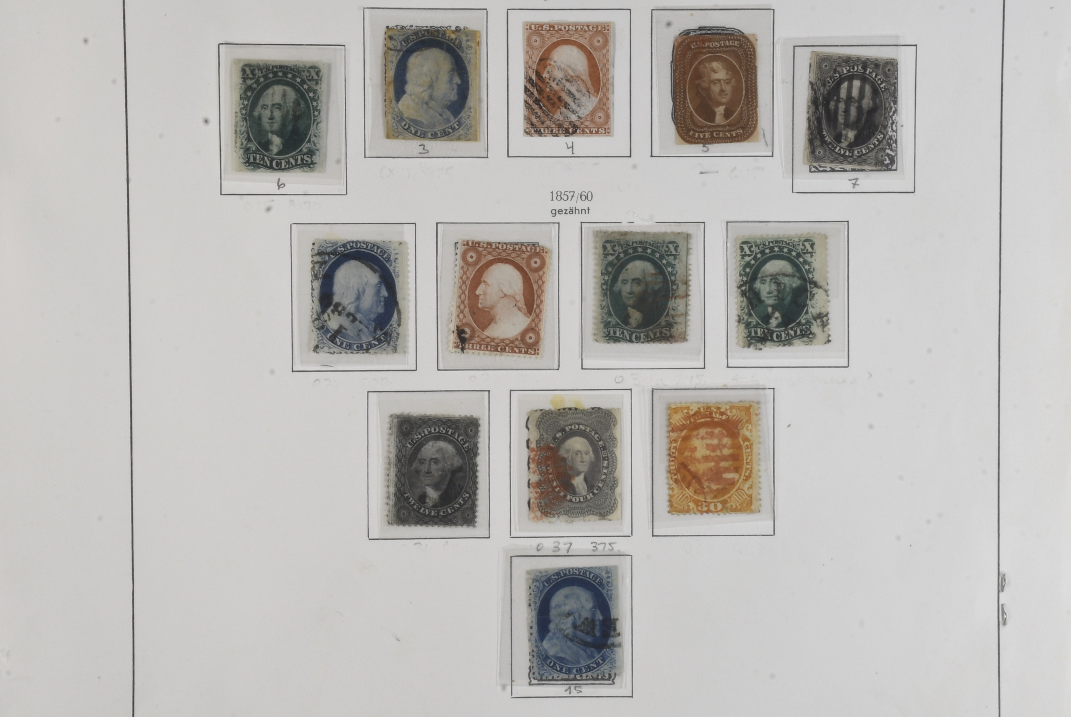 U.S.A. Collection used 1851–1938 in KABE album. Well fille on old worn pages. With many better stamps and sets but the condition is very mixed. Incl. several grilled stamps up to 15 c, 1869 to 30 c, 90 c 1870/71×2 and 1882. Viewing is recommended. Please see a selection of scans at www.philea.se. Mixed quality. (c400)