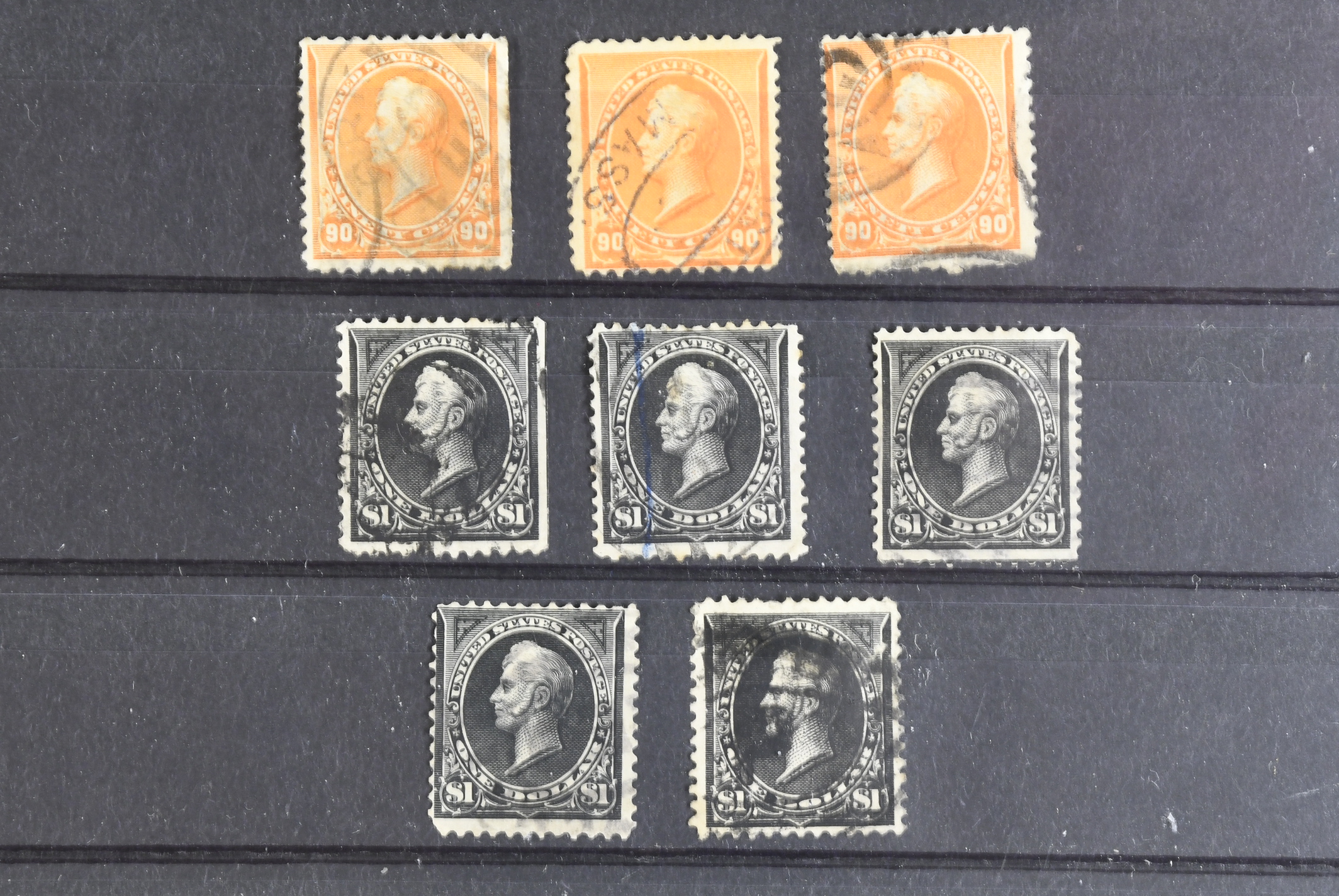 U.S.A. Used. 3x90 ct orange perry + 5x$ 1 black perry, very high cat.