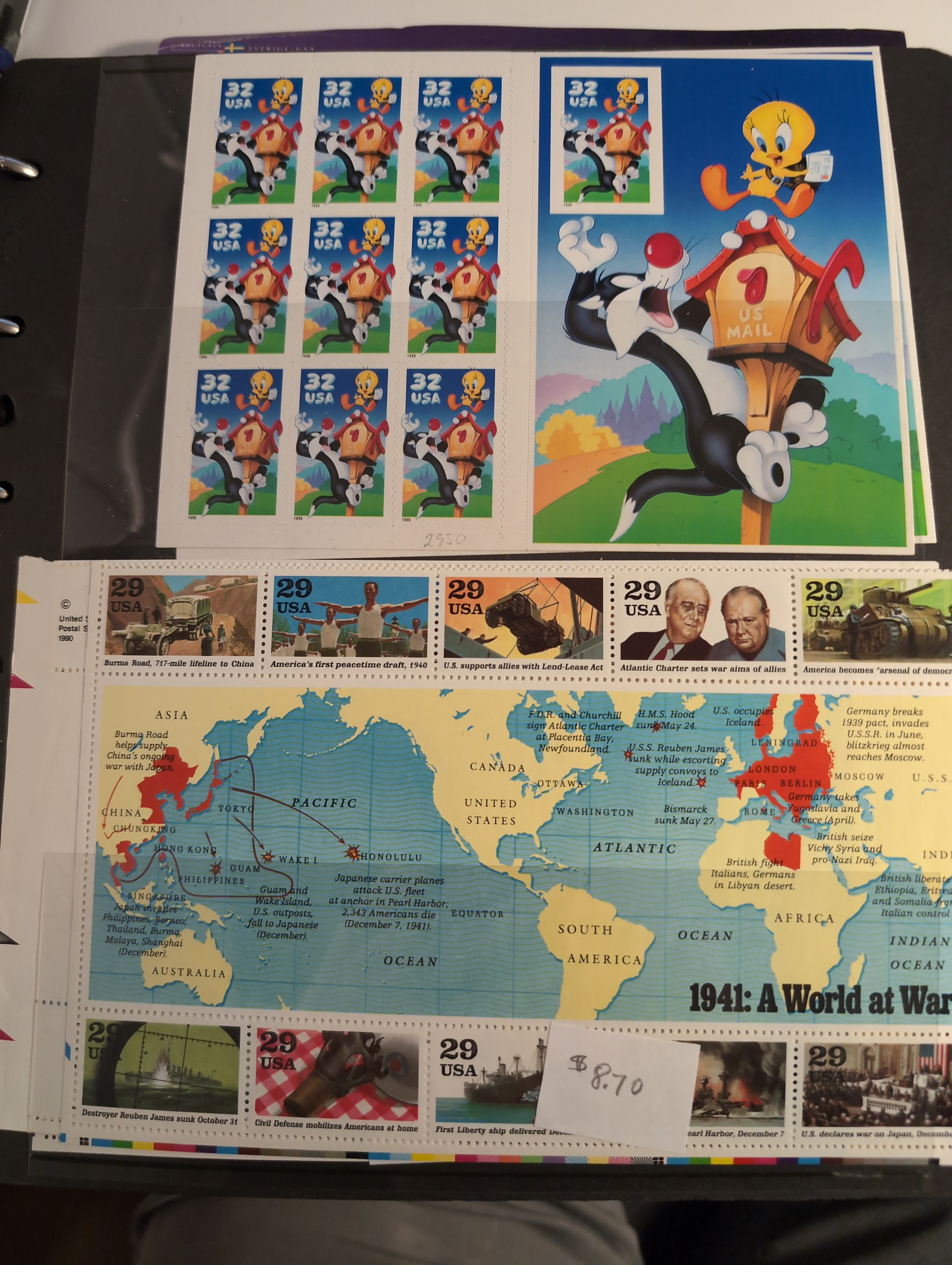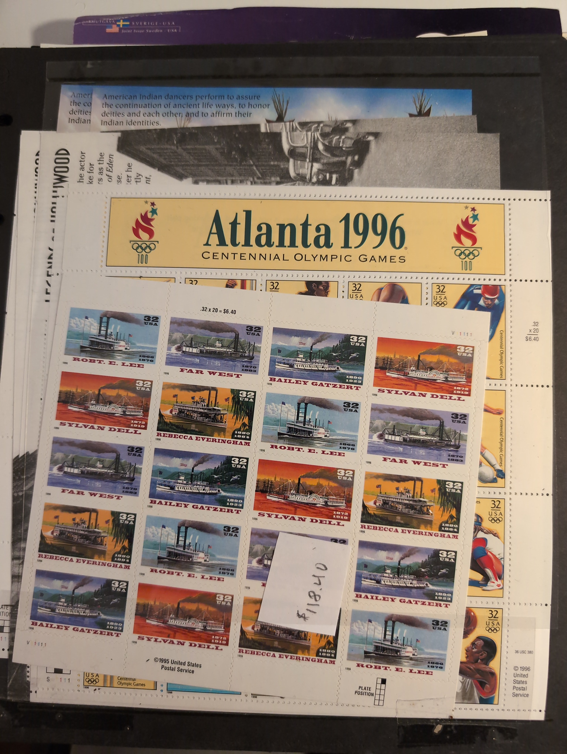 U.S.A. Accumulation ★★ 1960s–1990 in visir album. Face value lot $1120. with plenty of full sheets and souvenir sheets. Some used are included as well. Please see a selection of scans at www.philea.se. Mostly fine quality. (1000+)
