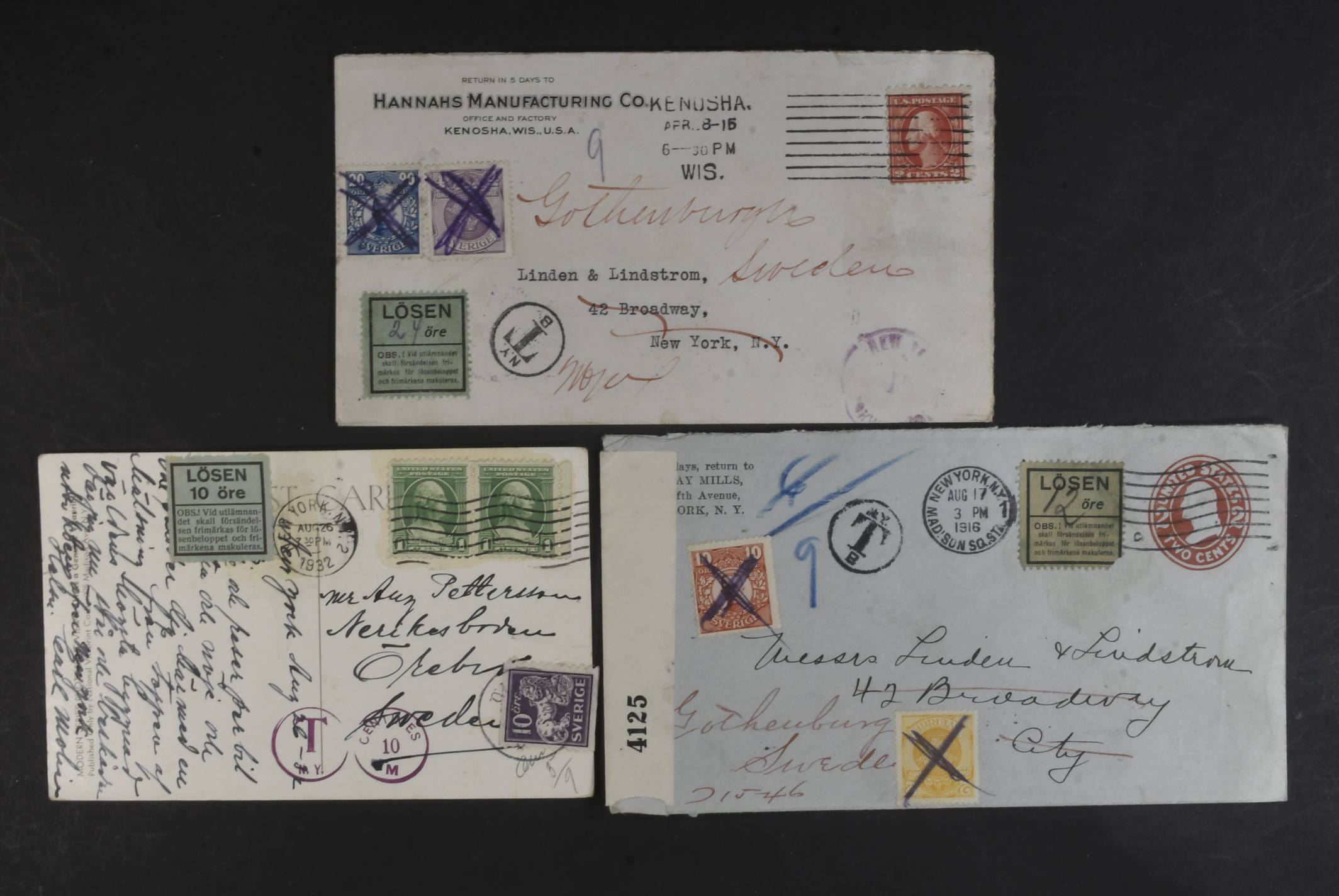U.S.A. Covers 1889–1916. Interesting lot, e.g. sent to Sweden with due. (7)