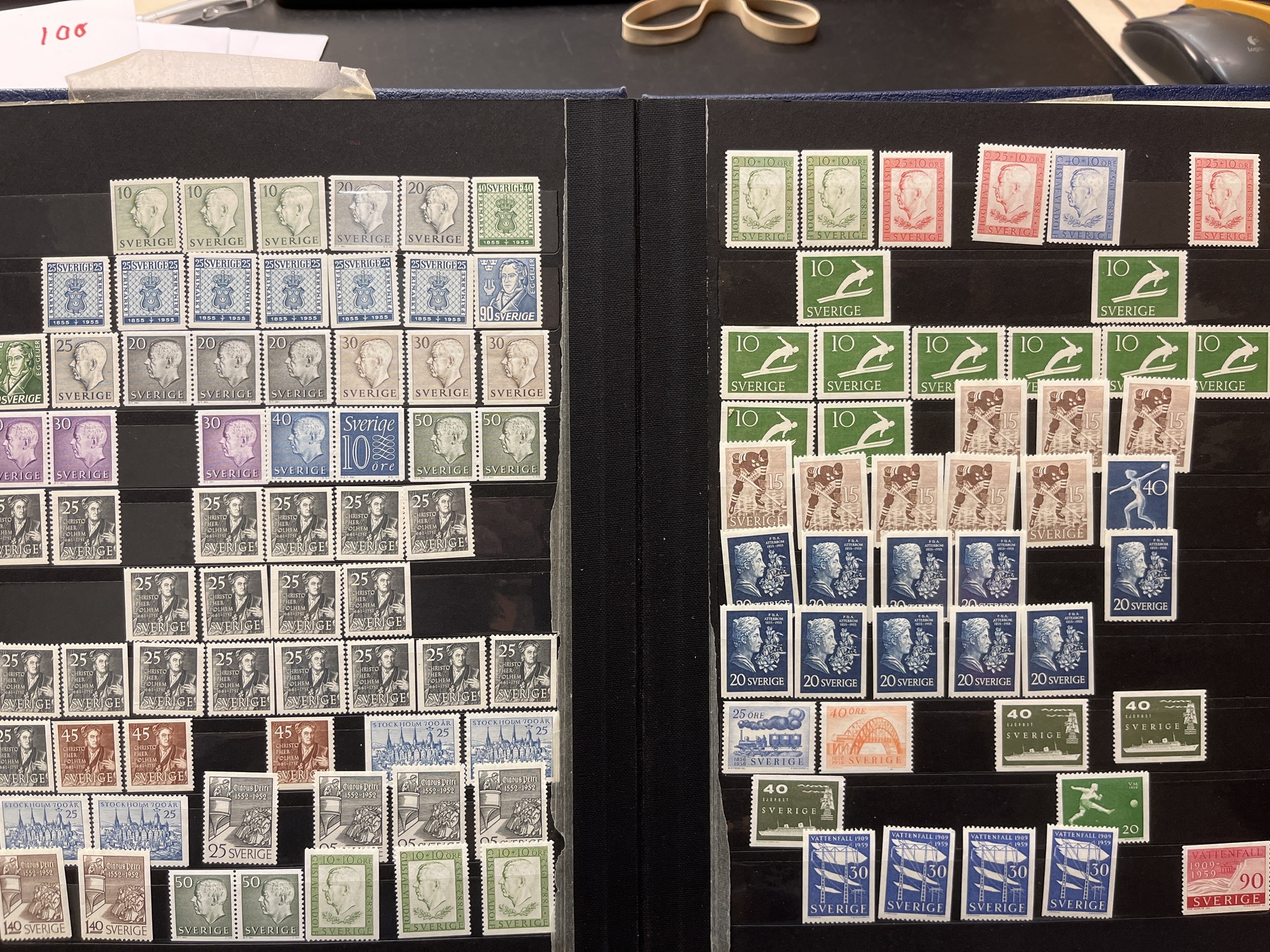 Sweden. Accumulation ★★ in box with twelve albums. Incl. e.g. 40 sets of Sockholmia 55. Approx. 15 kg.