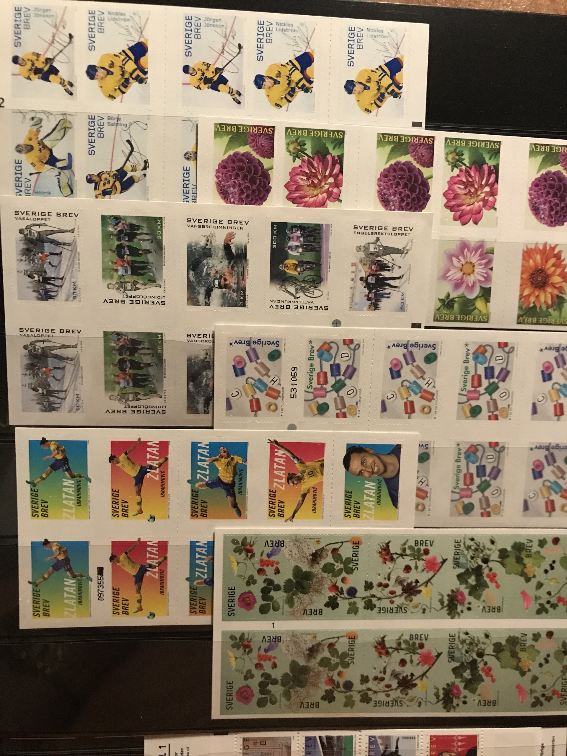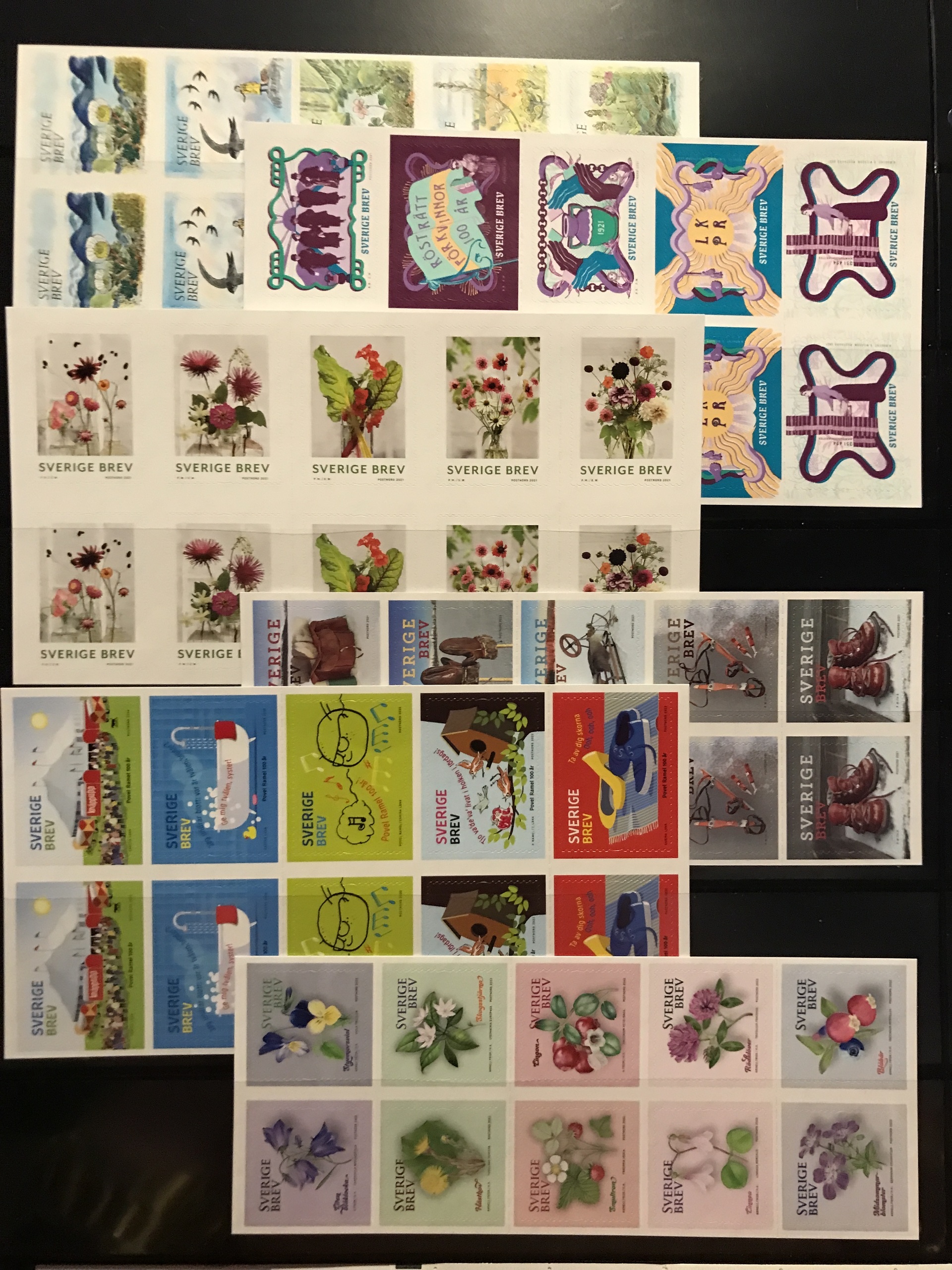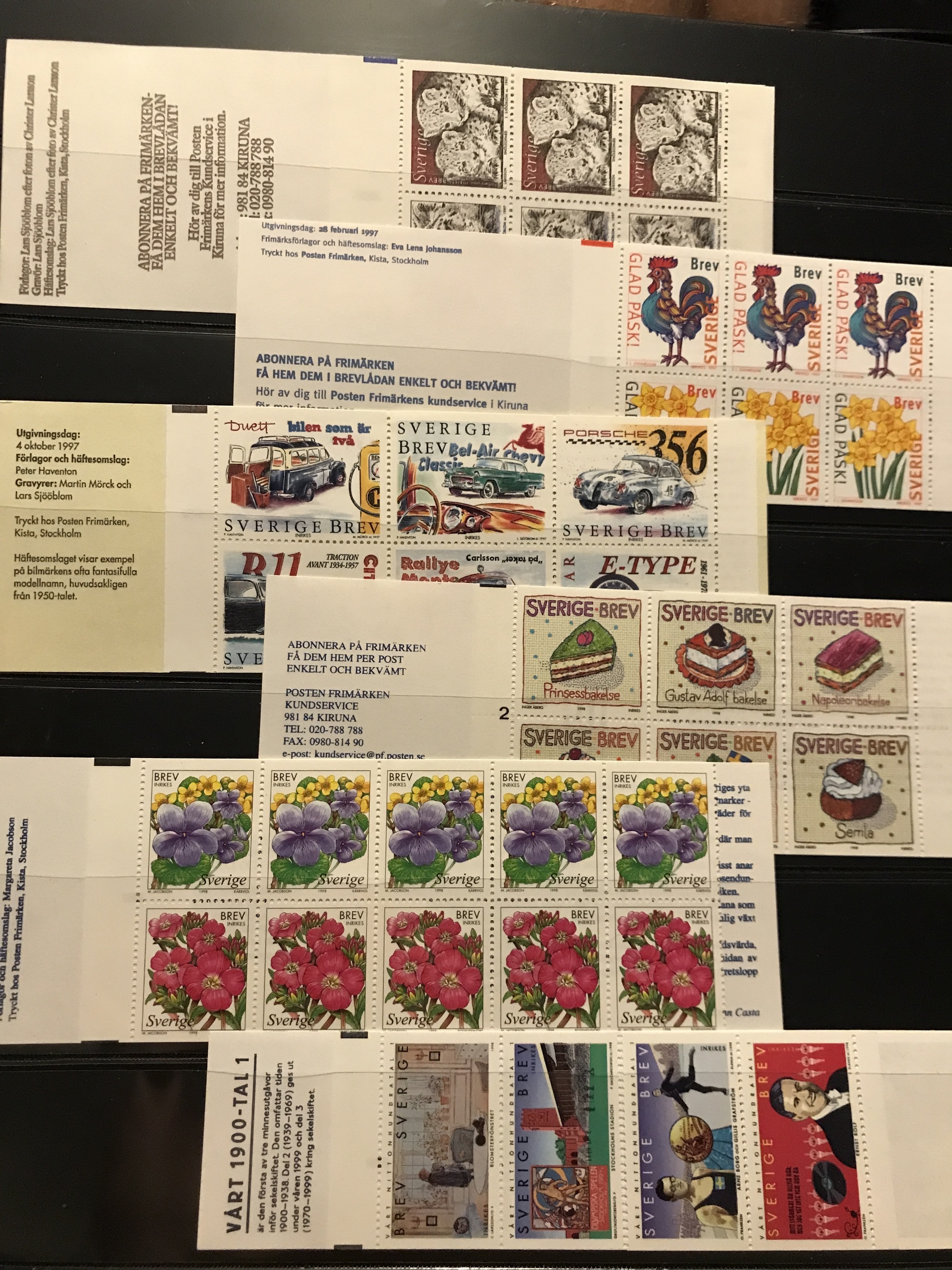 Sweden. Face value. Collection with 104 different booklets 'Sverige BREV' 1997–2022. In total 975 stamps = face value 21450. Please see a selection of scans at www.philea.se.