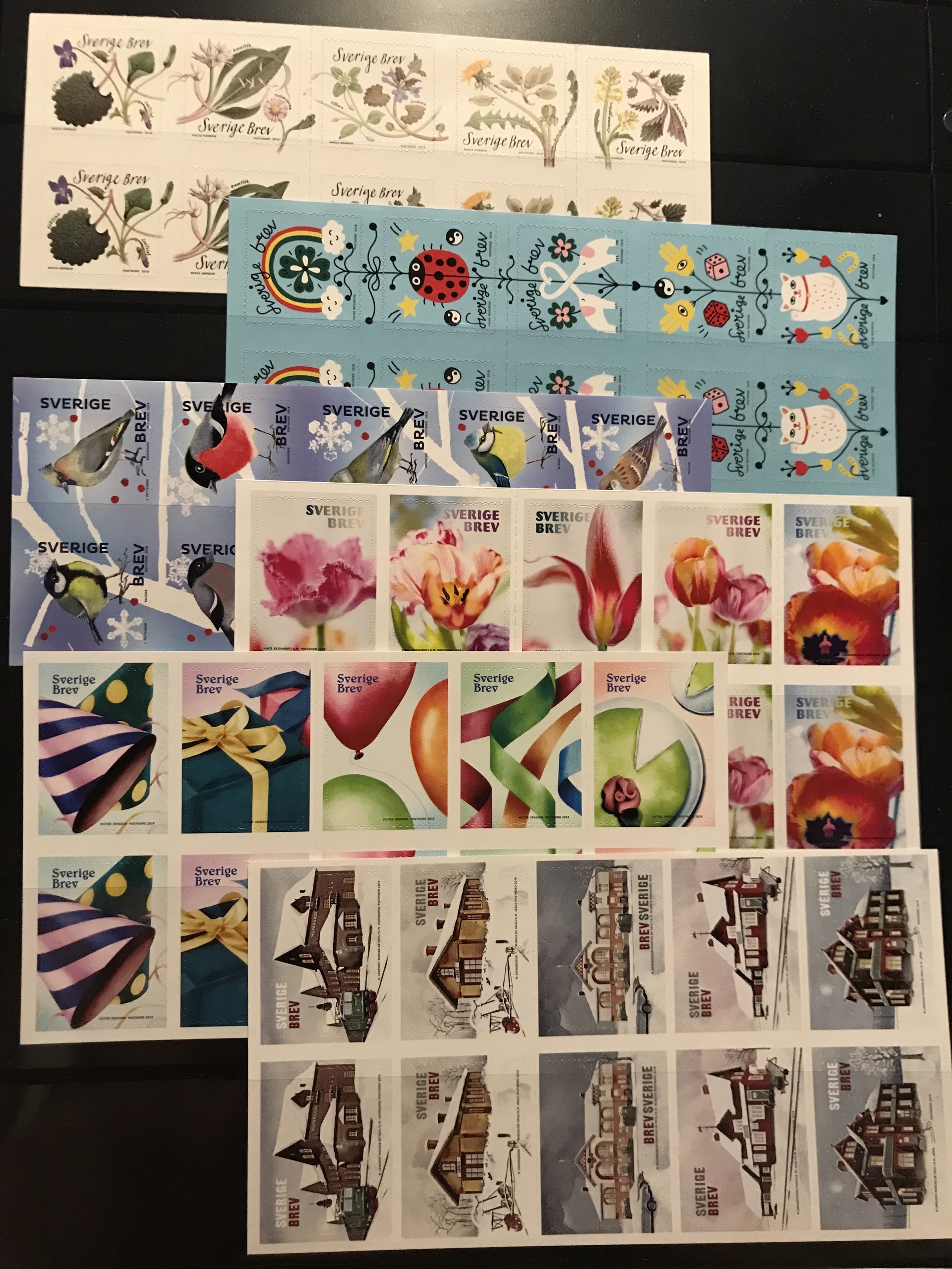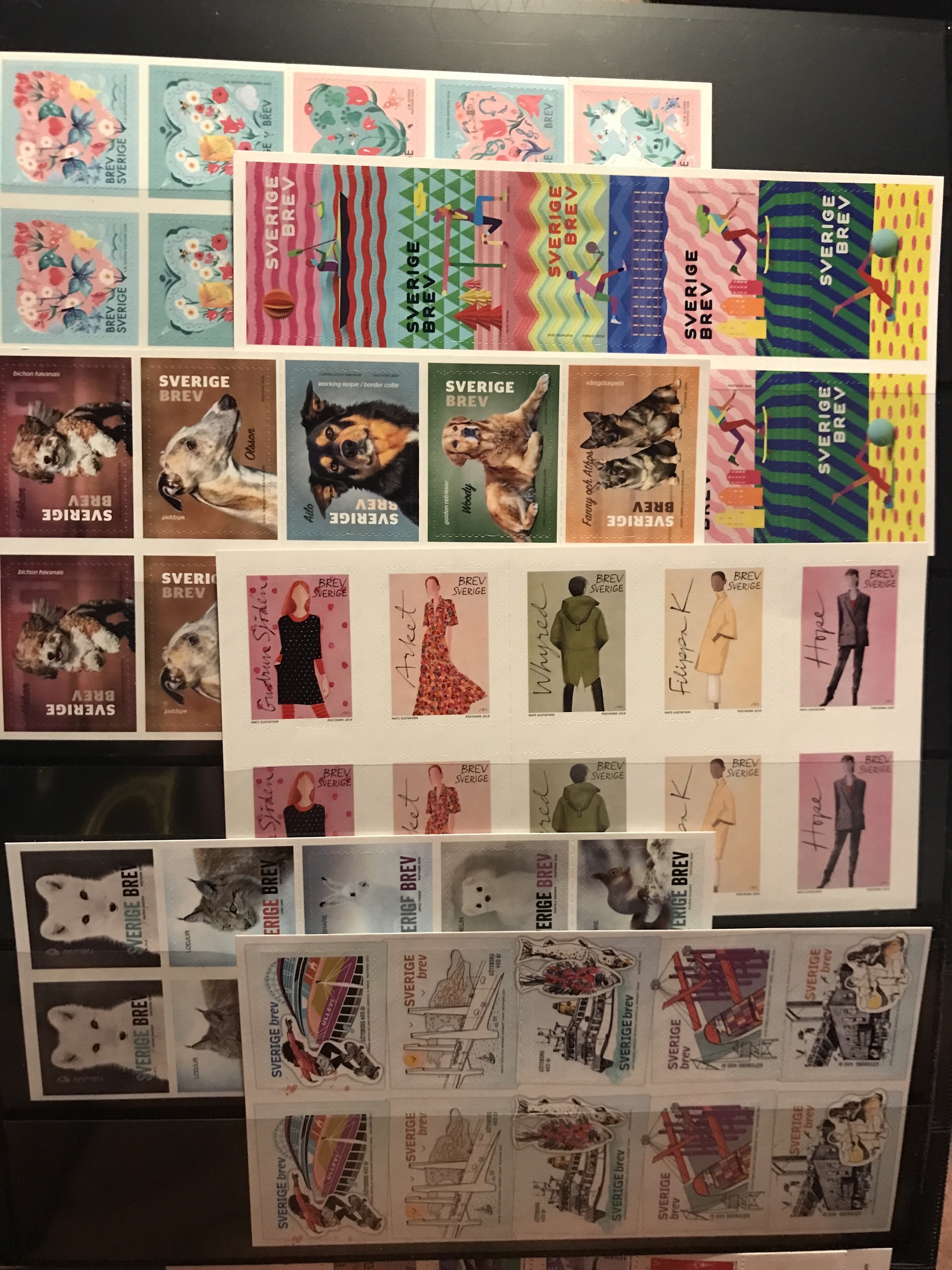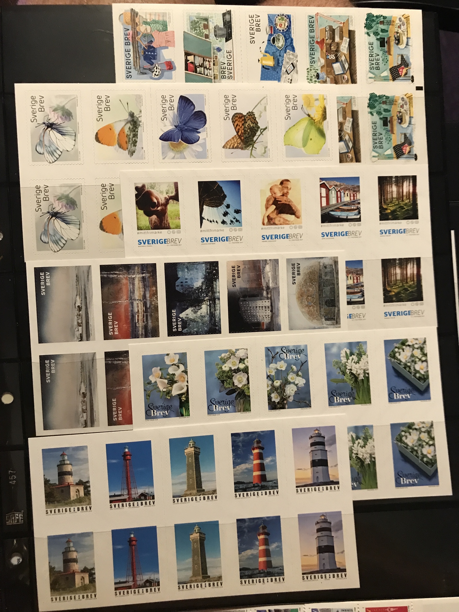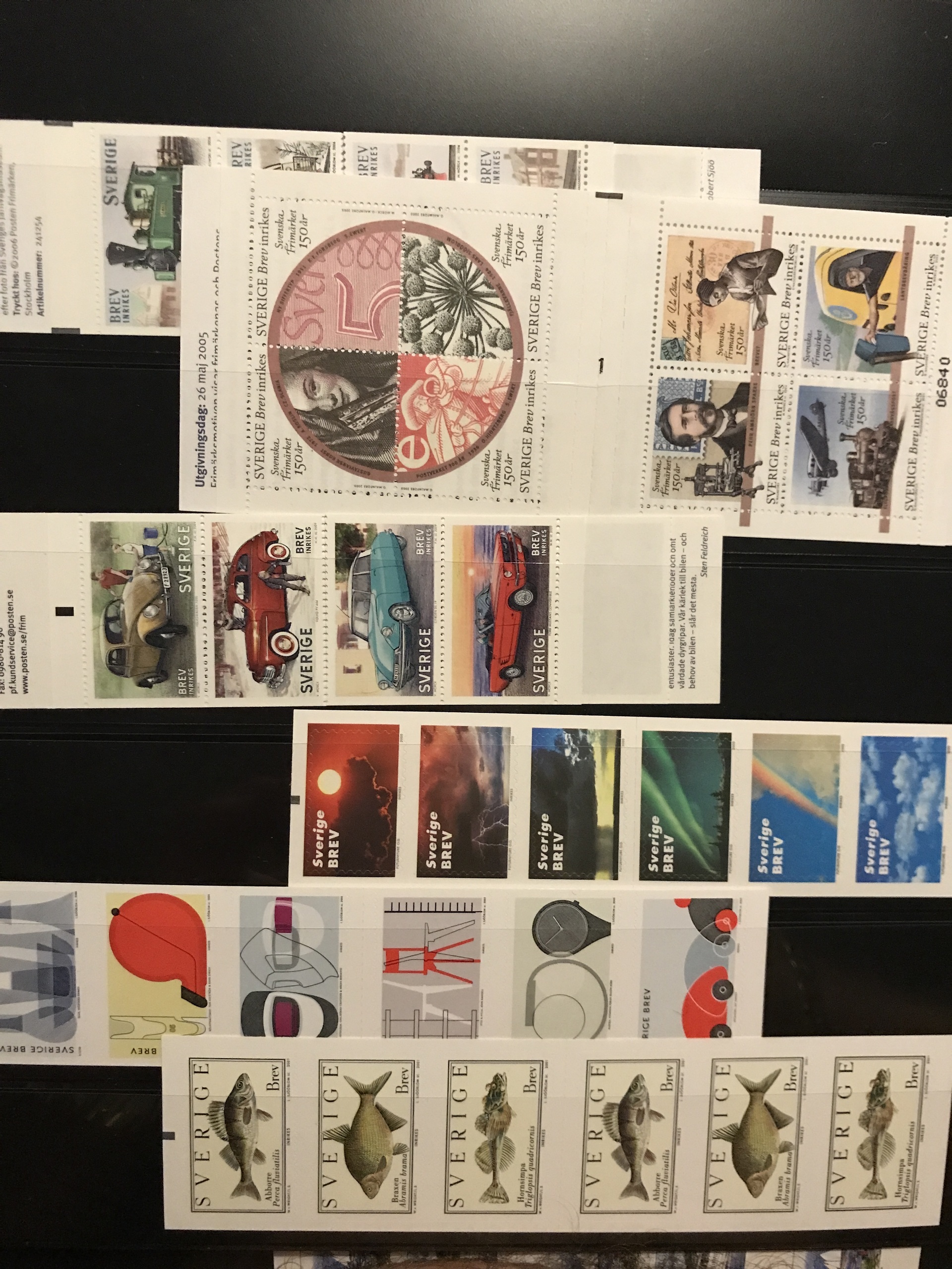Sweden. Face value. Collection with 104 different booklets 'Sverige BREV' 1997–2022. In total 975 stamps = face value 21450. Please see a selection of scans at www.philea.se.