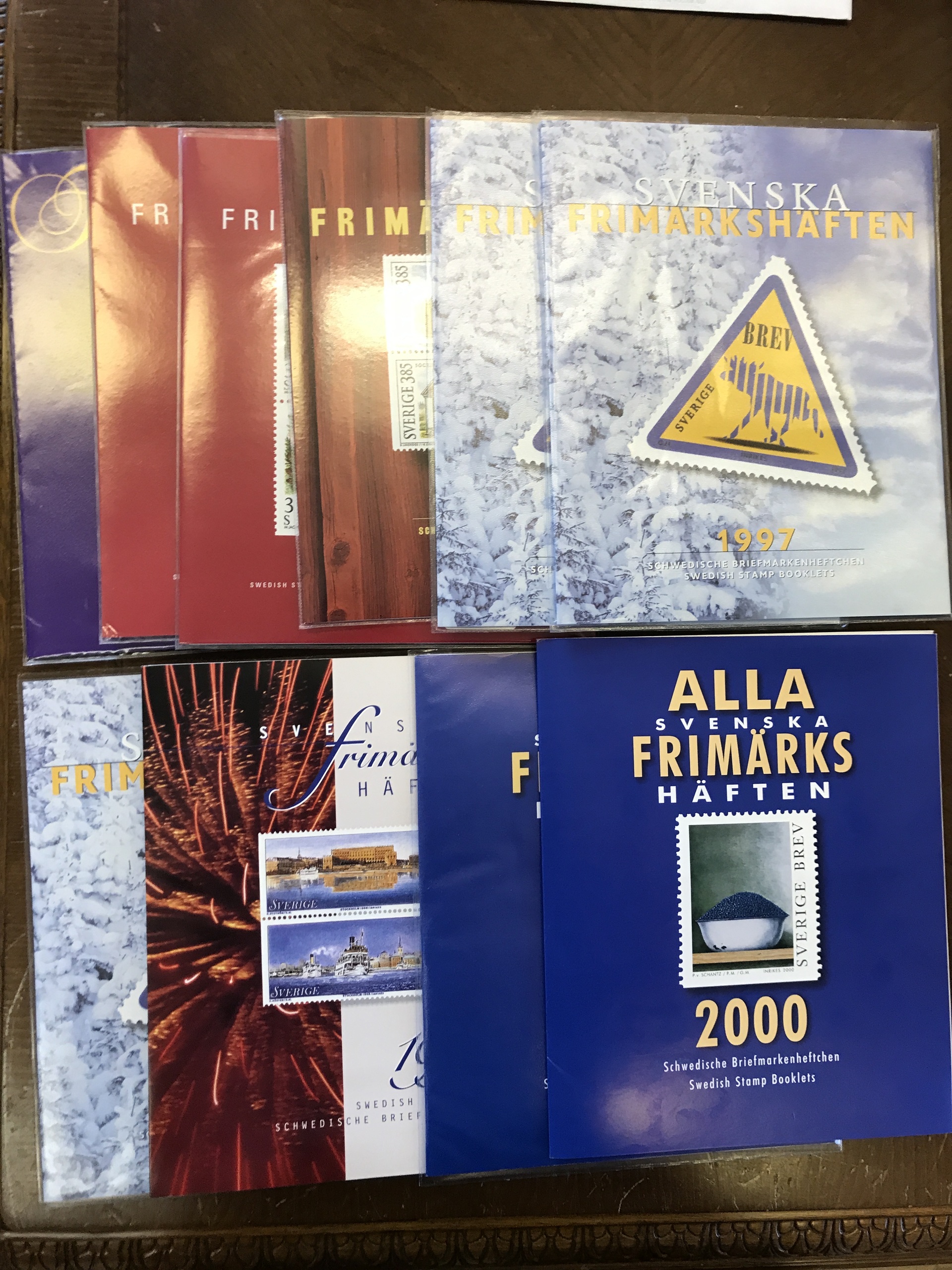 Sweden. Face value. Ten booklet year sets 1994–2000. Face value > 2700 + 245 'Sverige BREV' and 60 Christmas stamps.