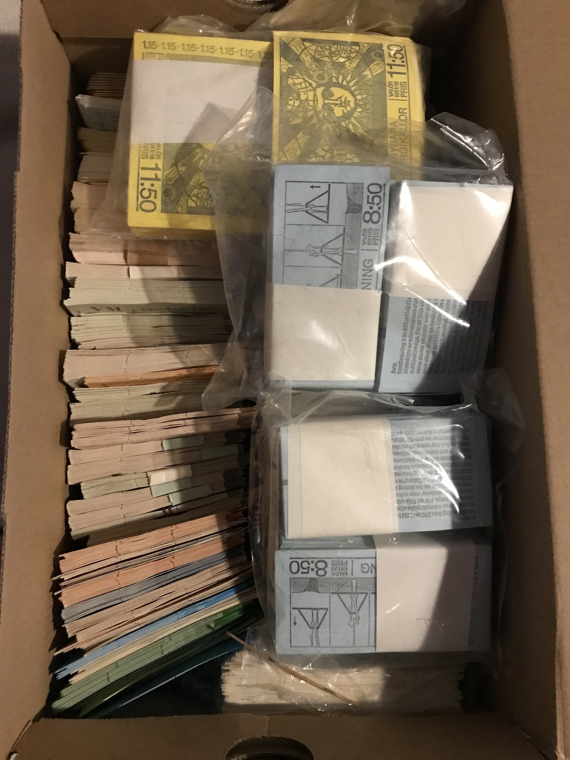 Sweden. Face value. Box with booklets 1940's-1981 incl. some better and e.g. 200 sealed "Havsforskning". Face value approx. 7600.