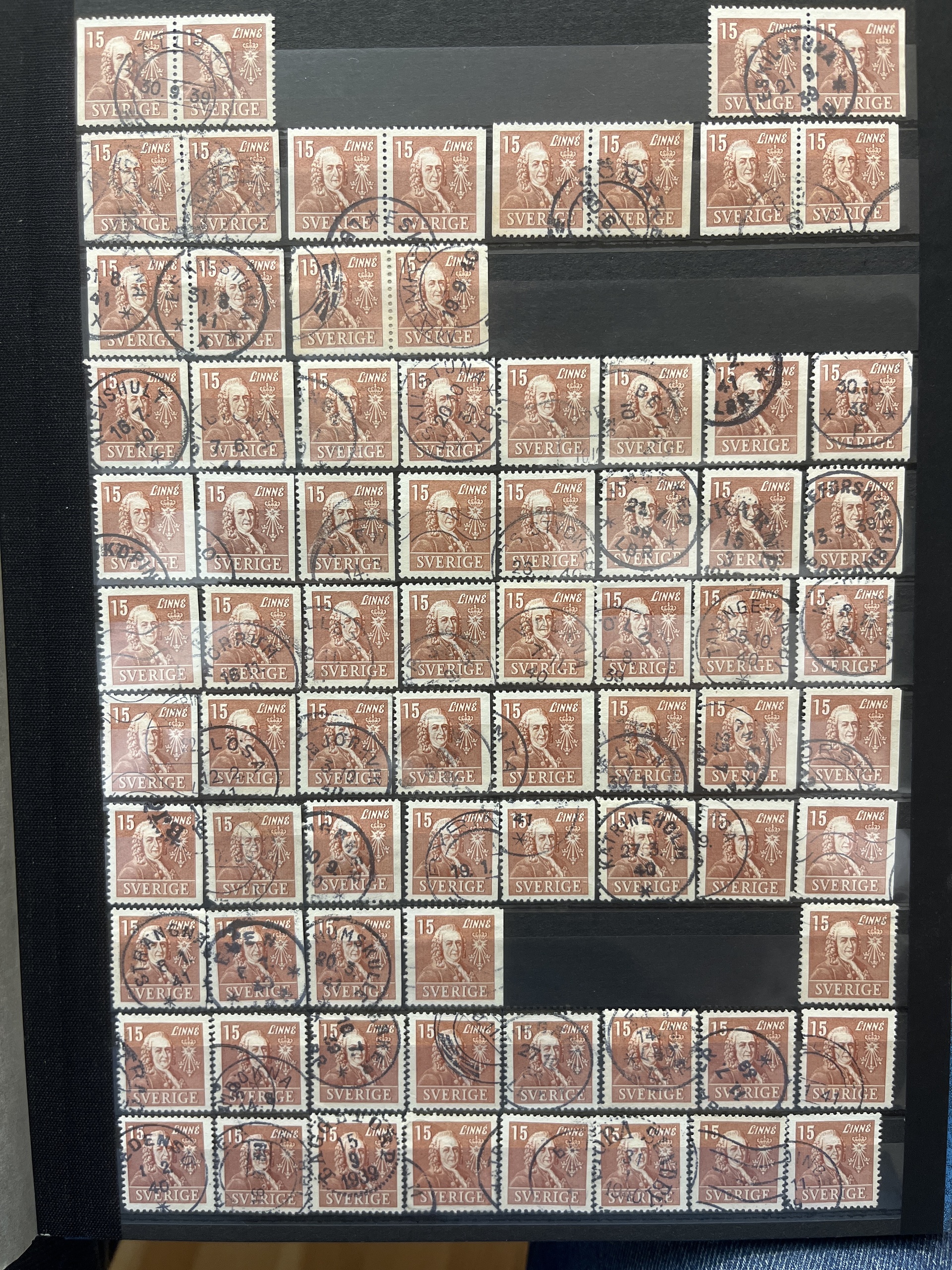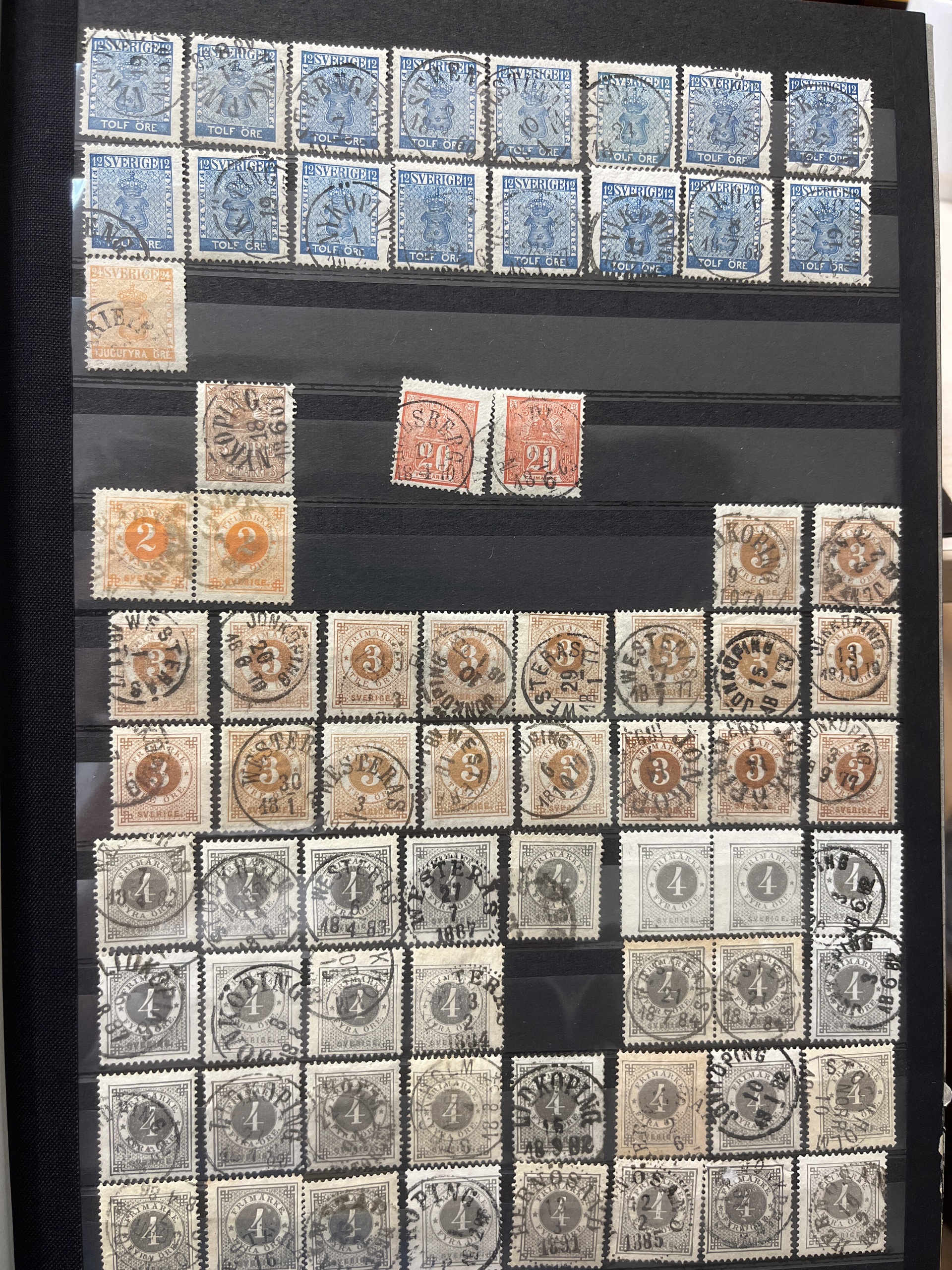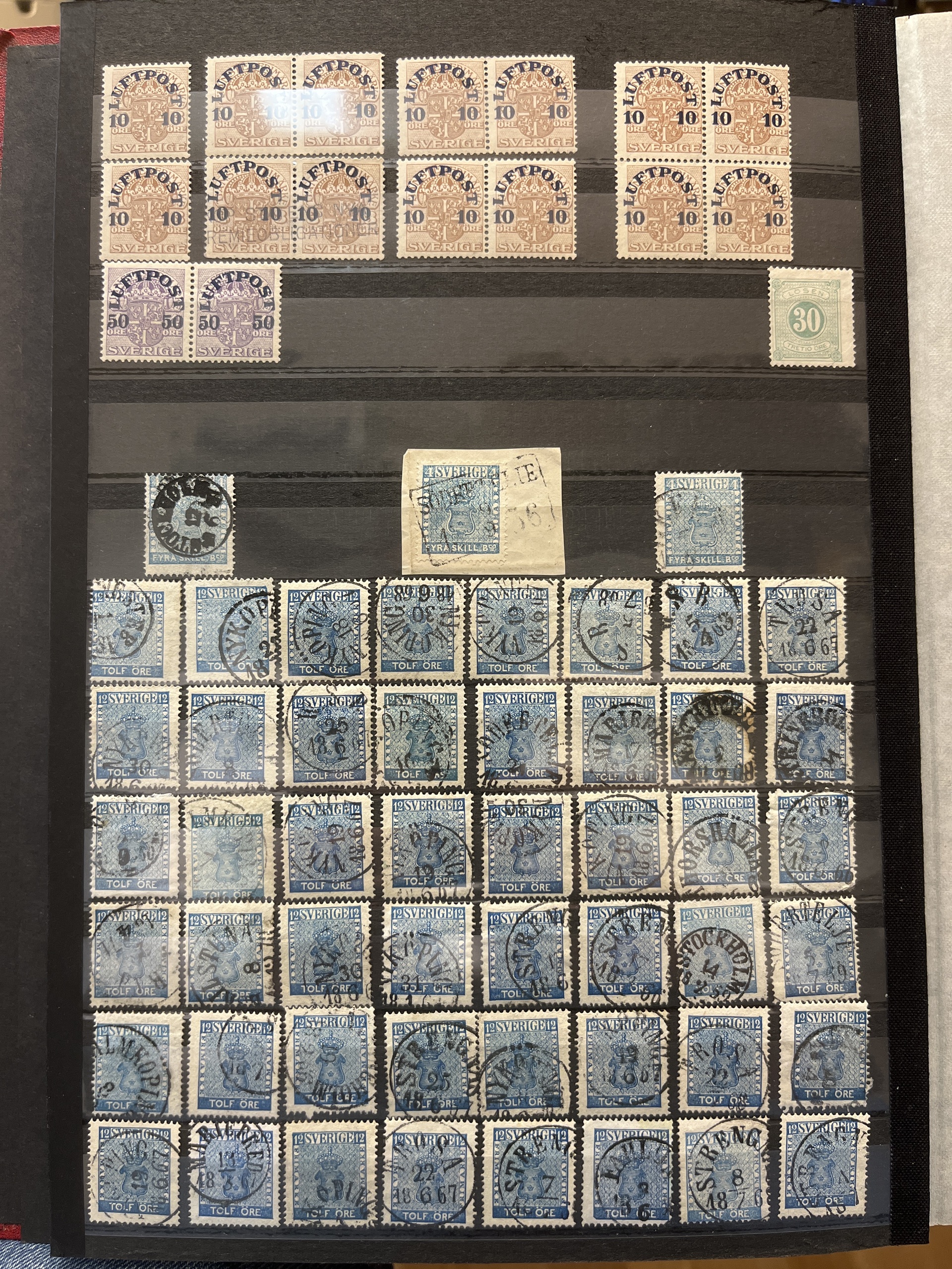 Sweden. Accumulation used 1855–1949 in removal box with 14. with thousands of stamps, e.g. BC/CB-pairs. Please see a selection of scans at www.philea.se. Approx. 17 kg.