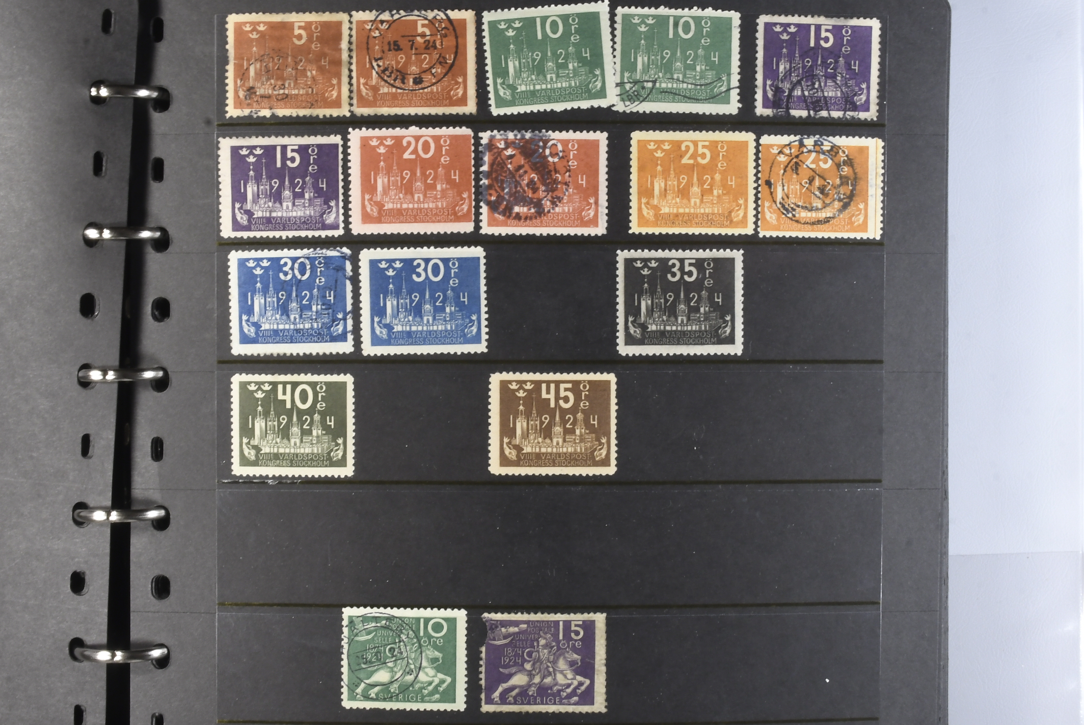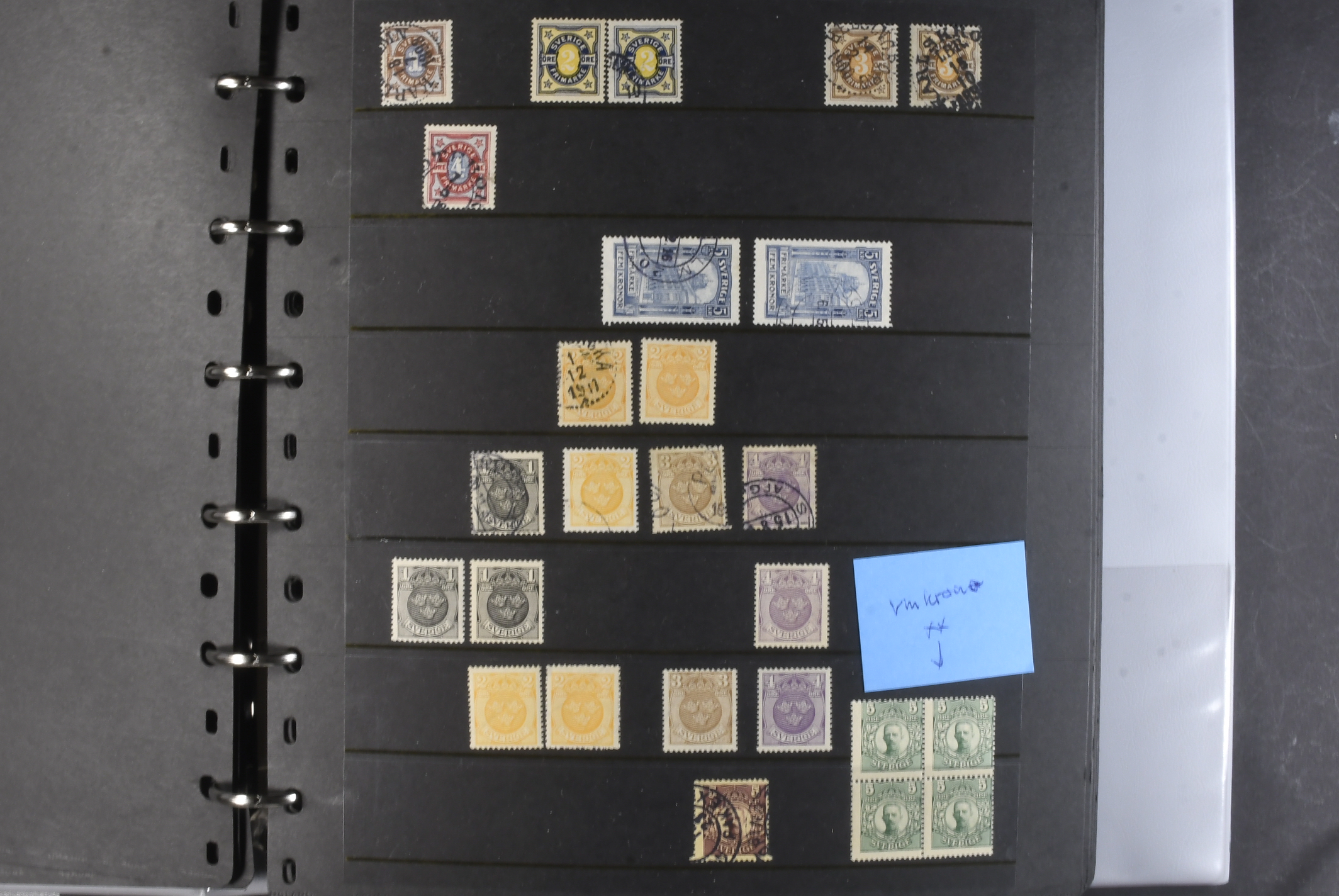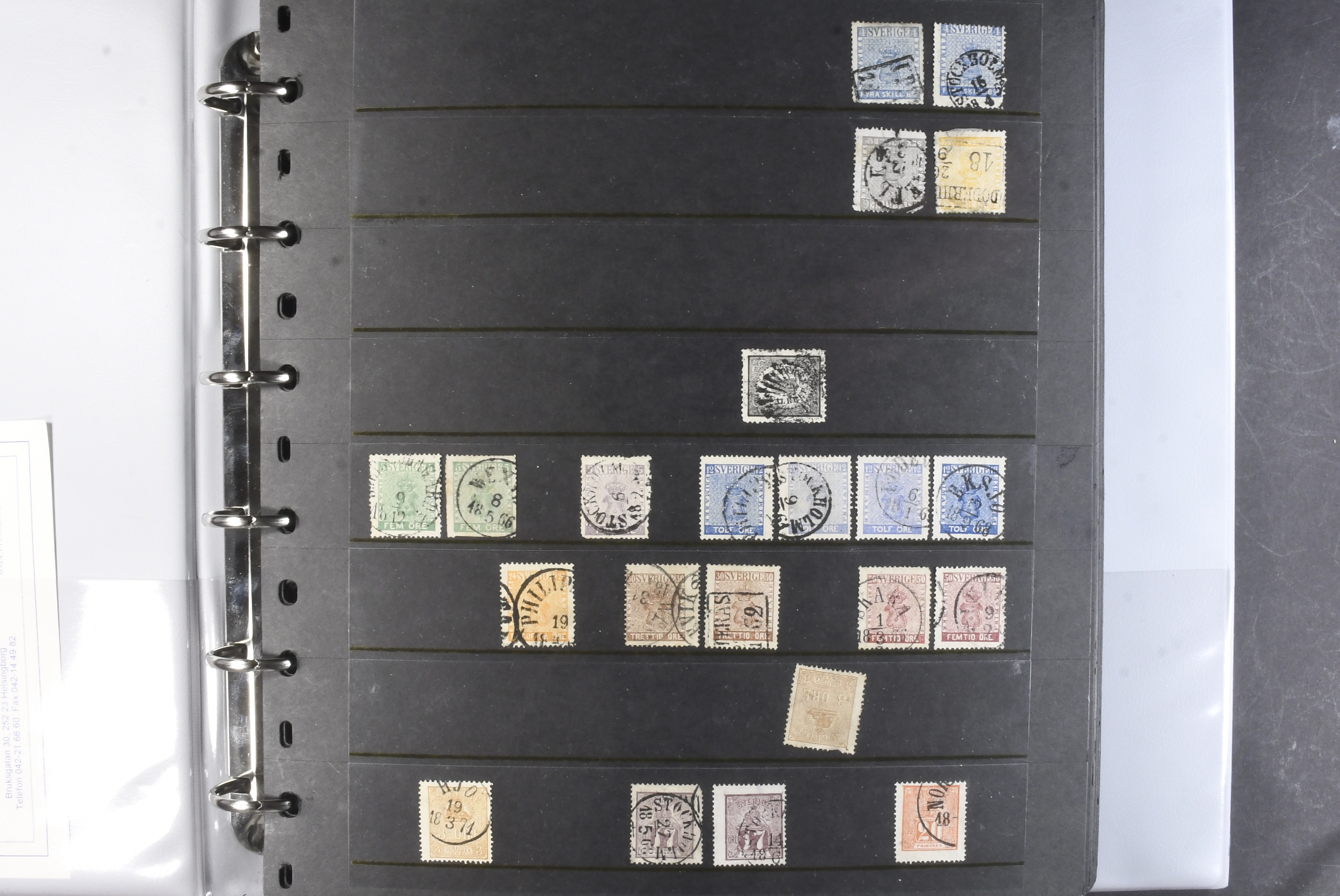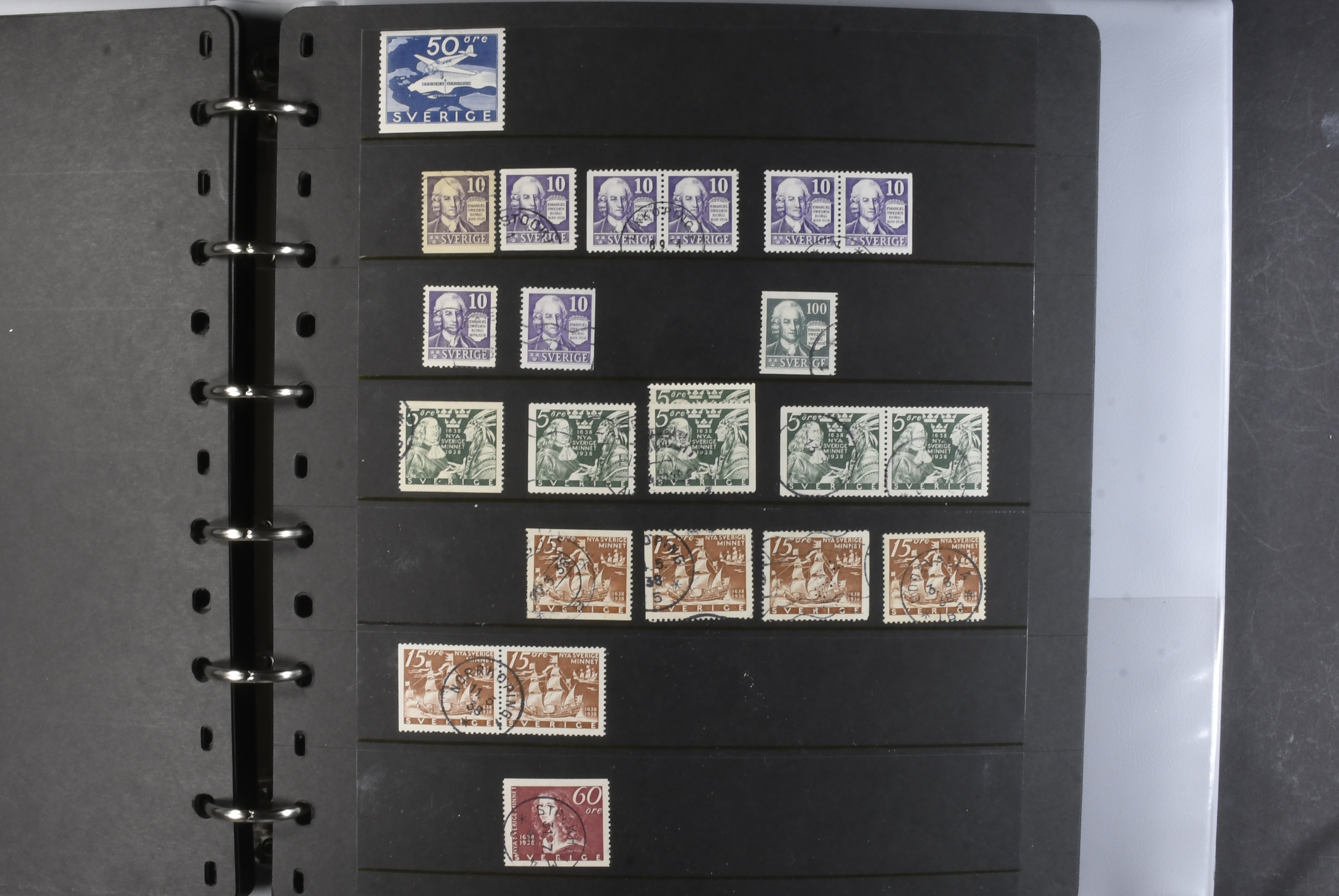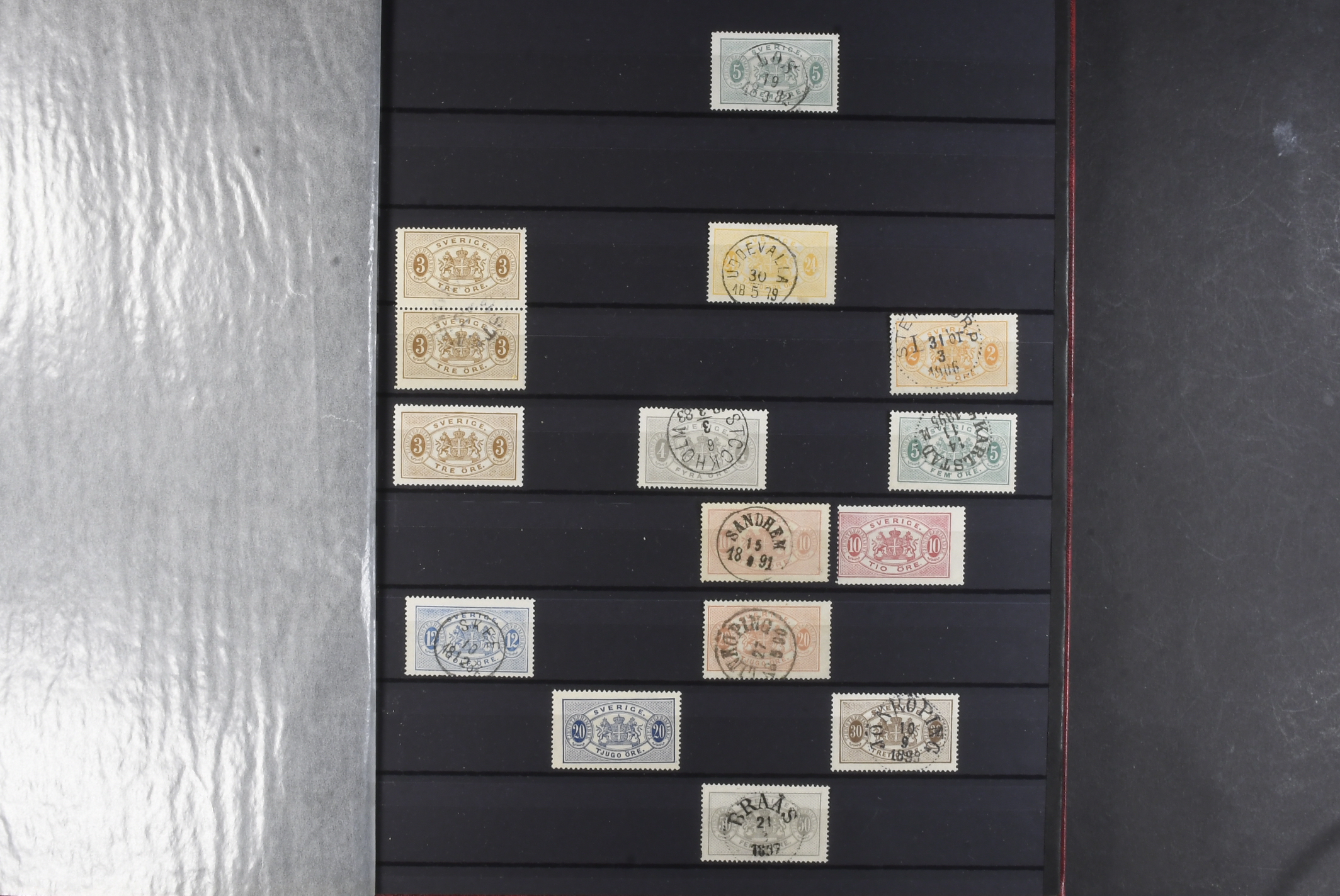 Sweden. Collection used 1855–1980 in box. Four visir albums and one stockbook with stamps. Starts with 4 sk bco and Coat-of-Arms type II. Includes a number of better stamps and cancellations. Looks sparsely filled. Please see a selection of scans at www.philea.se. Mixed quality. Approx. 8 kg. (>1000)