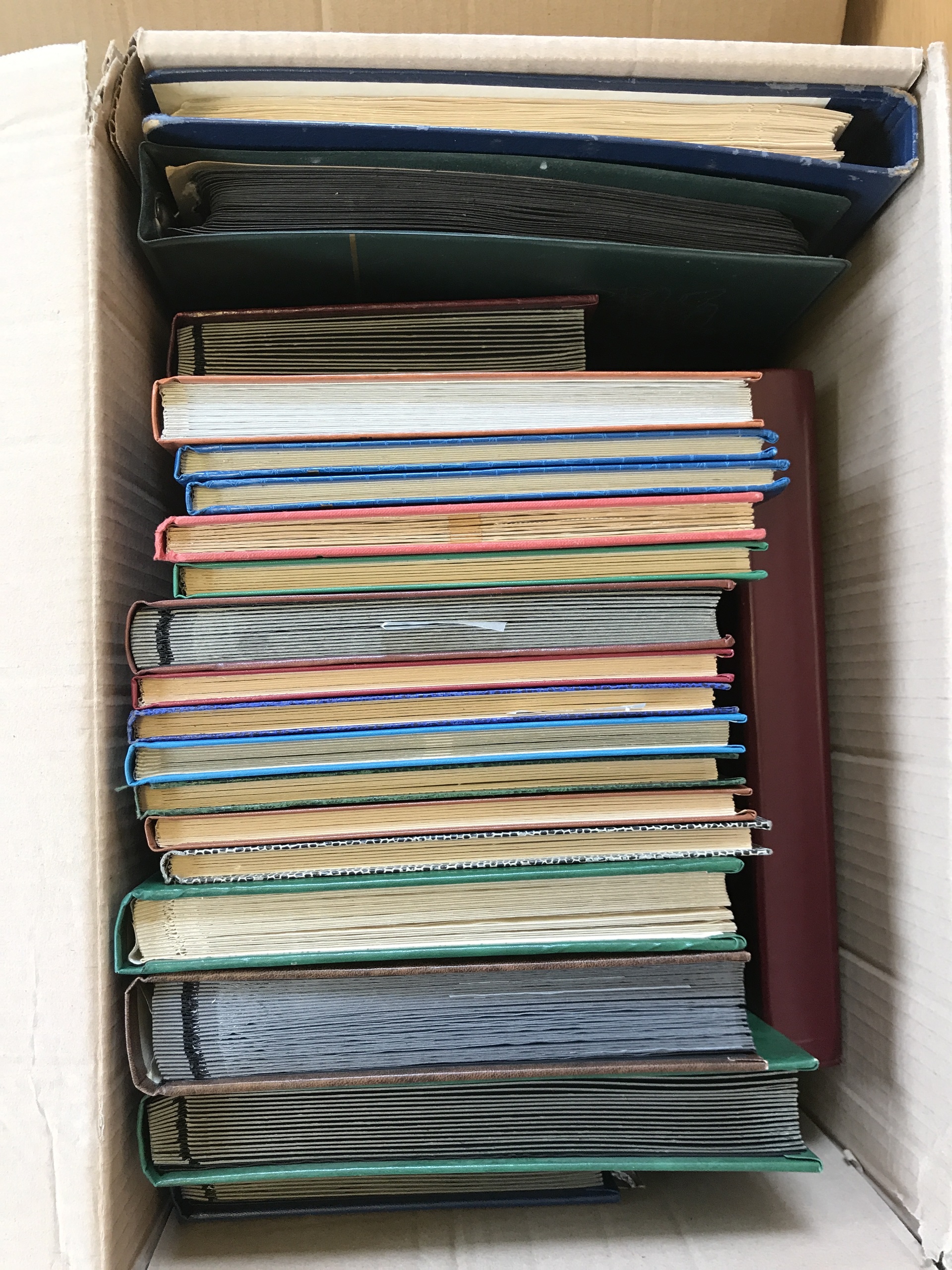 Sweden. Mostly used. Box with 1000's of stamps in 18 stockbooks and two binders. E.g. album with booklets and some cancellations+ some other countries. Approx. 20 kg.