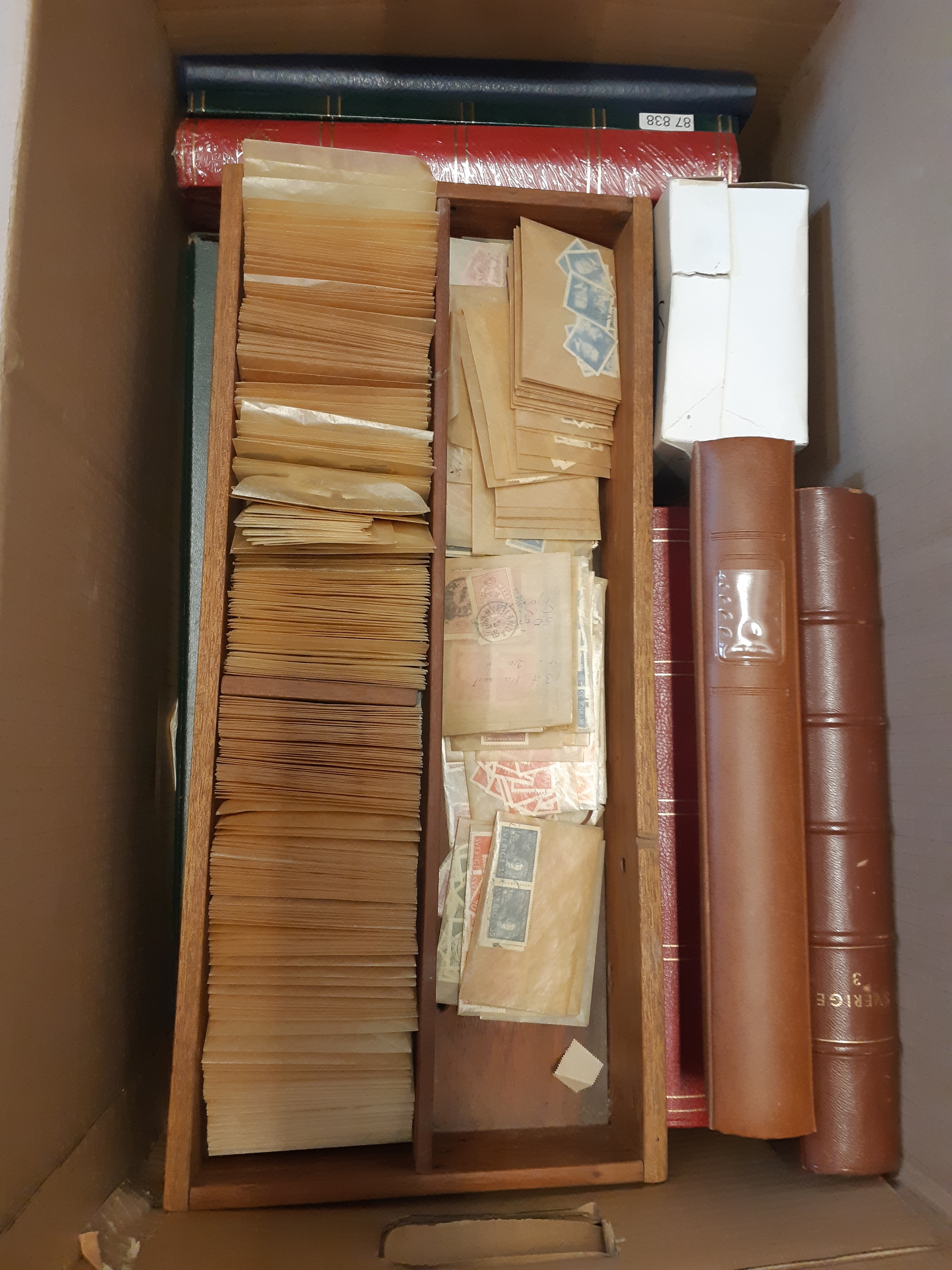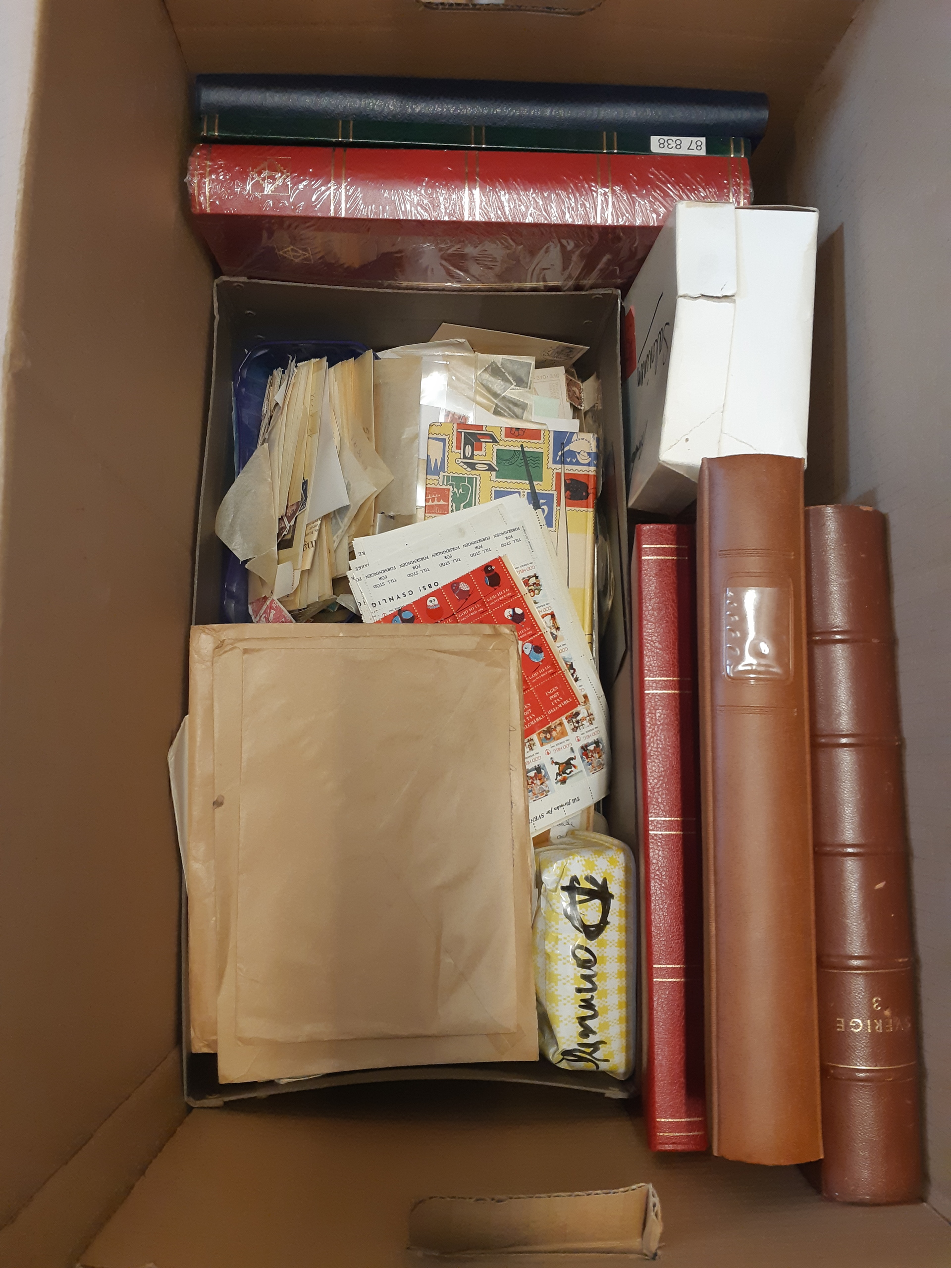 Sweden. Accumulation used in removal box. Duplicates circle type–modern incl. much coil stamps. Also several empty albums incl. visir albums without leaves. Approx. 18 kg. (1000s)