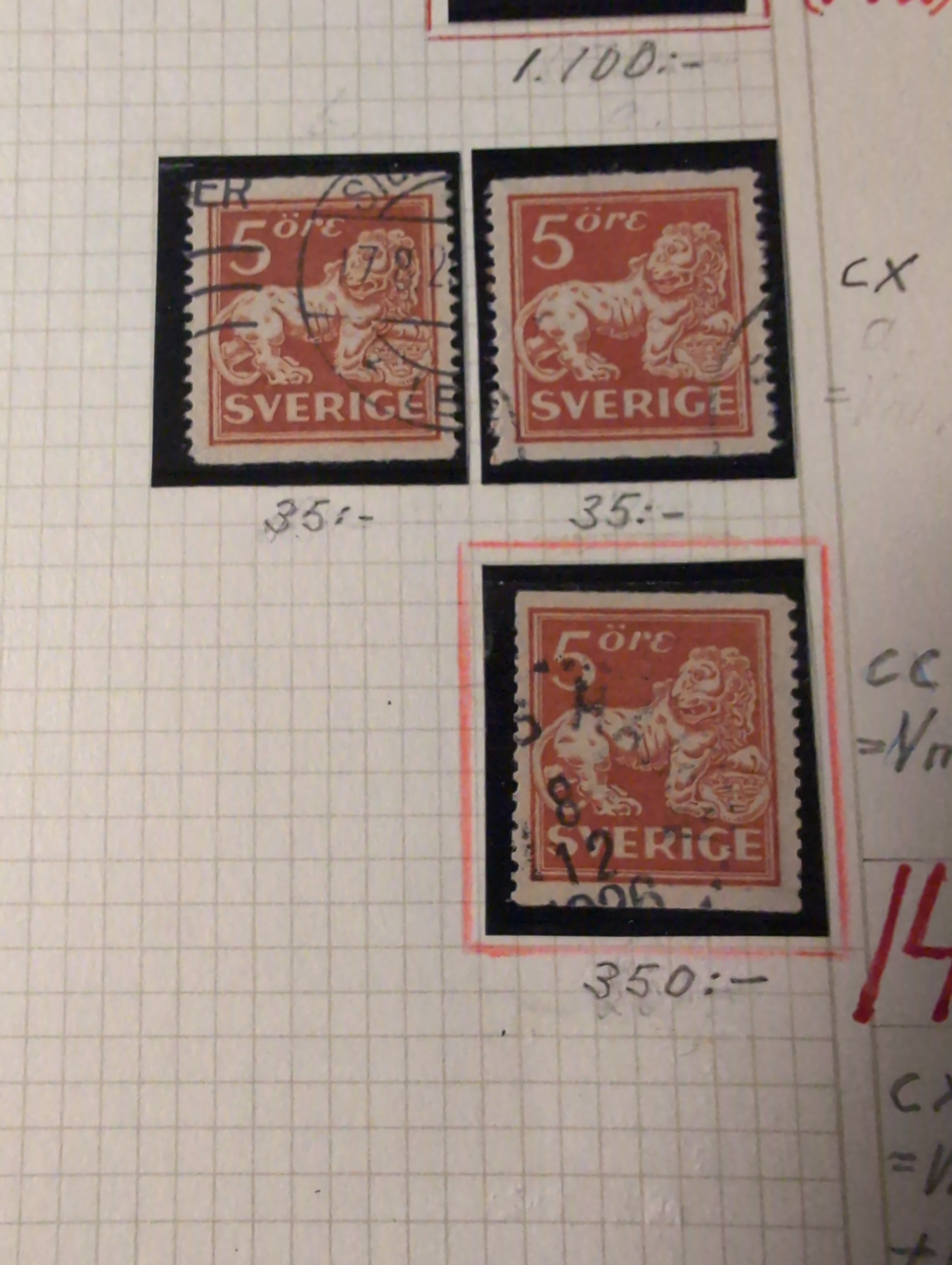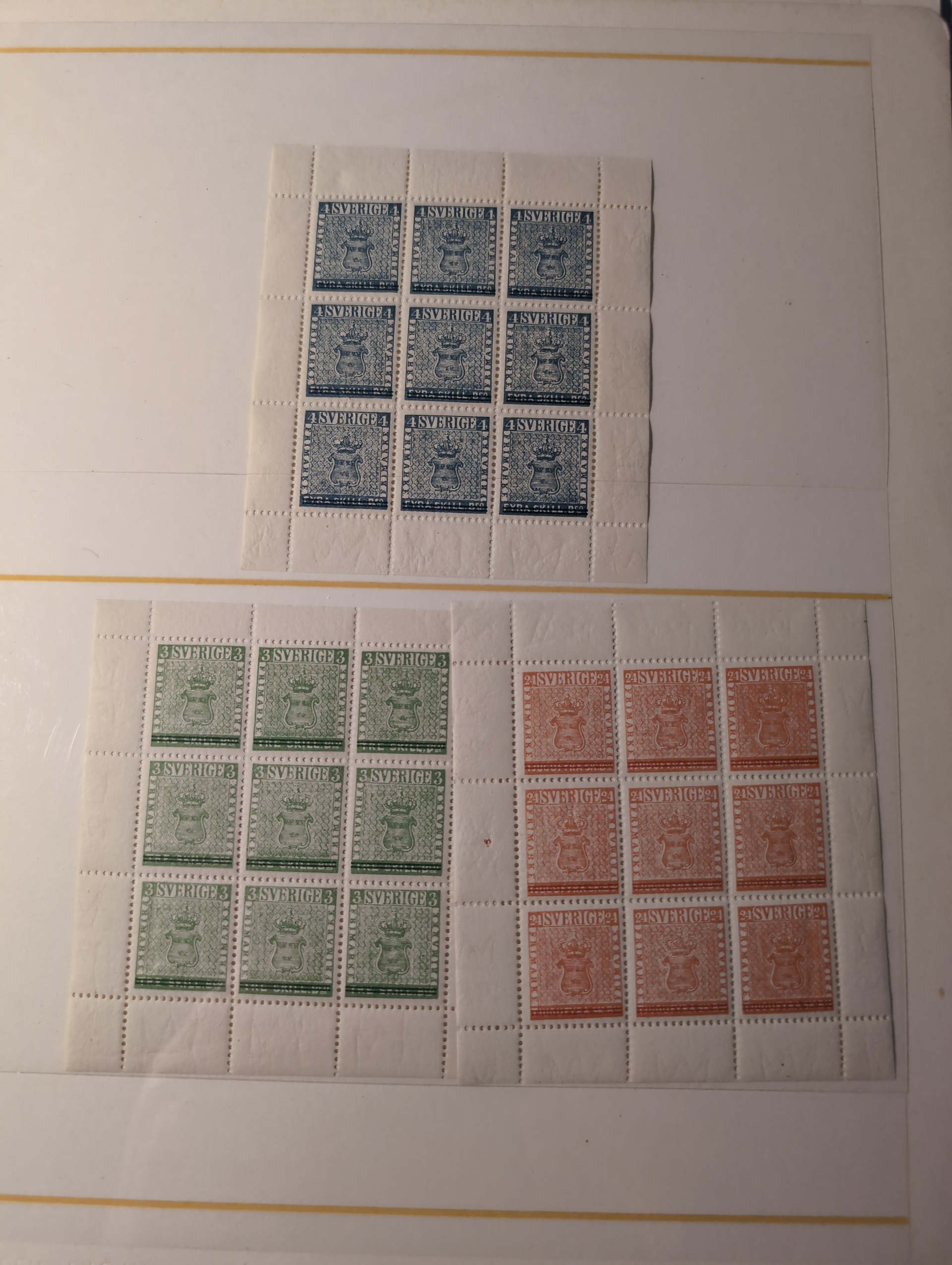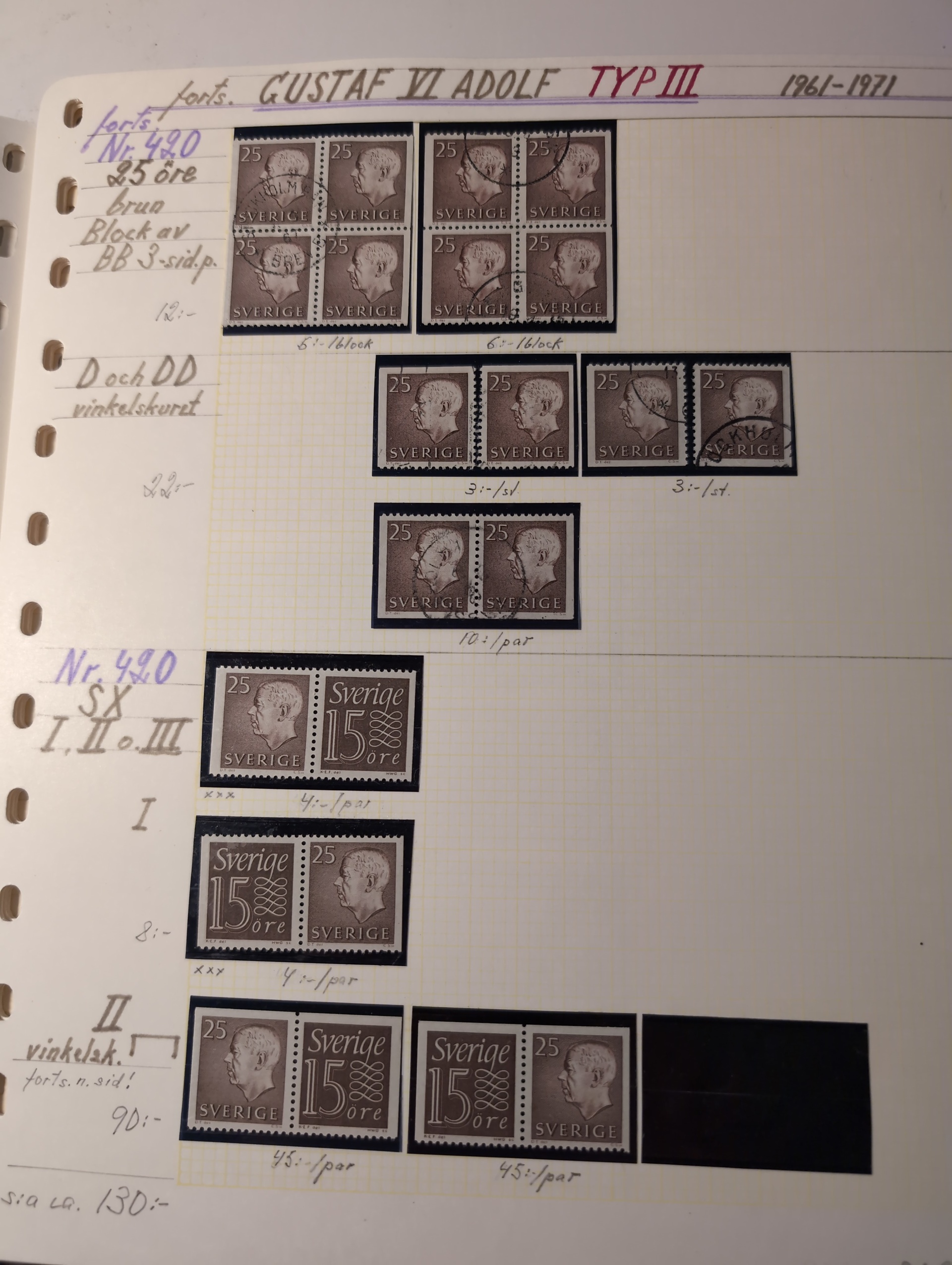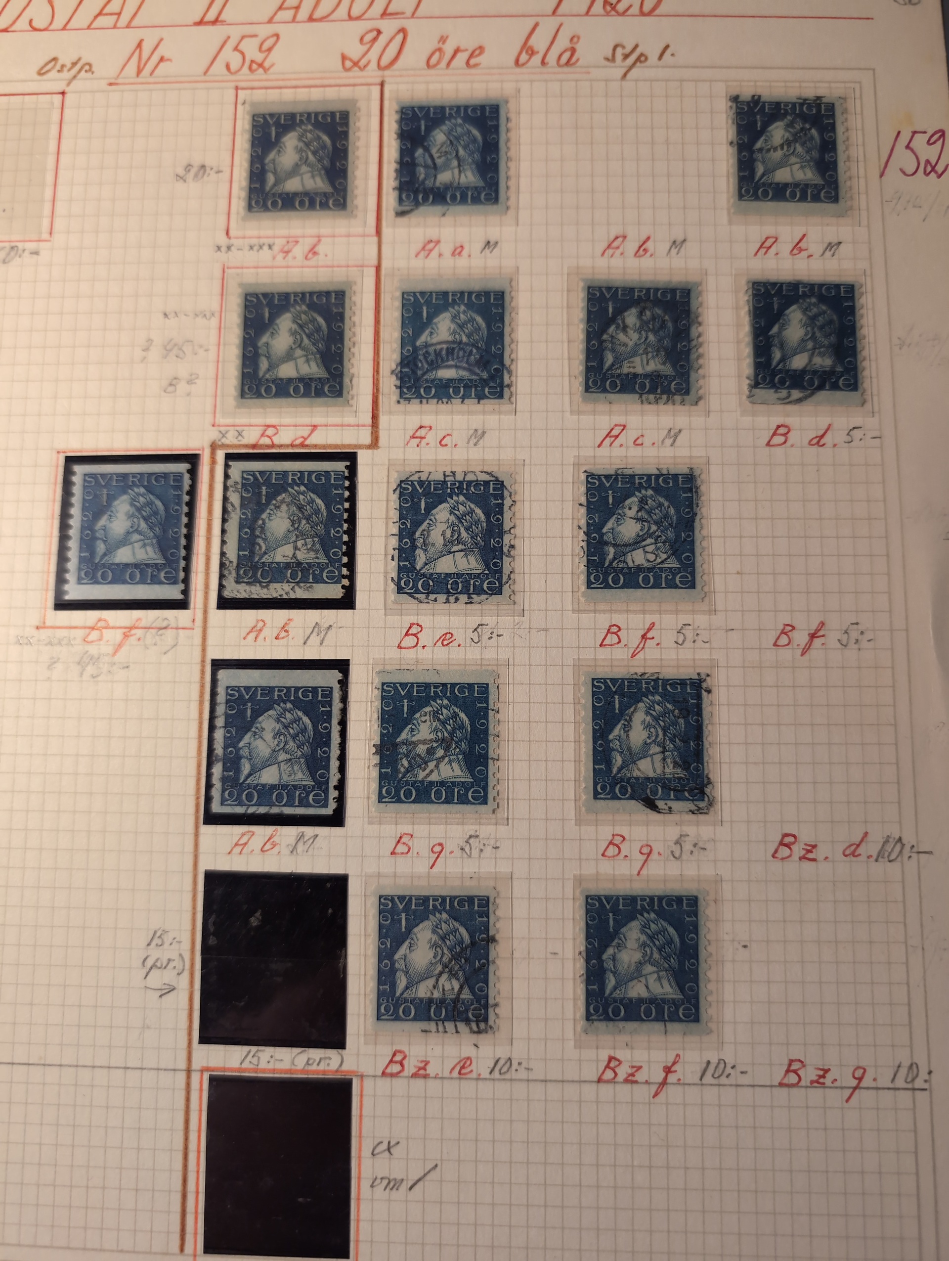 Sweden. Accumulation ★★/★/⊙ 1870s–2010 in box. Mystery box with a huge pile of album leaves and visir leaves mostly Coilstamps - 1960s. One album vending machine booklets, 2 stockbooks and 2 other albums with a mix of Sweden old-1950s. One envelope with more modern Face value incl. 46 "Brev" and 10 "Christmas" stamps. Interesting lot. Somewhat mixed quality. Approx. 18 kg. (1000s)