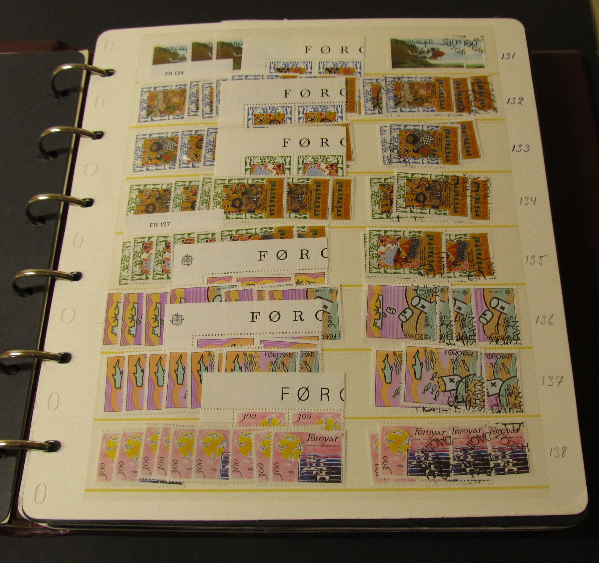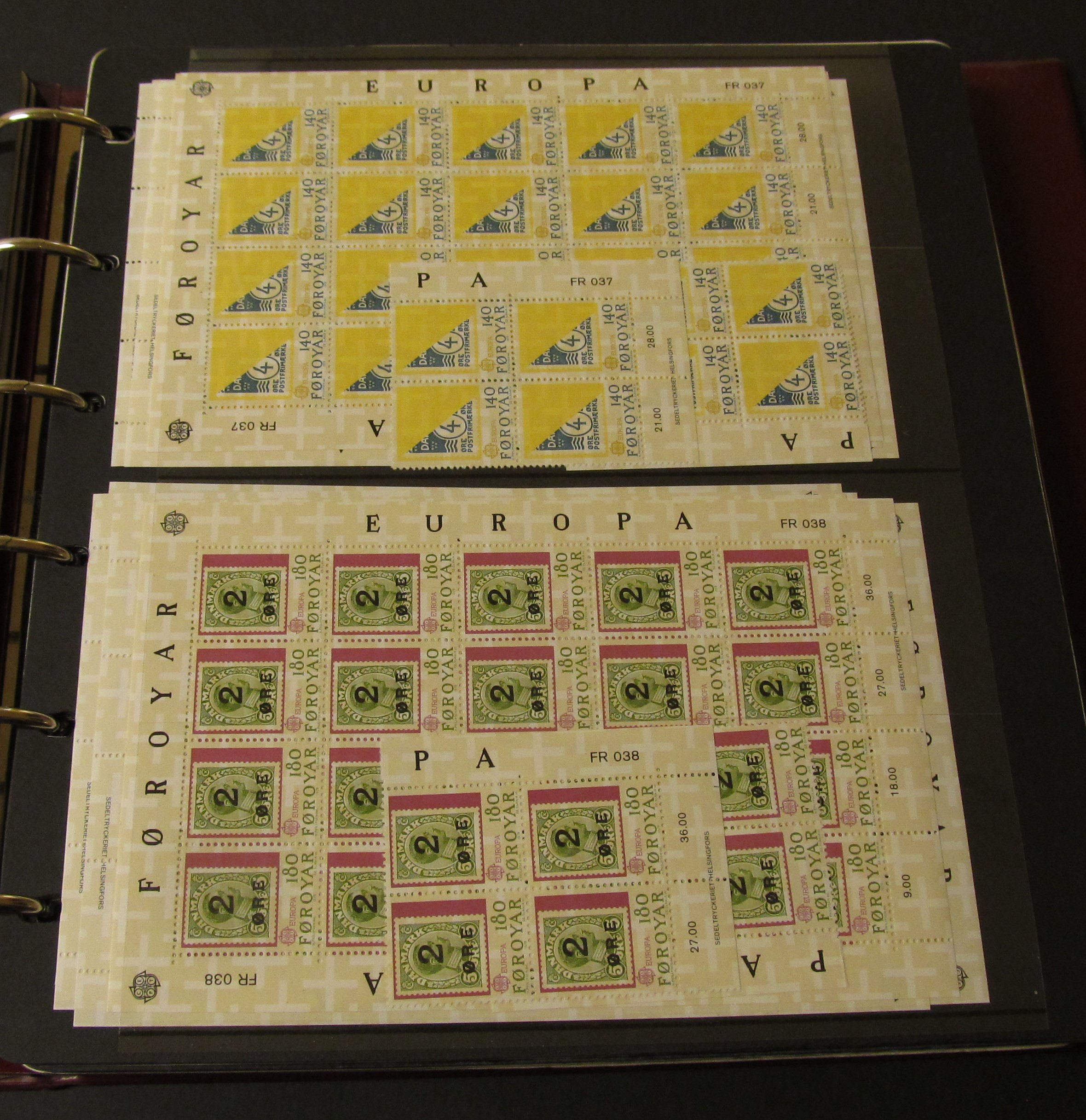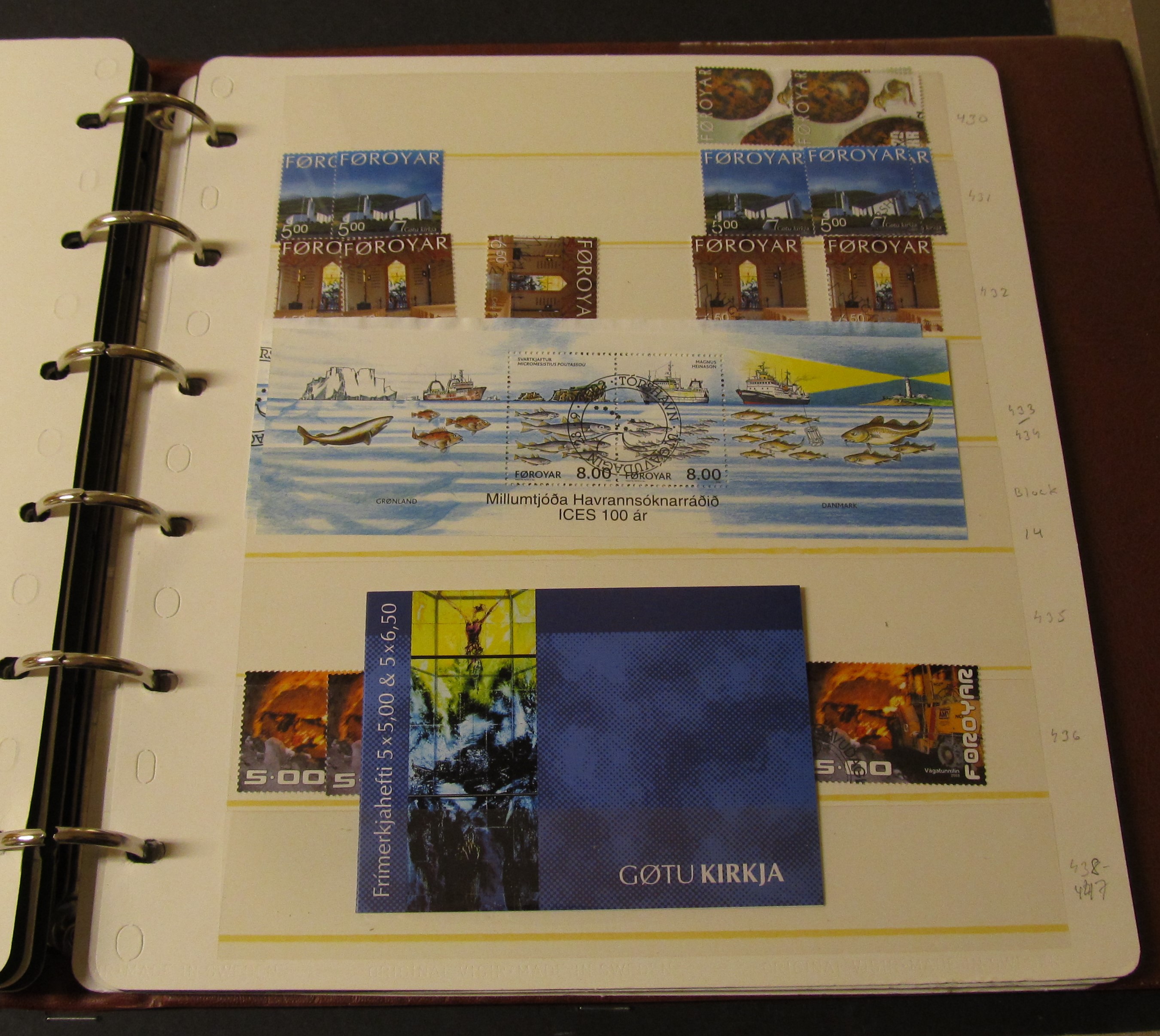 The Faroes. Accumulation ★★/⊙ in three Visir albums. Large duplicate stock in three thick binders, 1975–2010. The used part are mostly CTO or FD. Also some older surcharges (F 1–8) * or used and some cancels. Some scans are presented at www.philea.se. Approx. 7 kg.