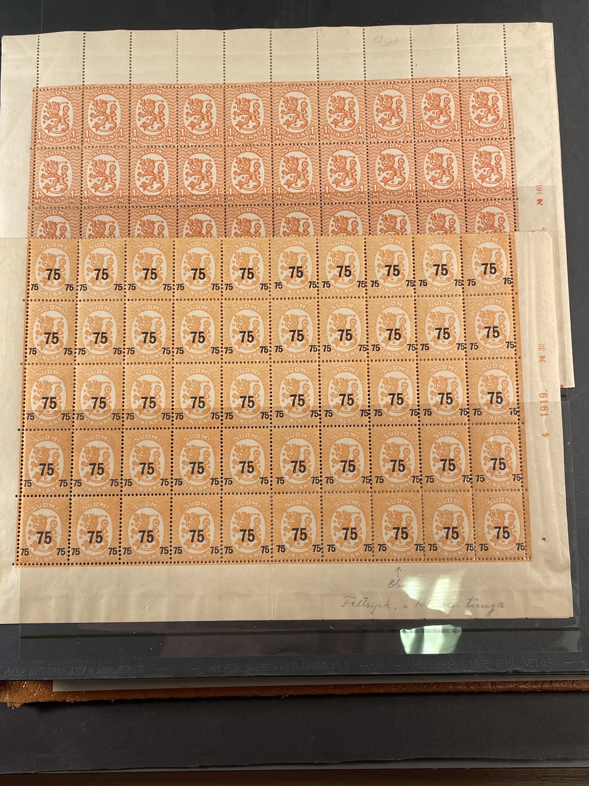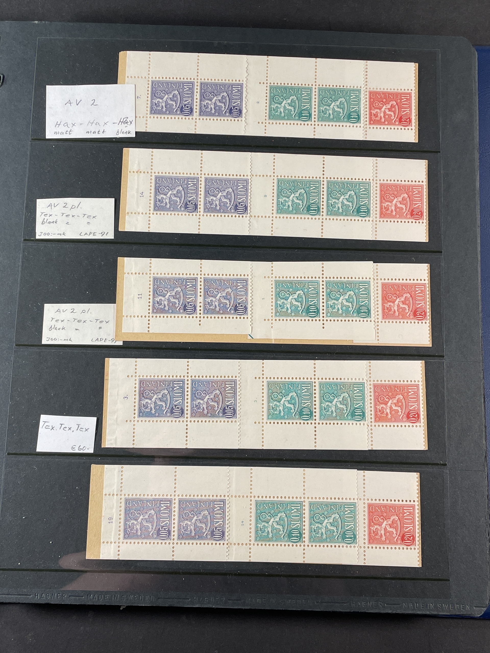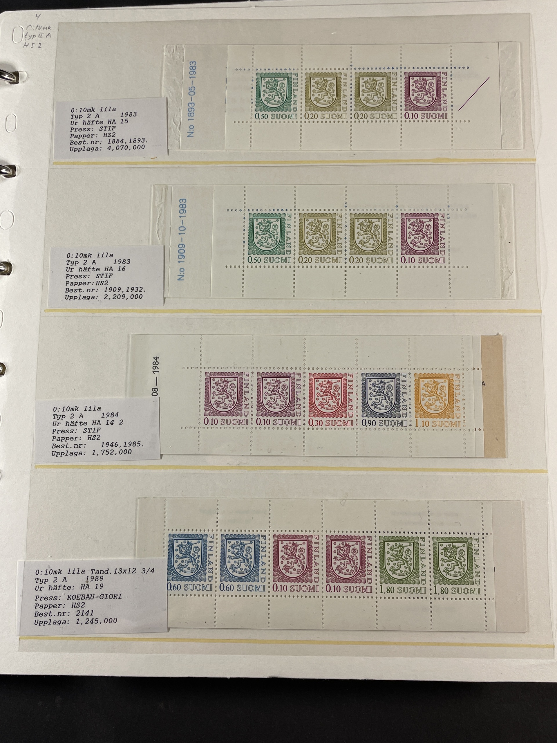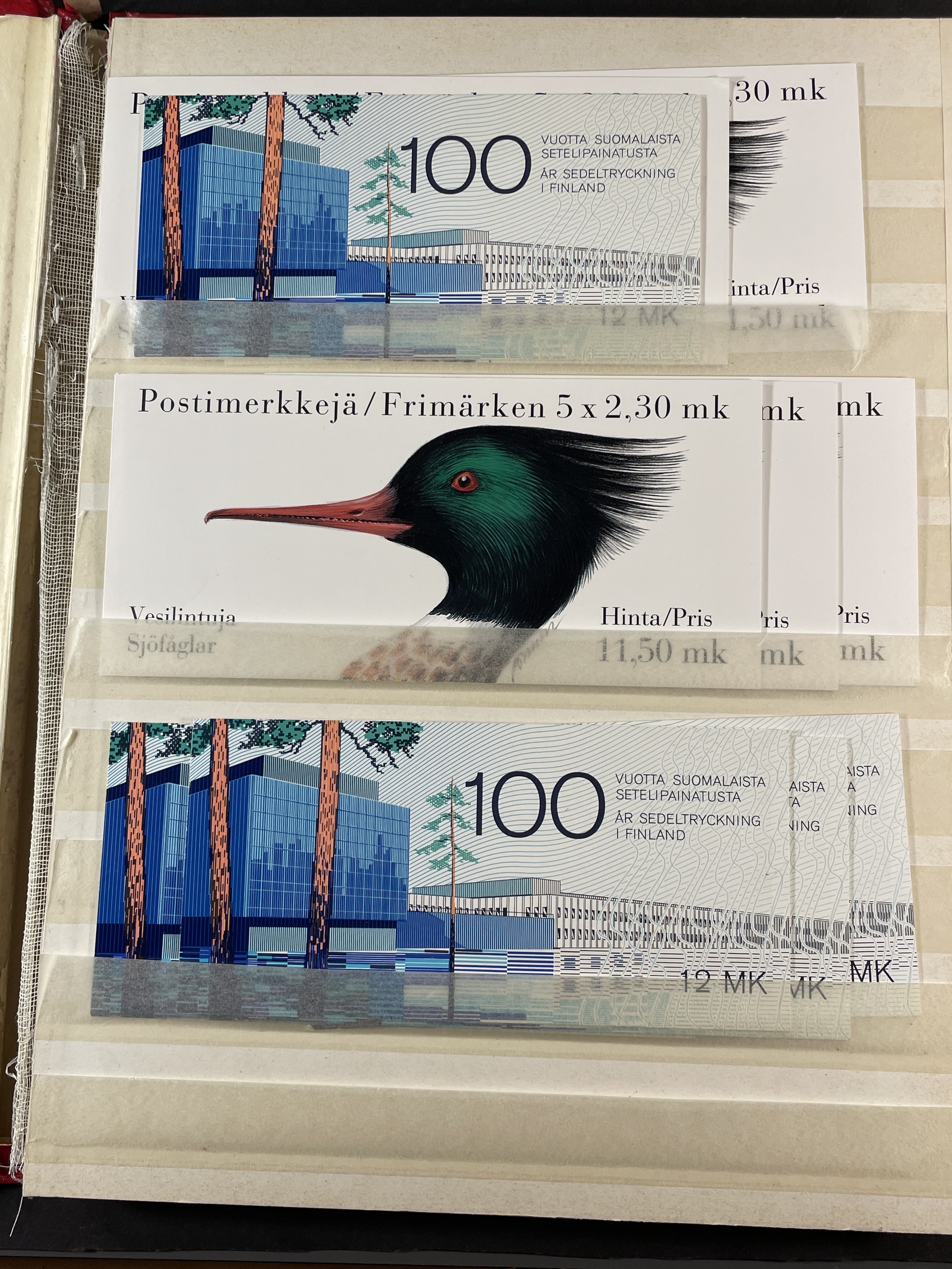 Finland. Accumulation ★★ 1930–2005 in removal box. 7 albums/stockbooks with stamps, sets, series, booklets, mini sheets and sections of stamp sheets. Two of the albums filled with slot machine booklets, all with descriptions. A huge material. Please explore. Excellent quality. Approx. 13 kg. (>10000)