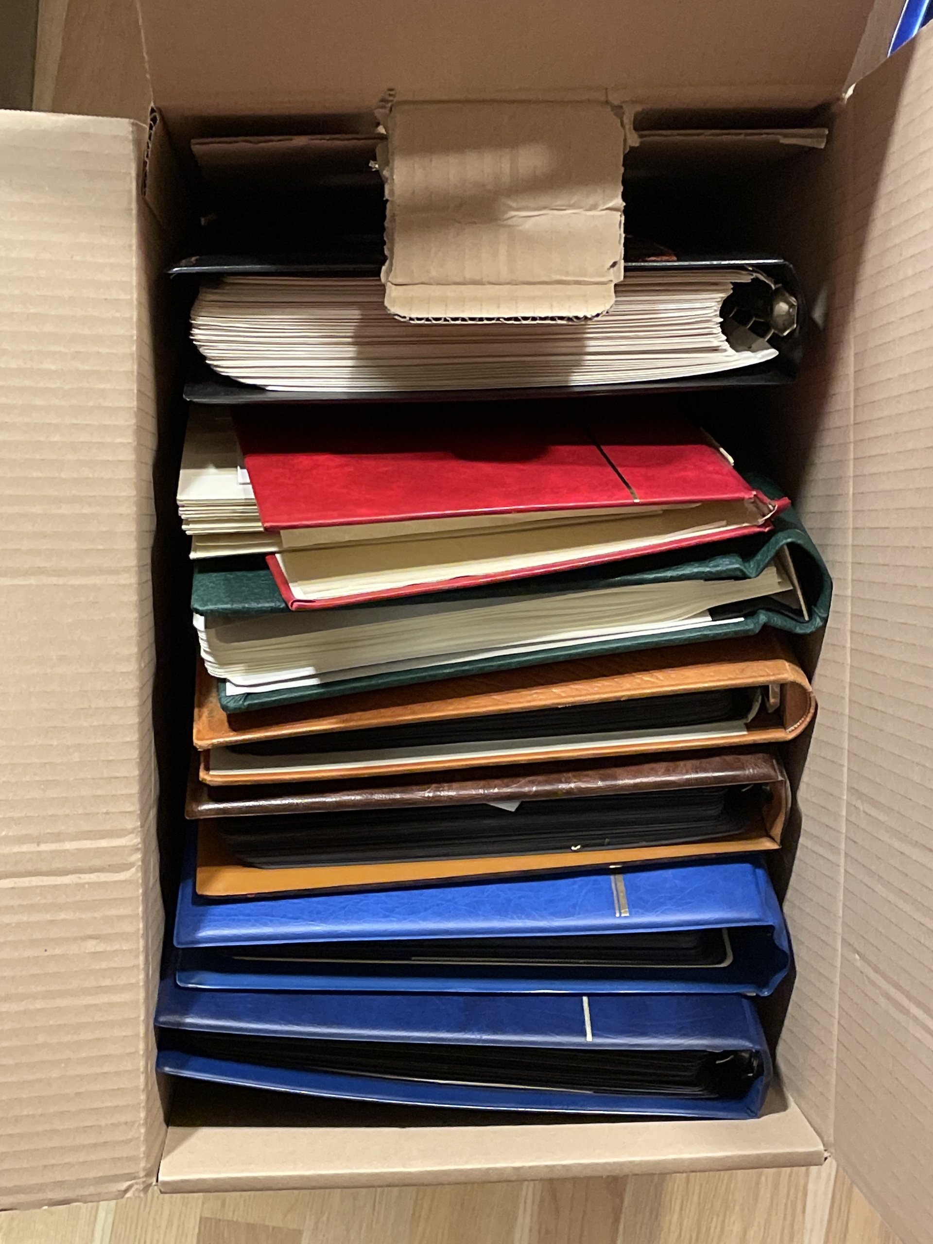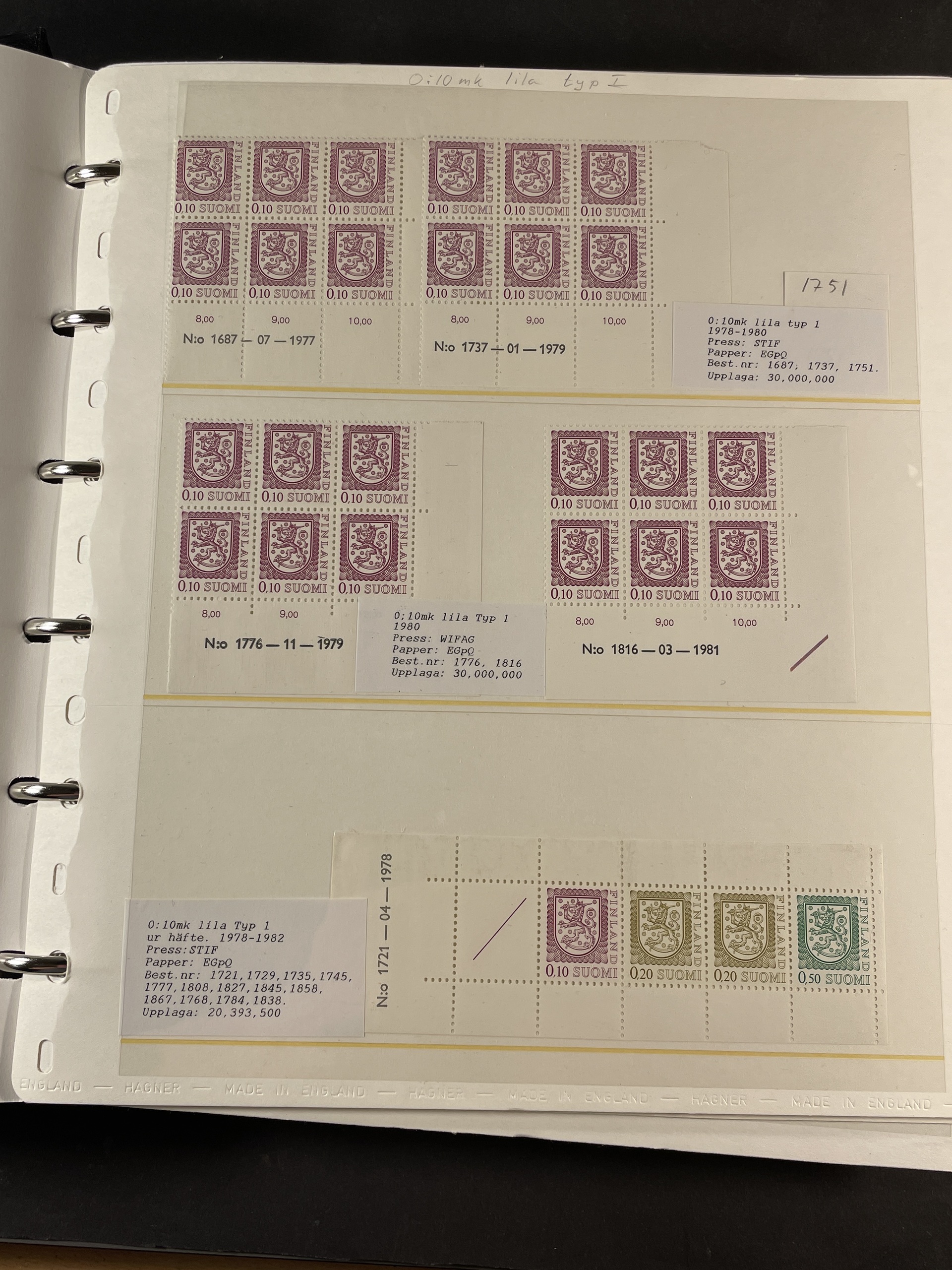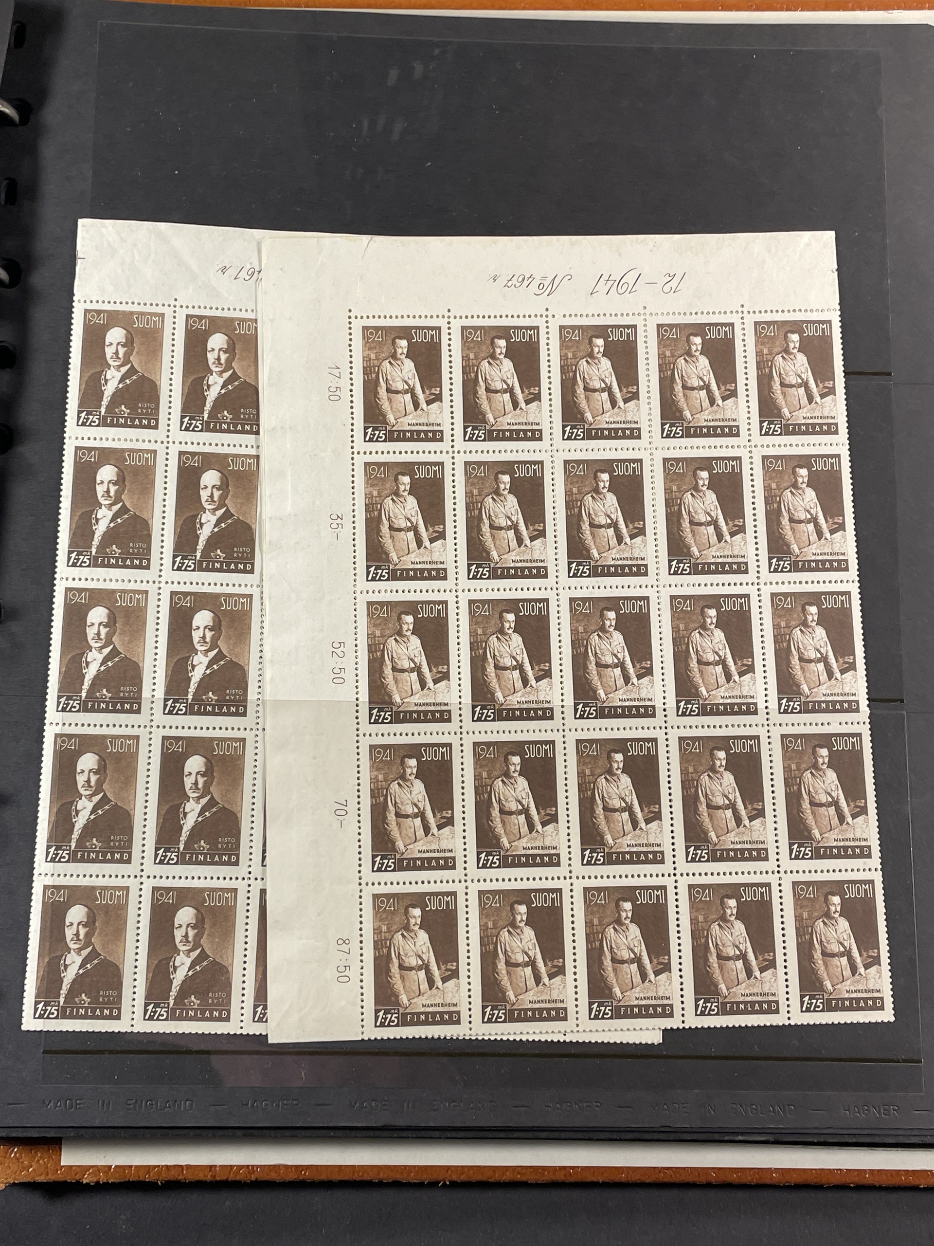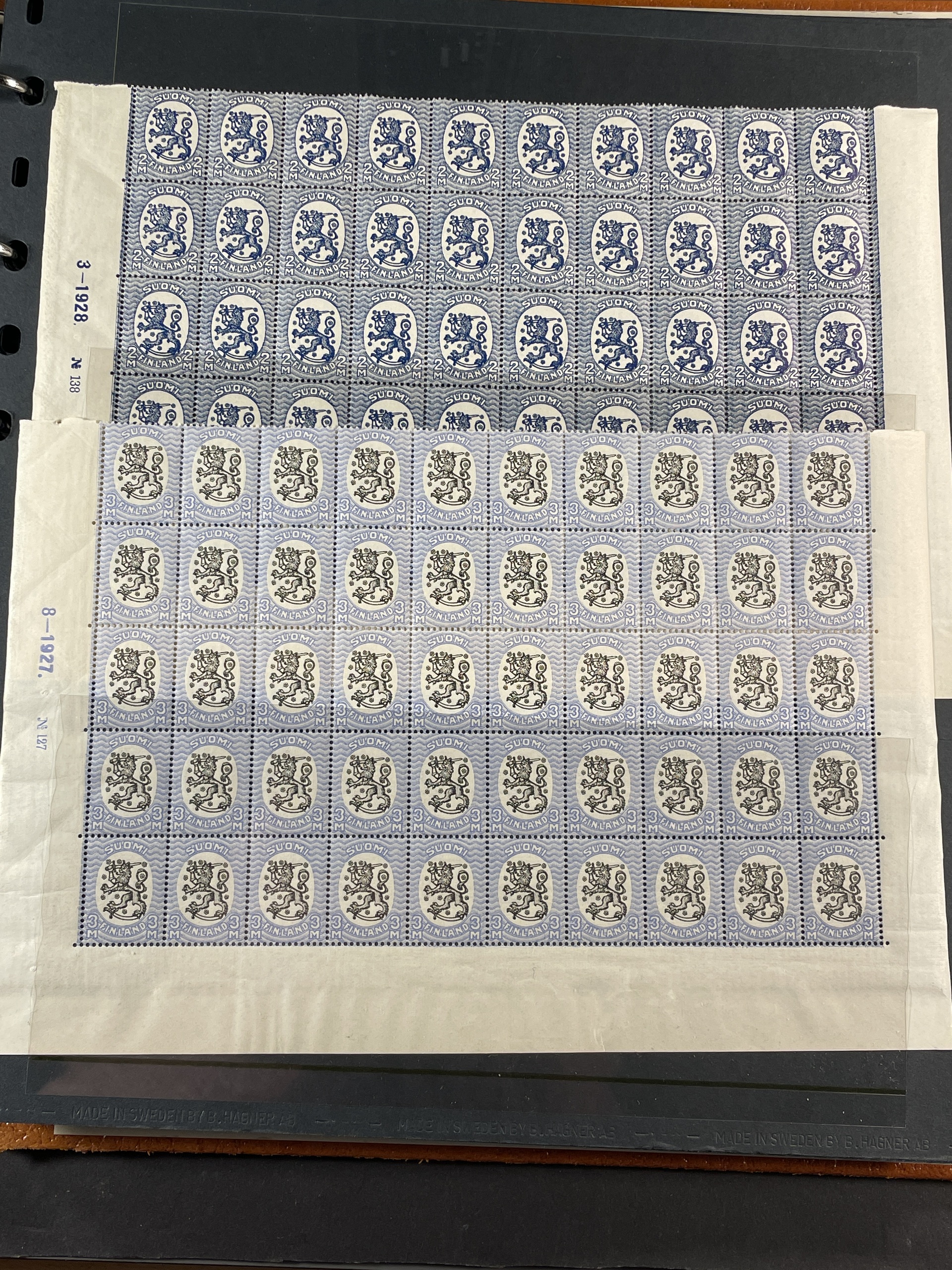 Finland. Accumulation ★★ 1930–2005 in removal box. 7 albums/stockbooks with stamps, sets, series, booklets, mini sheets and sections of stamp sheets. Two of the albums filled with slot machine booklets, all with descriptions. A huge material. Please explore. Excellent quality. Approx. 13 kg. (>10000)