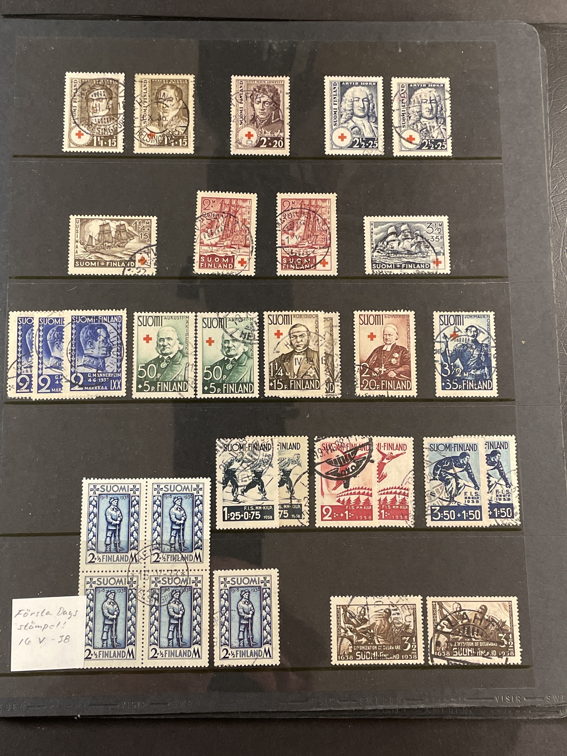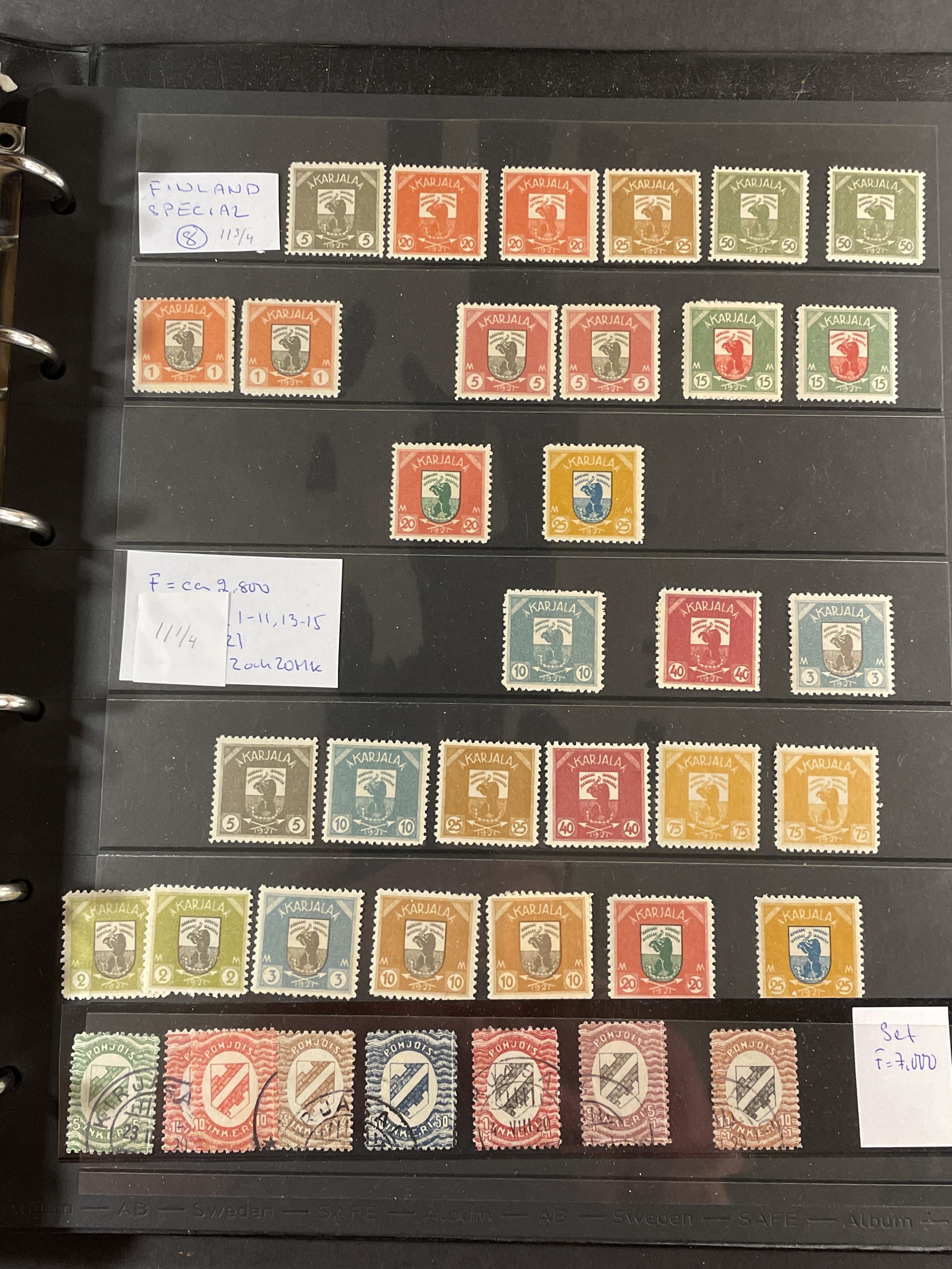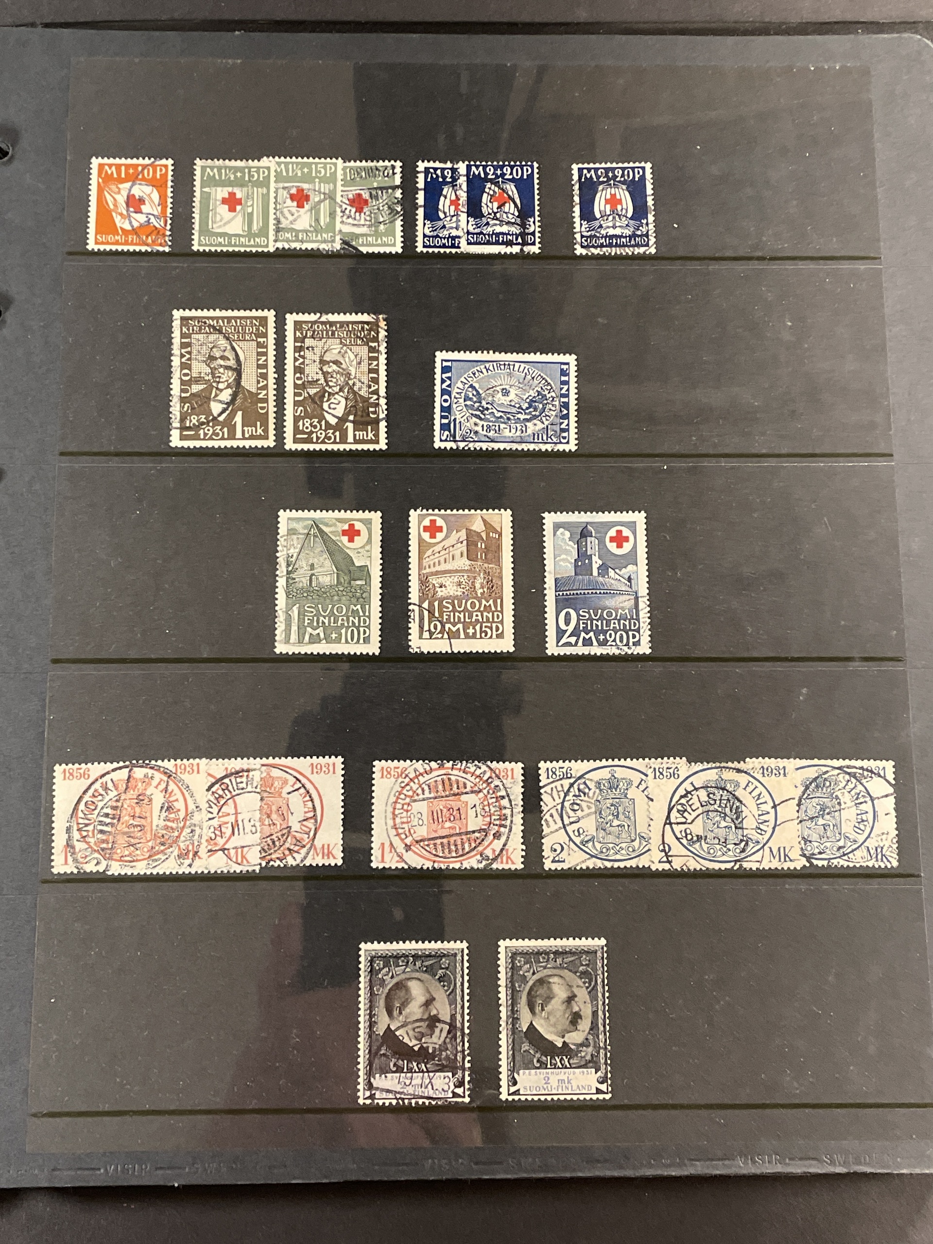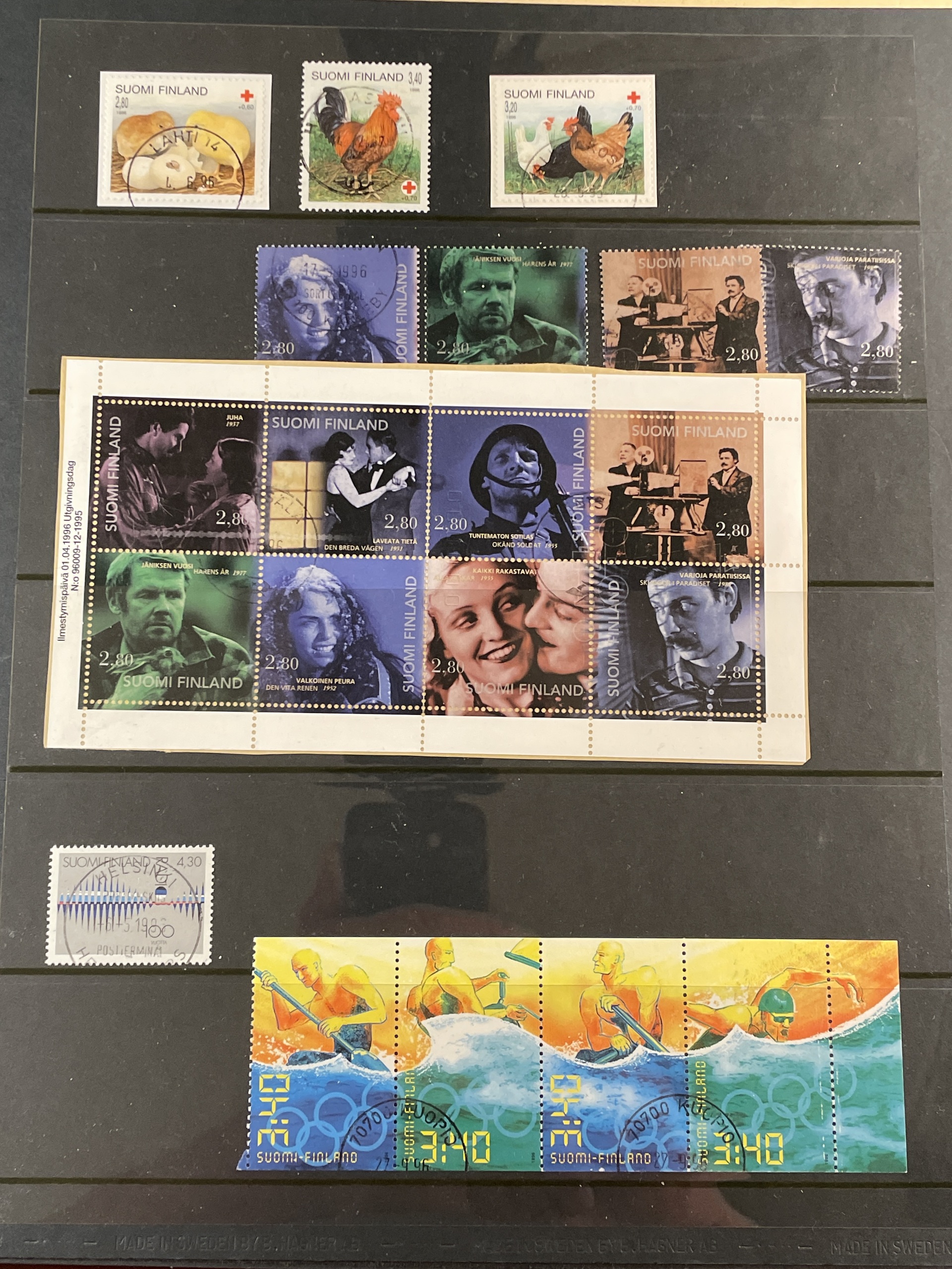 Finland. Collection/accumulation used 1928–2005 in box. 6 albums/stockbooks with, mostly, stock material. Also some older/better aslso found in the albums. Please explore. Fine quality. Approx. 9 kg. (1000s)