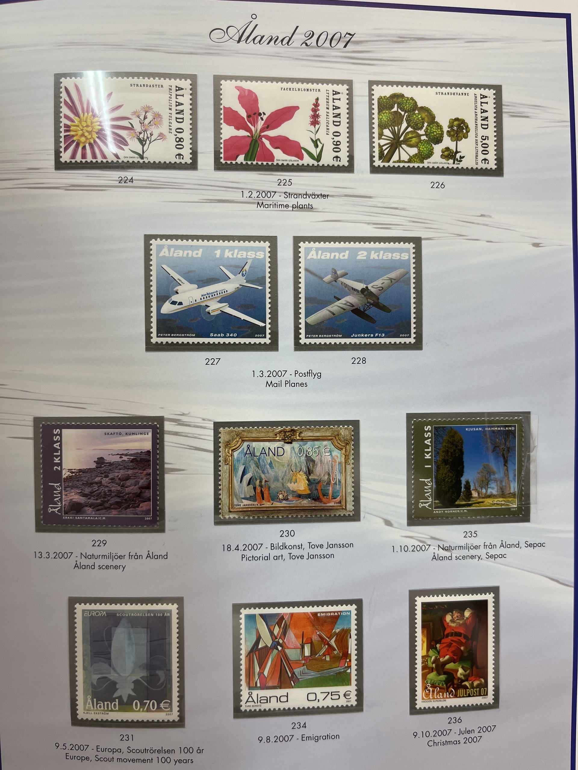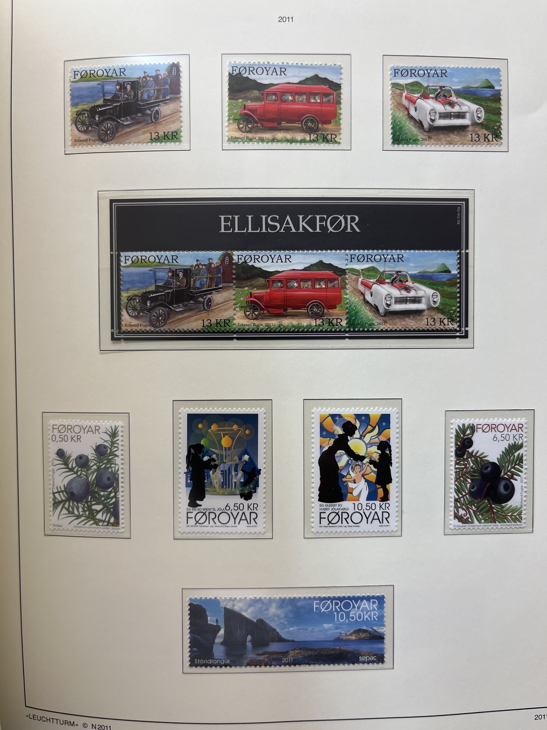 NORDIC COUNTRIES. Collection/accumulation ★★ –2010 in box with five albums. With e.g. Swedish duplicates, The Faroes collection 1975–2011 in Leuchtturm album and Åland 1984–2011 in DAVO-album – both with stamp mounts. Excellent quality. Fine quality. Approx. 10 kg.