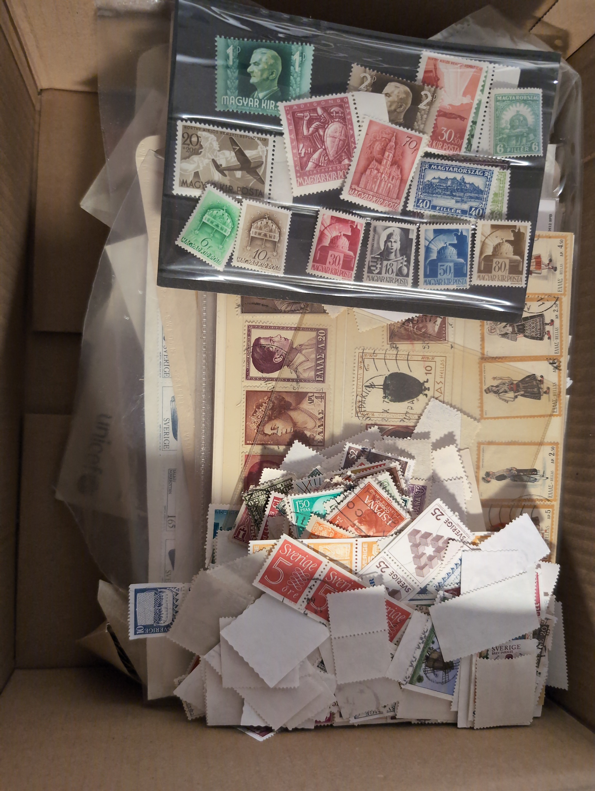 ALL WORLD. Accumulation ★★/★/⊙ c1880s–2000s in box. Mystery box incl four stockbooks with many S/S, visirpages with some better stamps but also a lot of massware, and a box with loose stamps, stamps in glassine envelopes and some club books and Safe album Iceland 1995-2005. Low Reserve. Please see a selection of scans at www.philea.se. Somewhat mixed quality. Approx. 13 kg. (1000s)