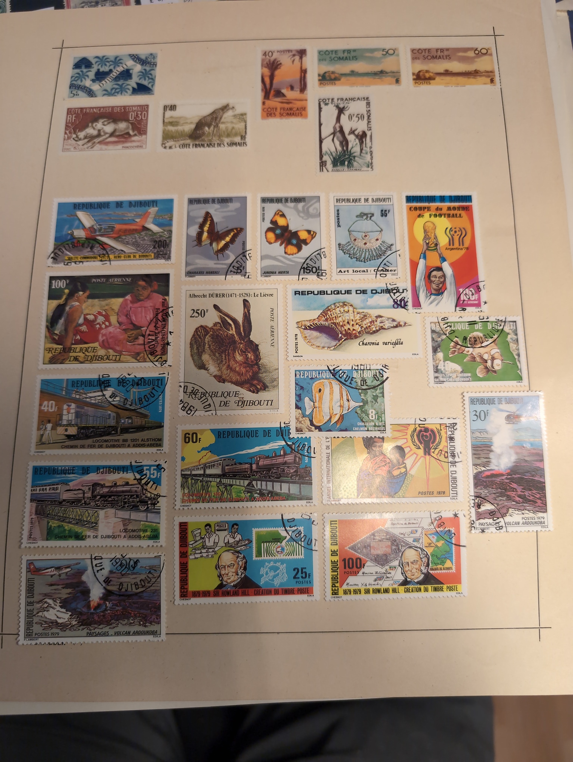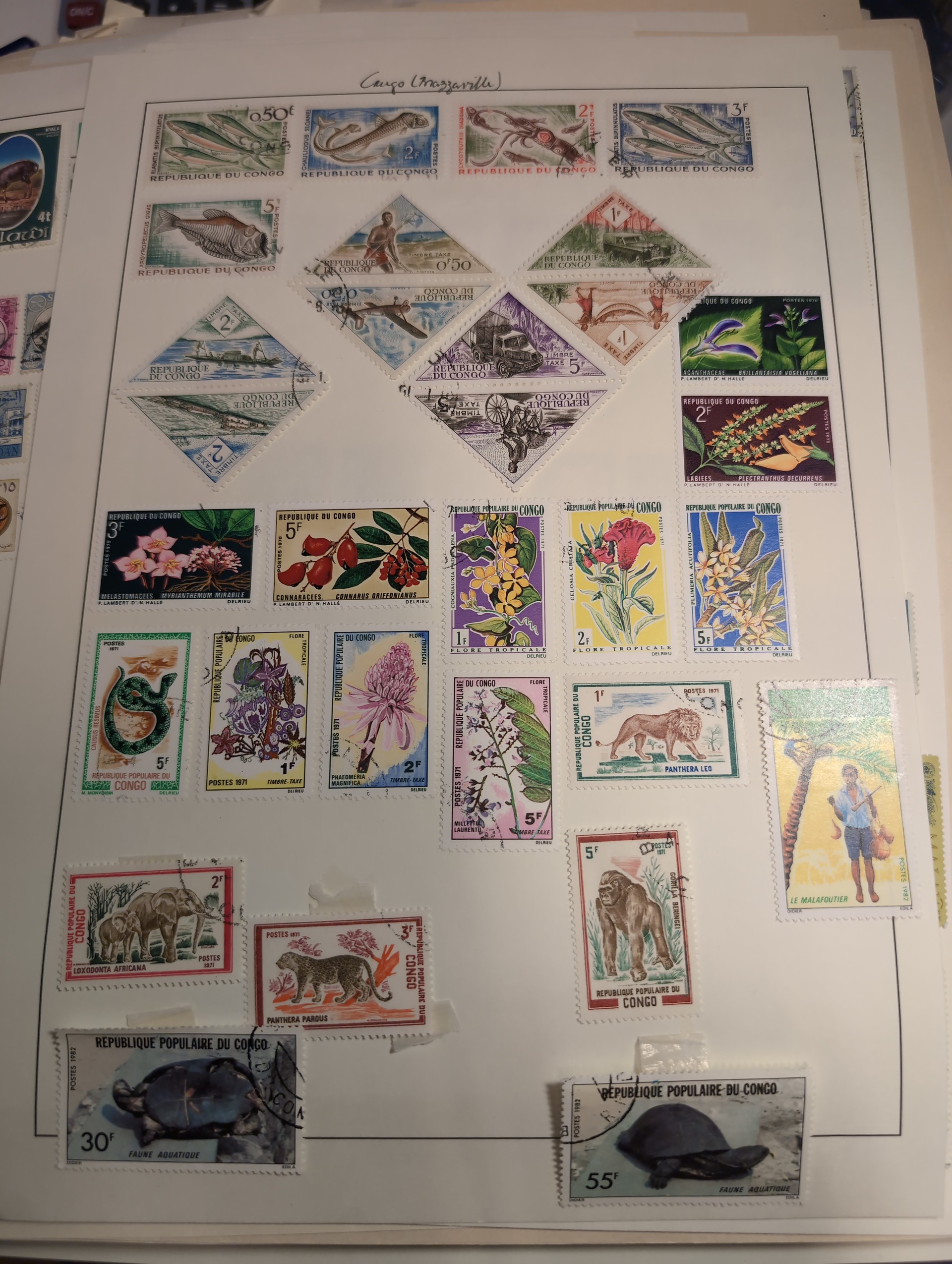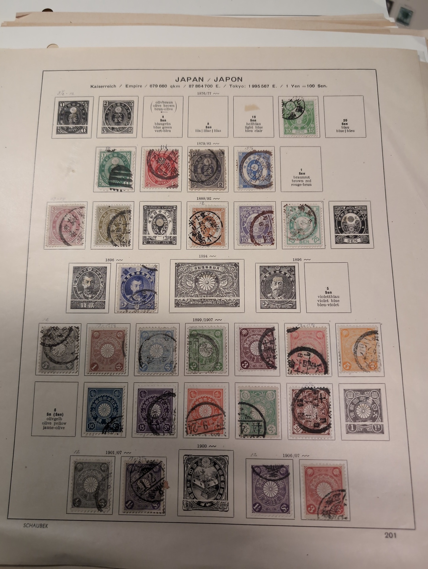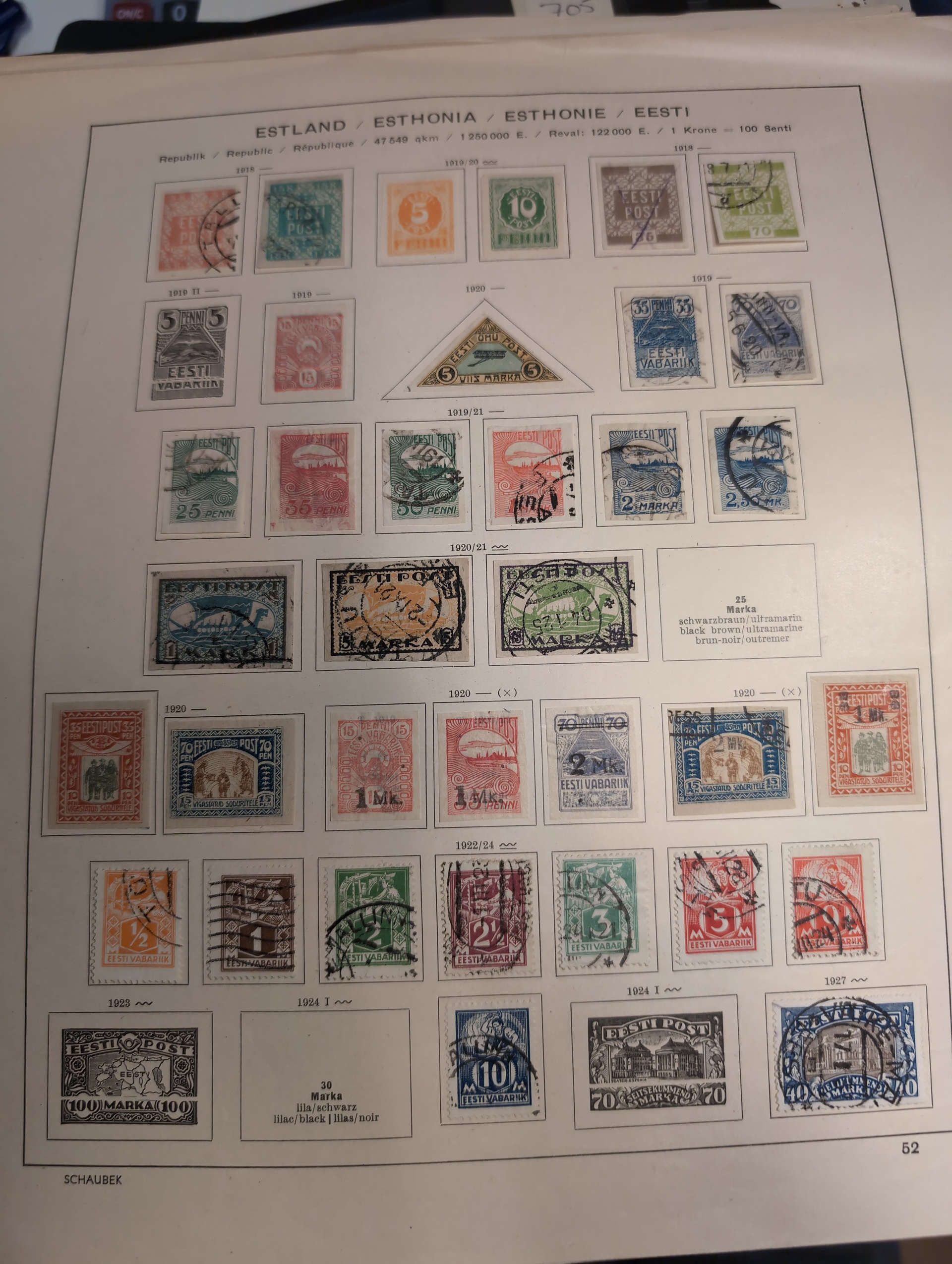 ALL WORLD. Collection/accumulation ★/⊙ 1880s–1970s in box. Album leaves in big box, incl. Japan, Estonia, Lithuania, Norway and many smaller countries in africa and asia. Looks interesting with some a bit better stamps. Please see a selection of scans at www.philea.se. Somewhat mixed quality. Approx. 20 kg. (1000s)
