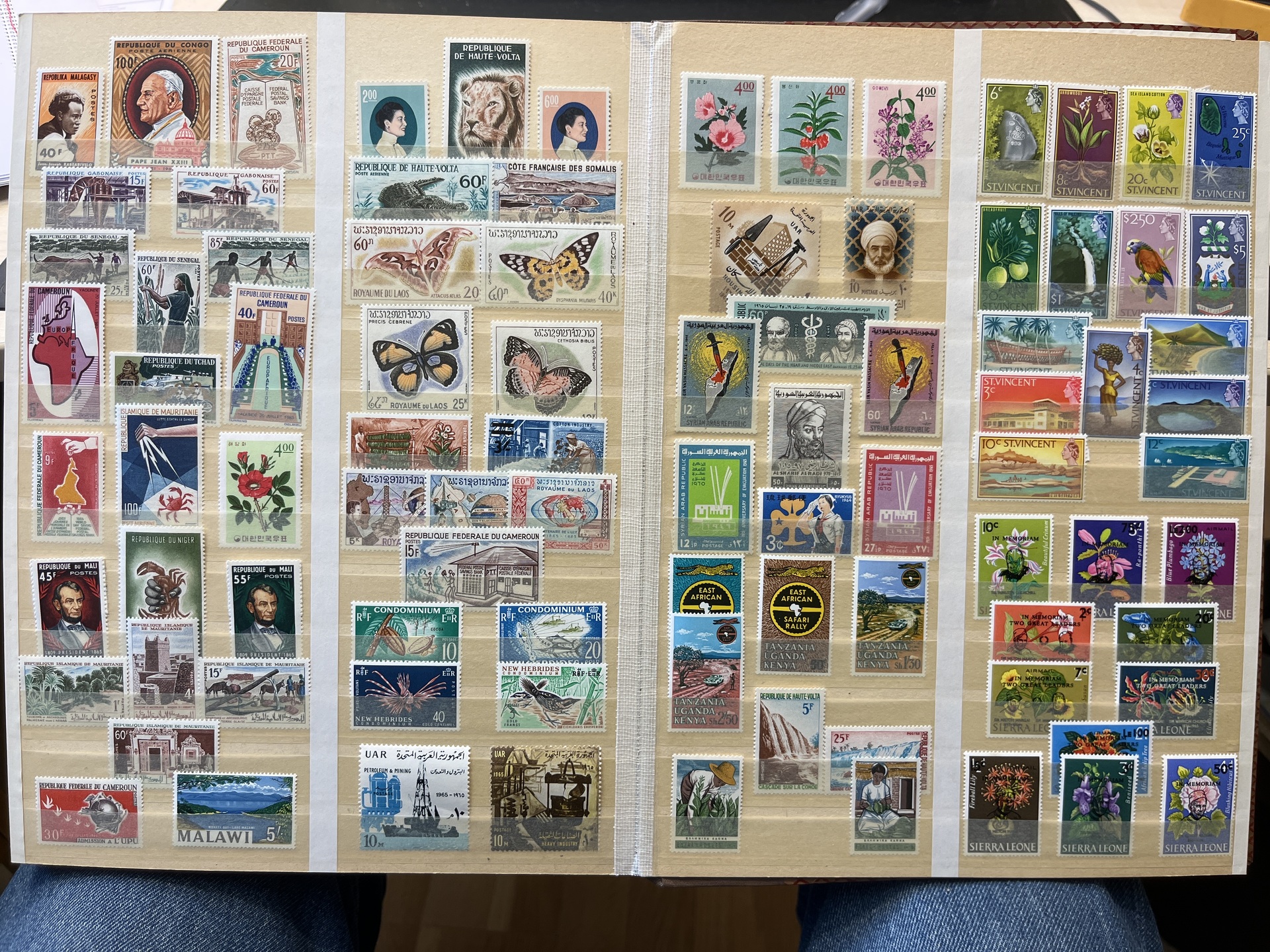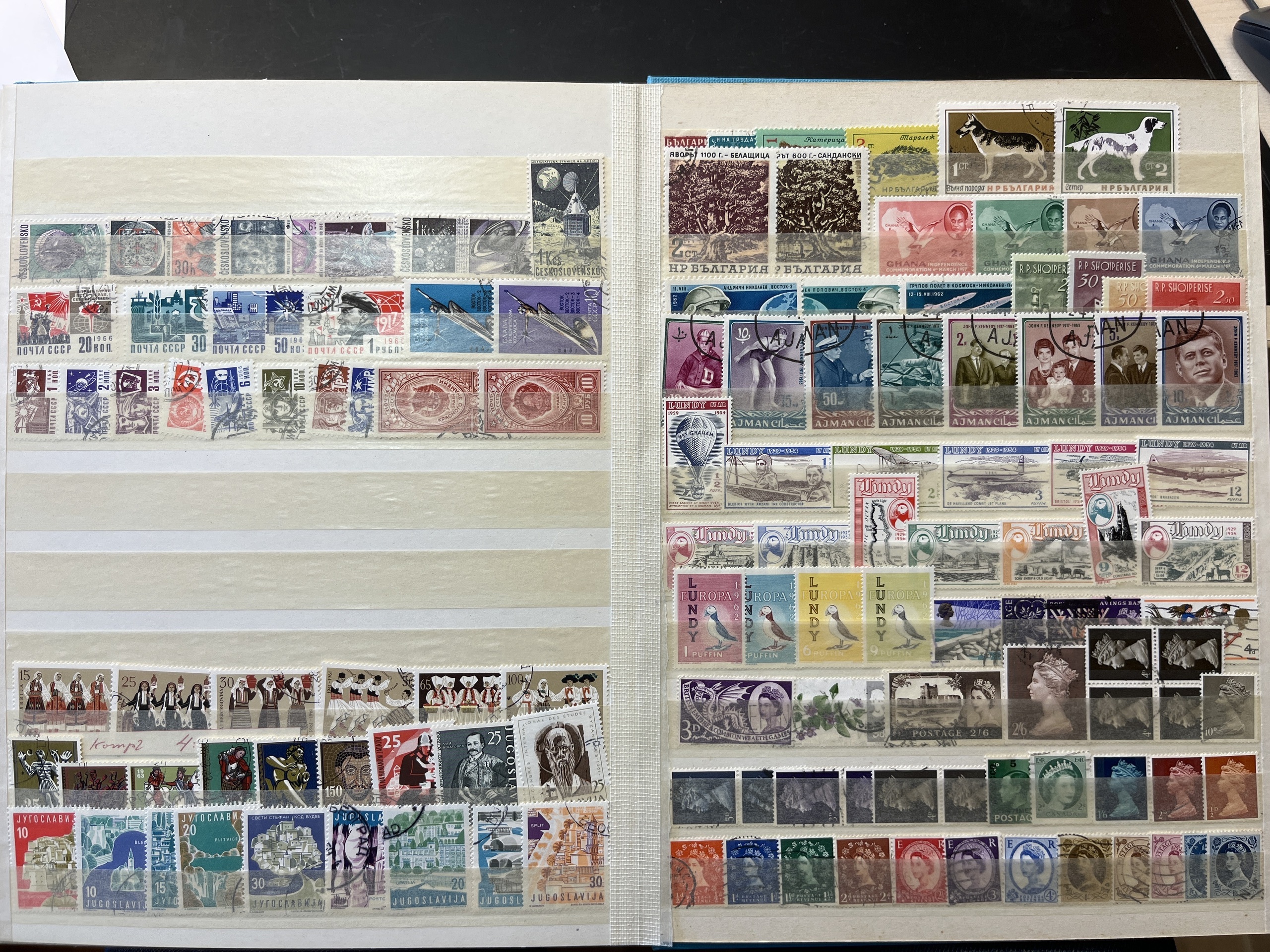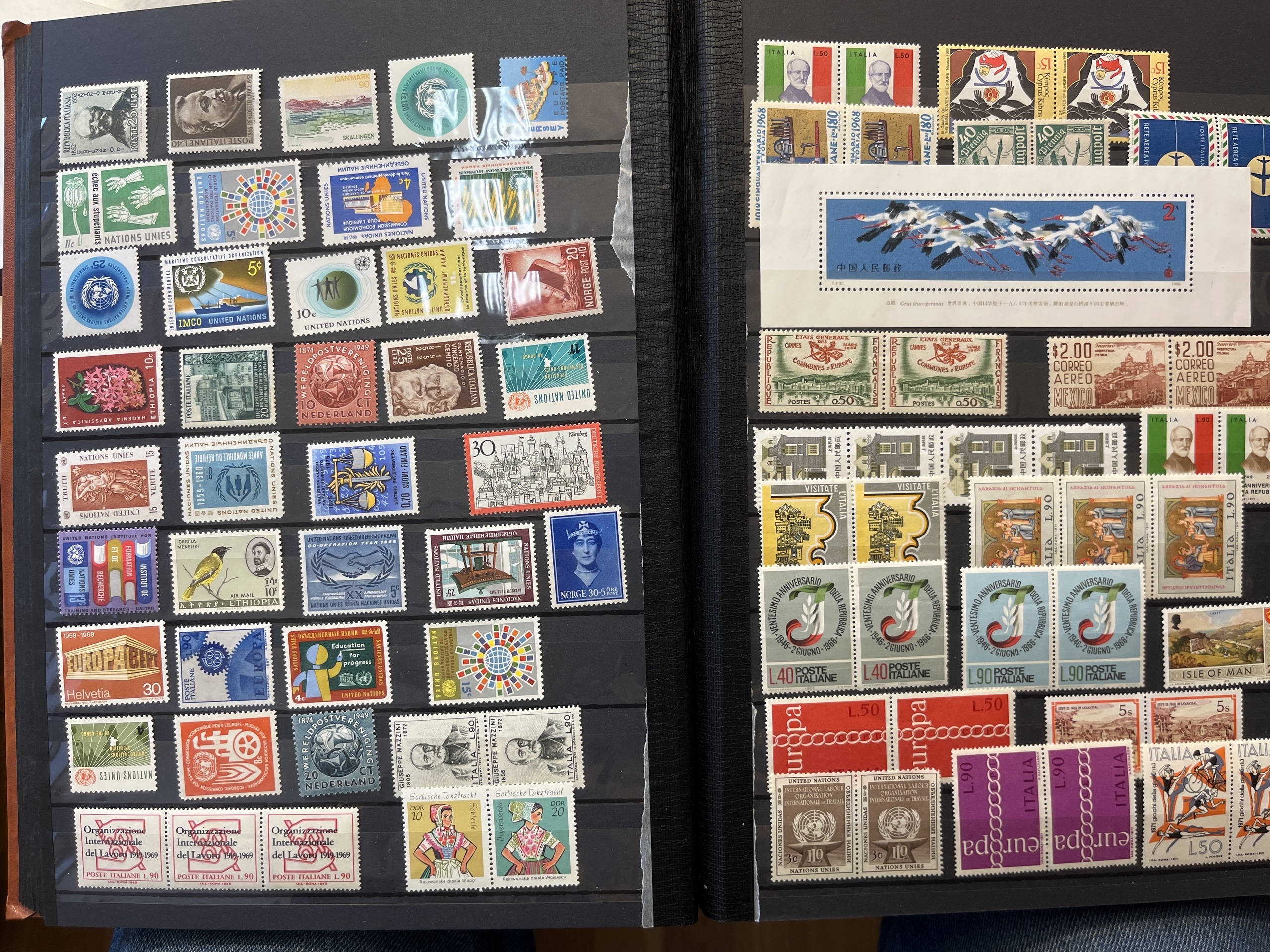 ALL WORLD. Accumulation ★★/★/⊙ in box, eight stockbooks/visir album. Many thematic stamps and blocks. Please see a selection of scans at www.philea.se. Approx. 8 kg.