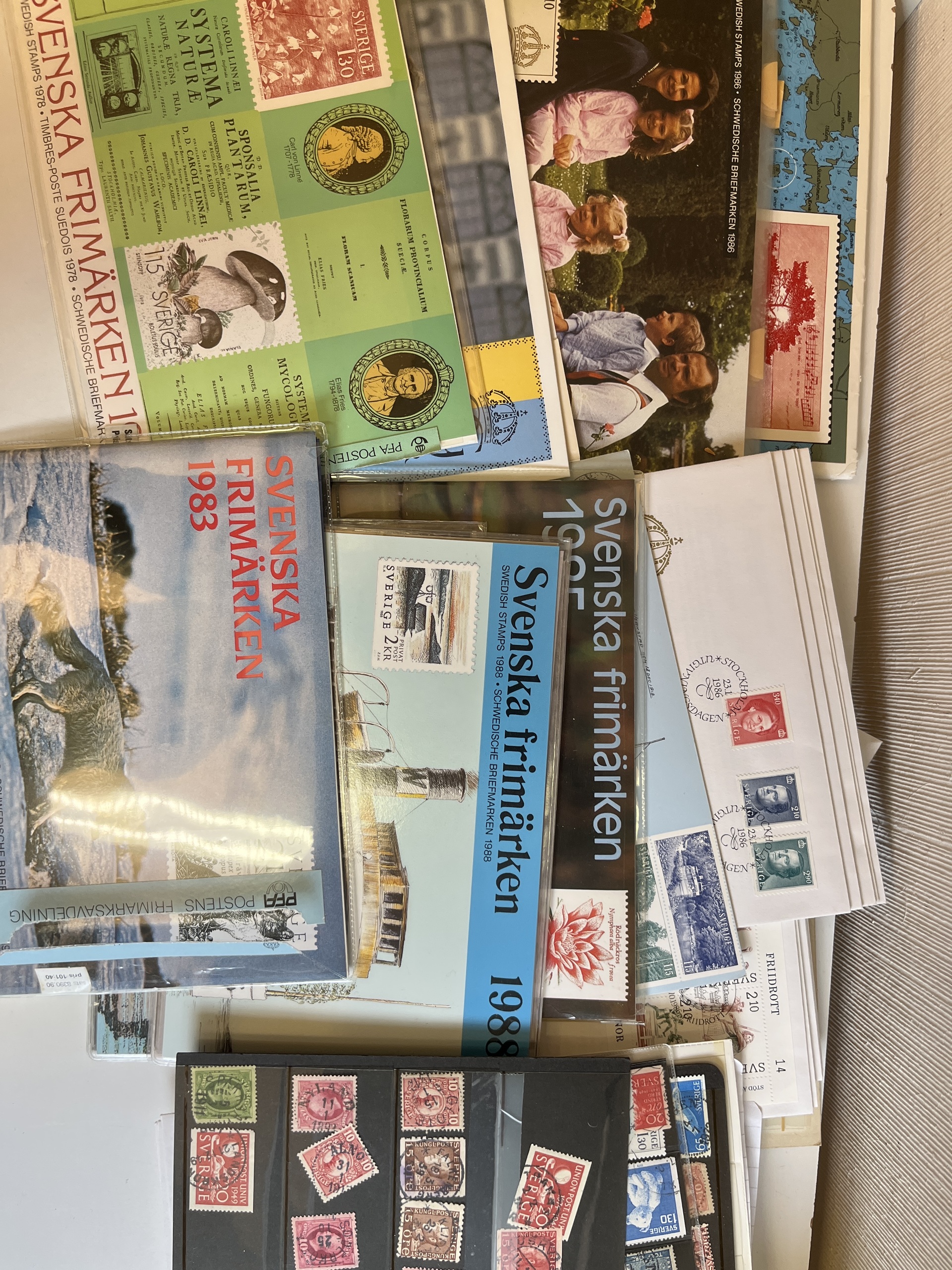 ALL WORLD. Collection/accumulation ★★/★/⊙ Old–modern in removal box with 22 albums. Thousands of stamps and som Swedish face value inkl. some discount stamps. Approx. 24 kg.
