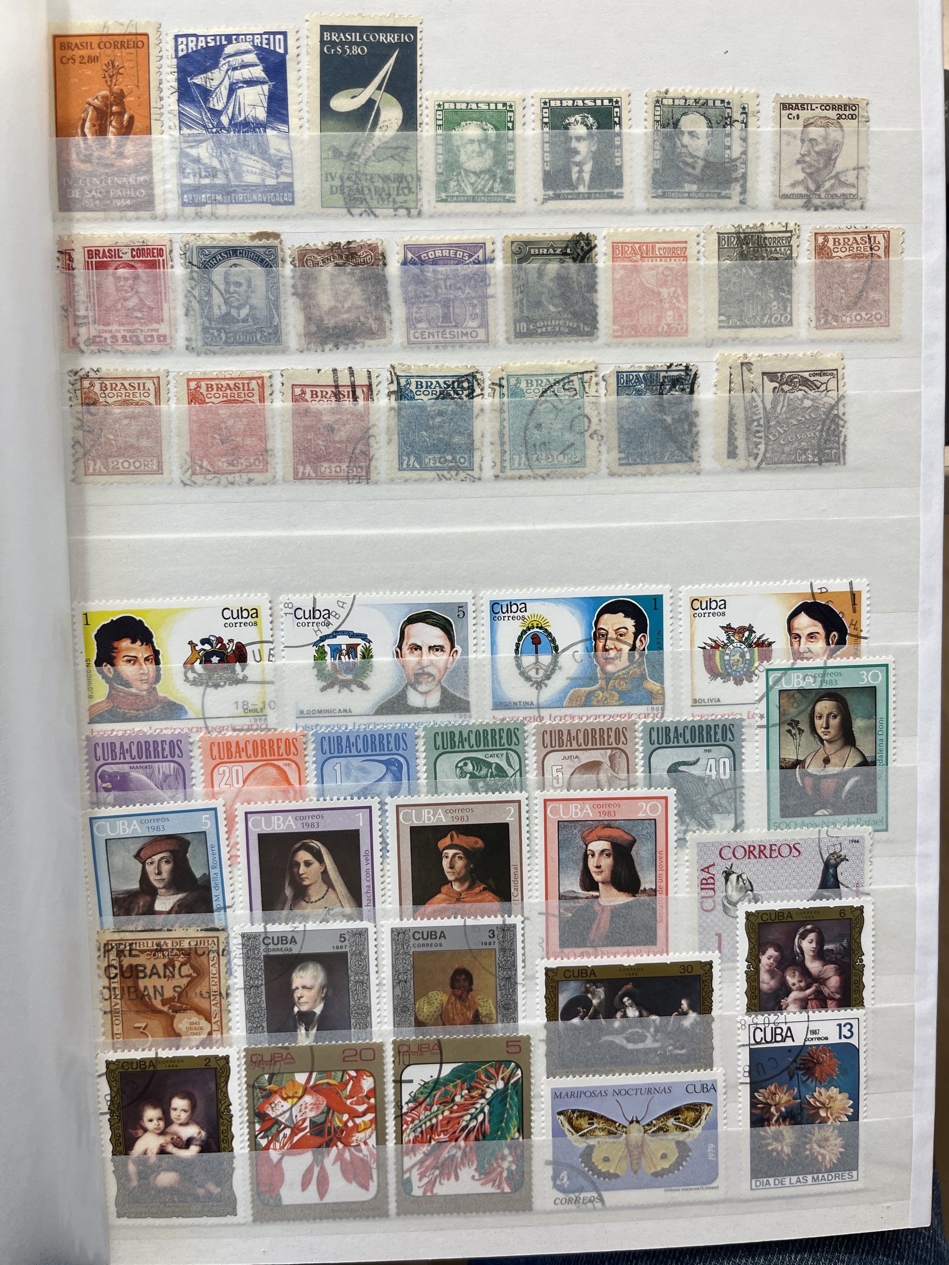 ALL WORLD. Accumulation mostly used in box with nine stockbookls. Thousends of stamps. Approx. 9 kg.