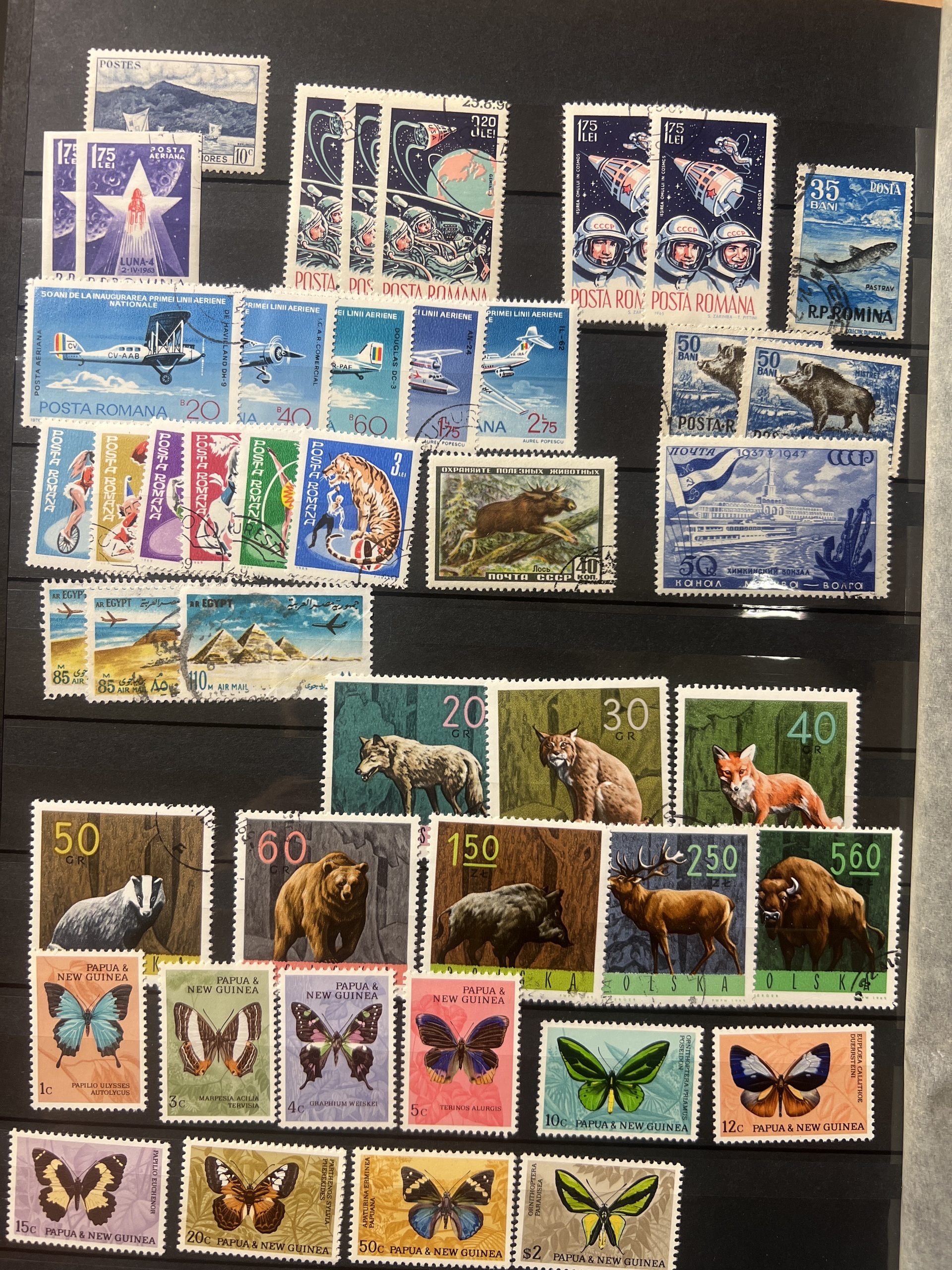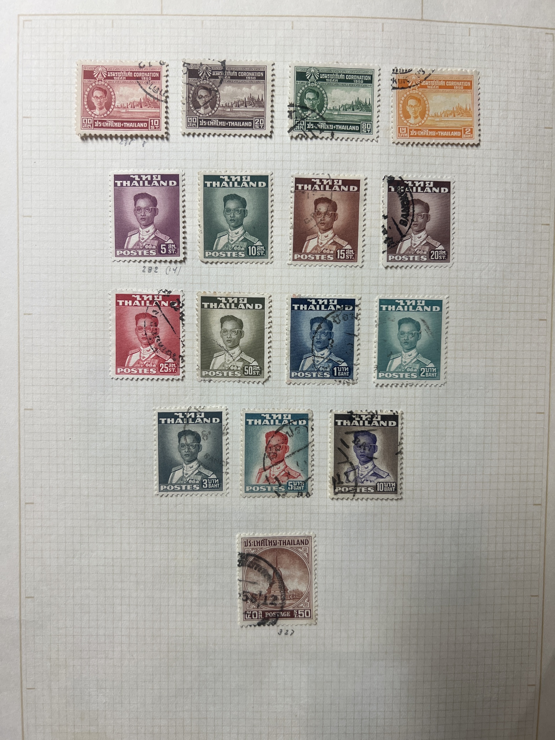 ALL WORLD. Collection ★★/★/⊙ in box. Four albums and two stockbooks with much South East Asia incl. Thailand, one album UN. Much thematic stamps. Please see a selection of scans at www.philea.se. Good quality. Approx. 8 kg. (1000s)