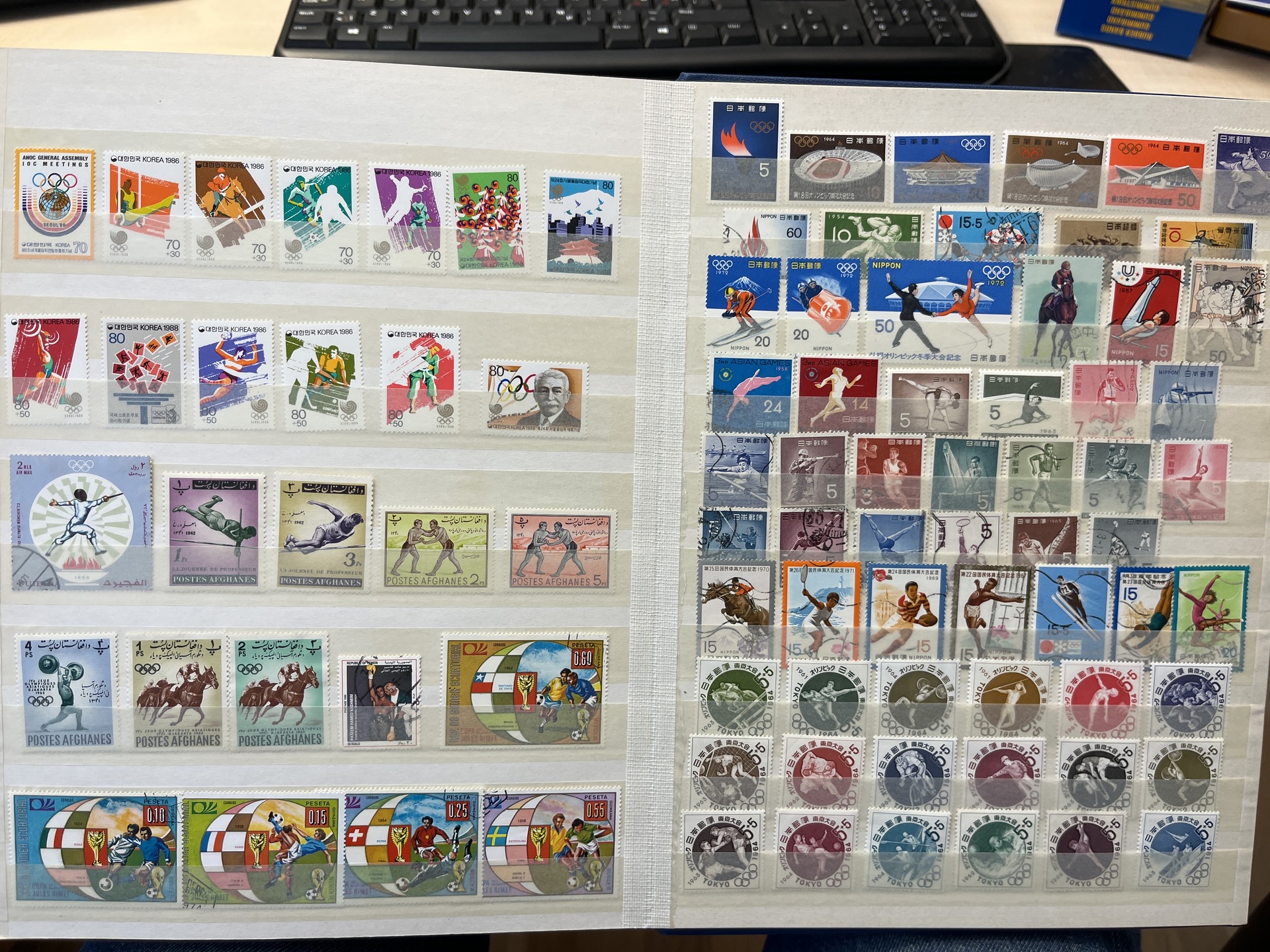 Thematics, Sports / olympic games. Collection ★★/★/⊙ in box with seven albums. Many Olympics. Approx. 8 kg.