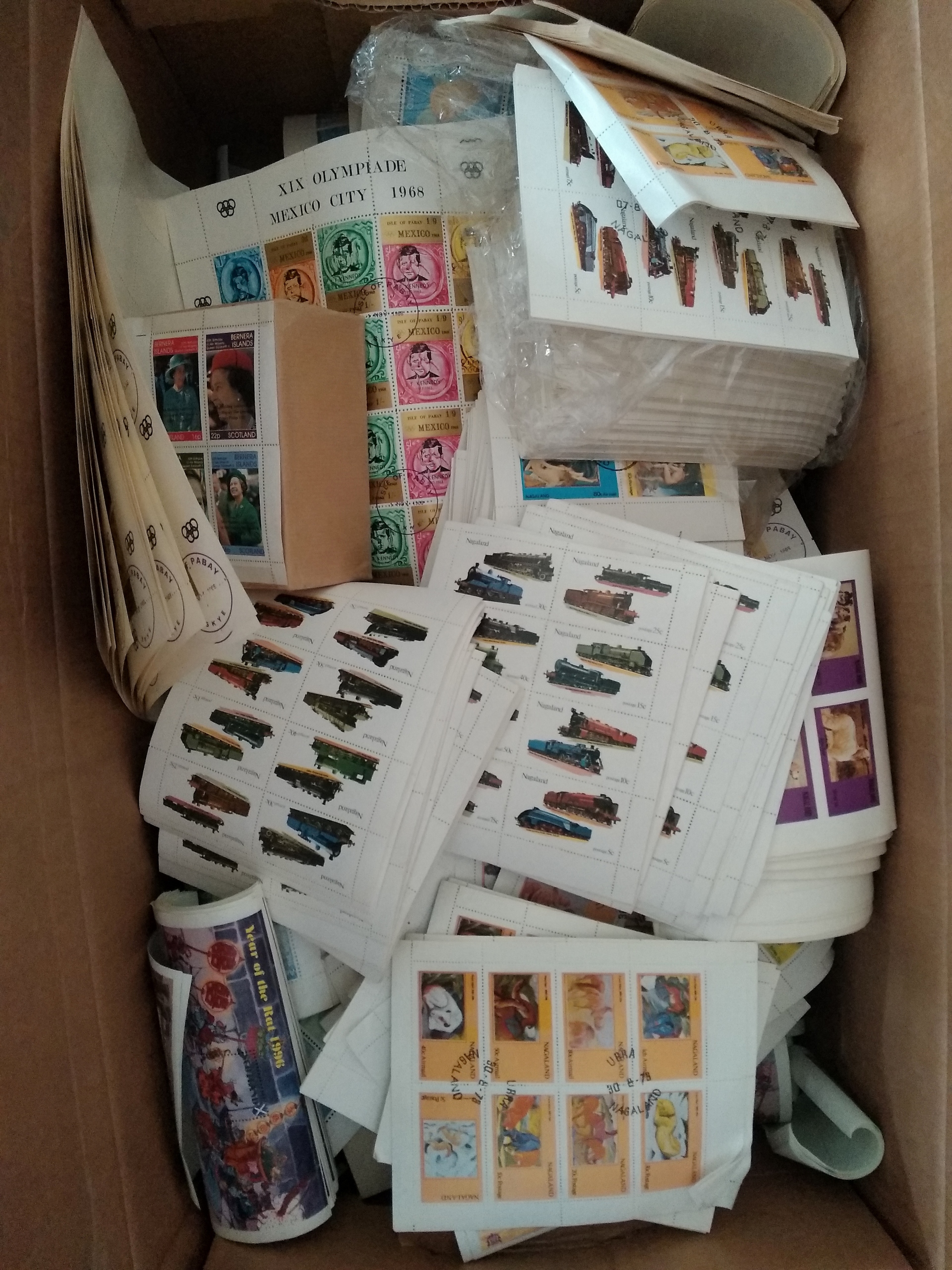 Britain. Accumulation ★★/⊙ in removal box. Scotland, Bogus issues in M/S and sheets. Fine quality. Approx. 20 kg. (1000´s)