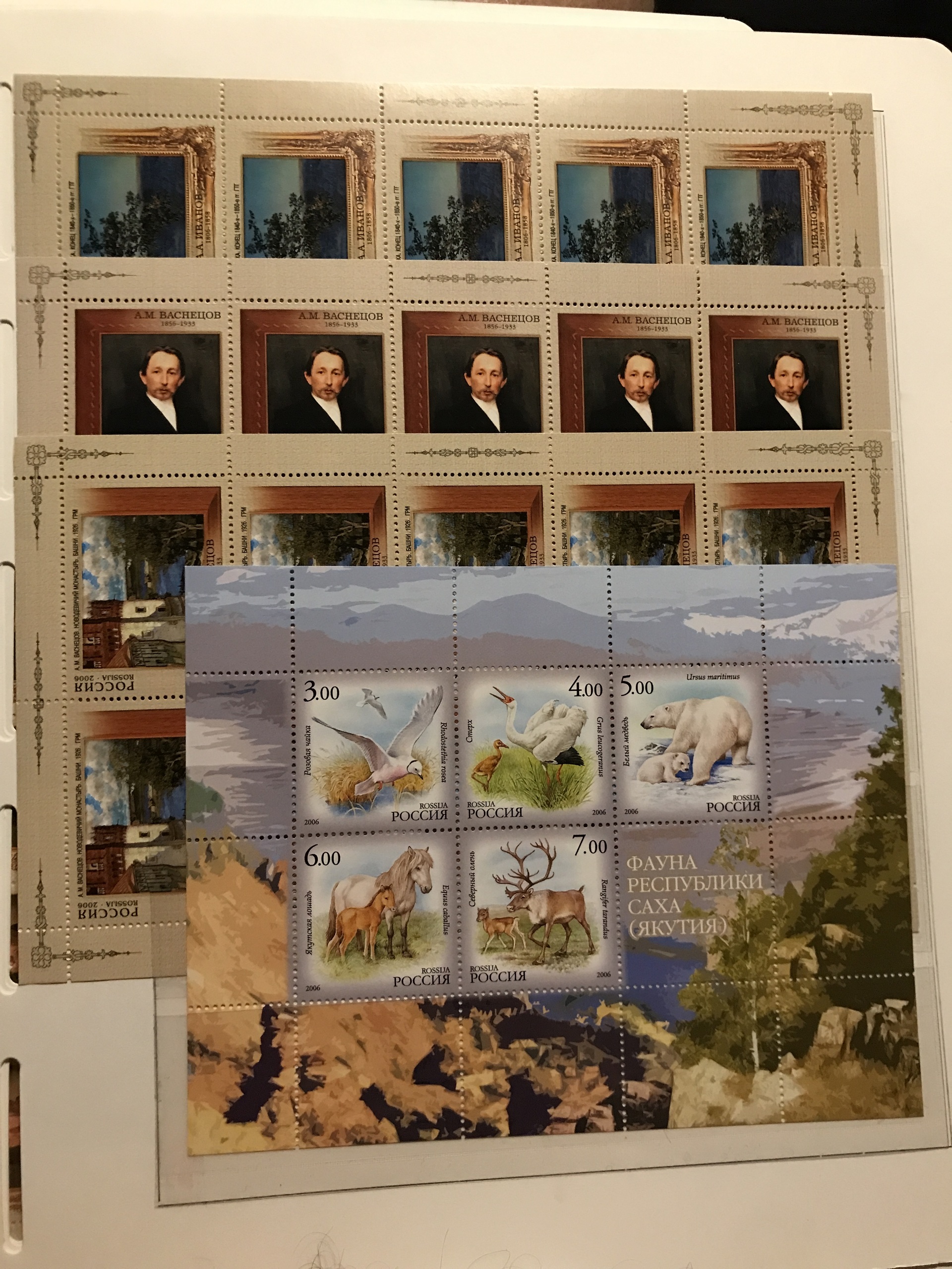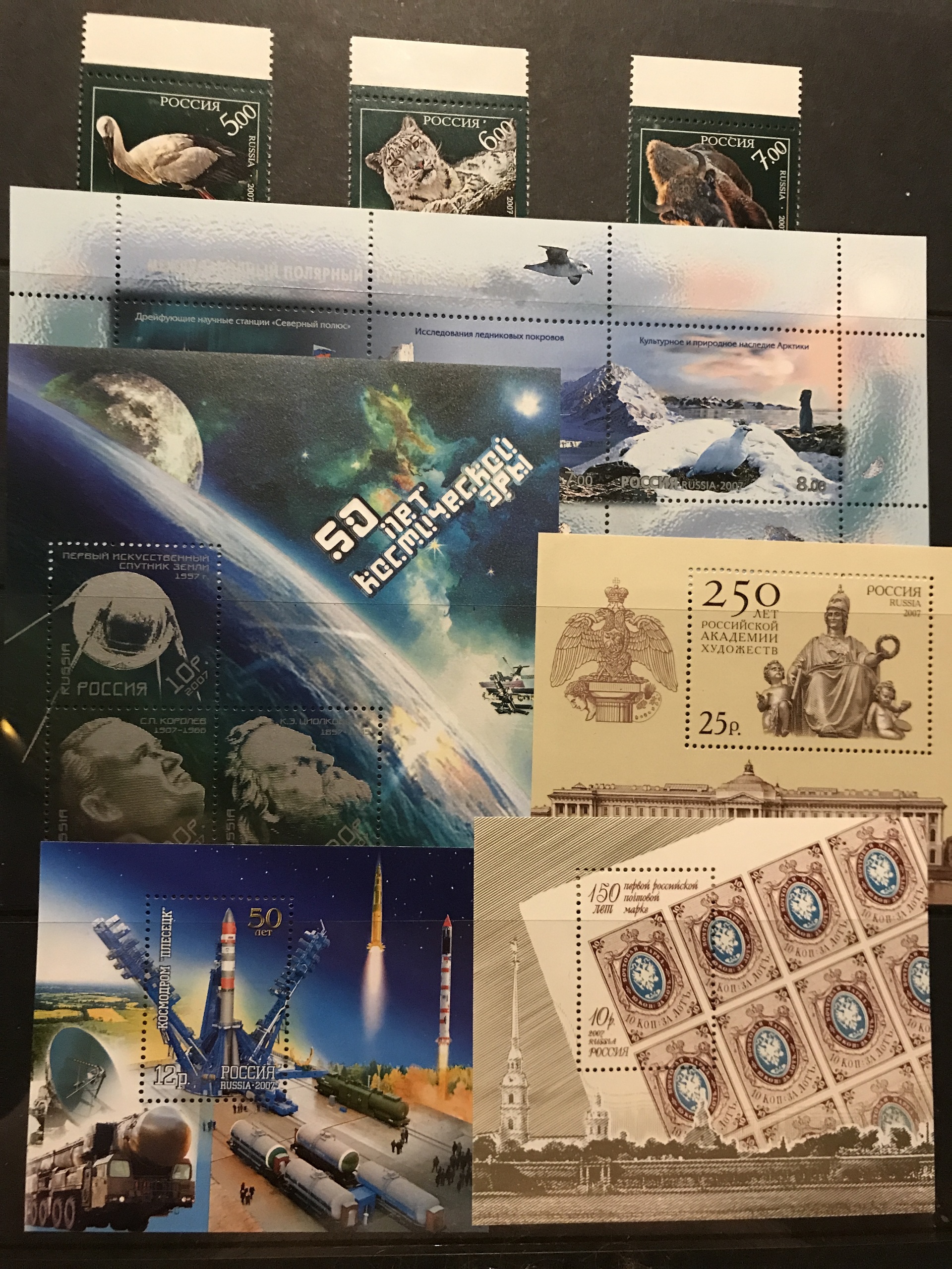Russia. ★★. Collection 1988–2009 in binder + leaves incl. e.g. Mi976–80, several souvenir sheets and blocks, etc. Mi approx. 1950 Euro. Please see a selection of scans at www.philea.se.