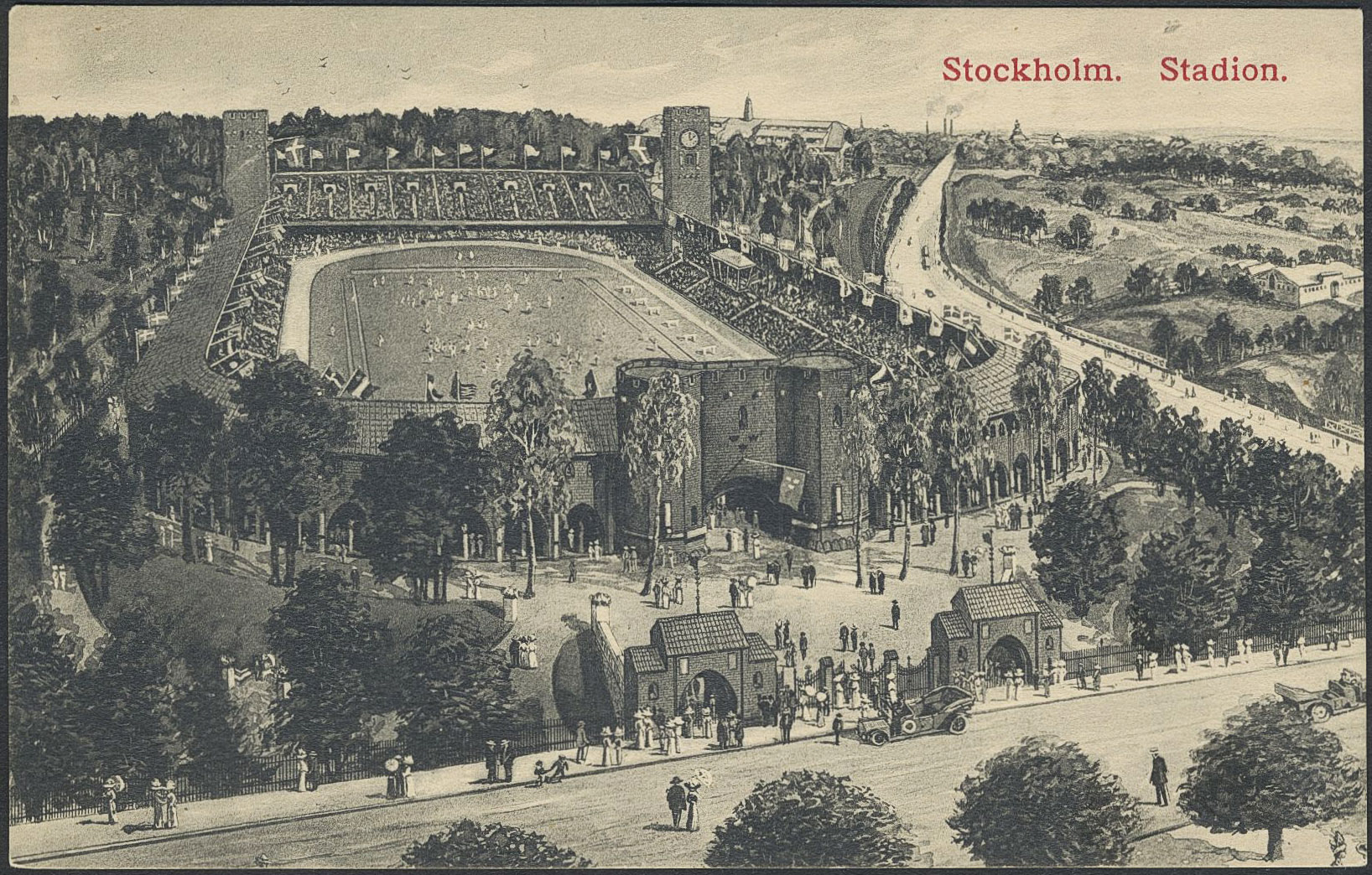 Sweden. Facit 79, A county. SVENSKA SPELEN STOCKHOLM 5 15.7.16. Picture postcard 'Stockholm. Stadion'. Postal: 1200:-