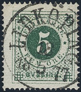 Sweden. Facit 19g used, 5 öre dark green, smooth print. EXCELLENT cancellation LIDKÖPING 18.5.1877.
