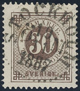 Sweden. Facit 47a used, 30 öre olivish brown. Superb cancellation STOCKHOLM Ö M 19.11.1887.