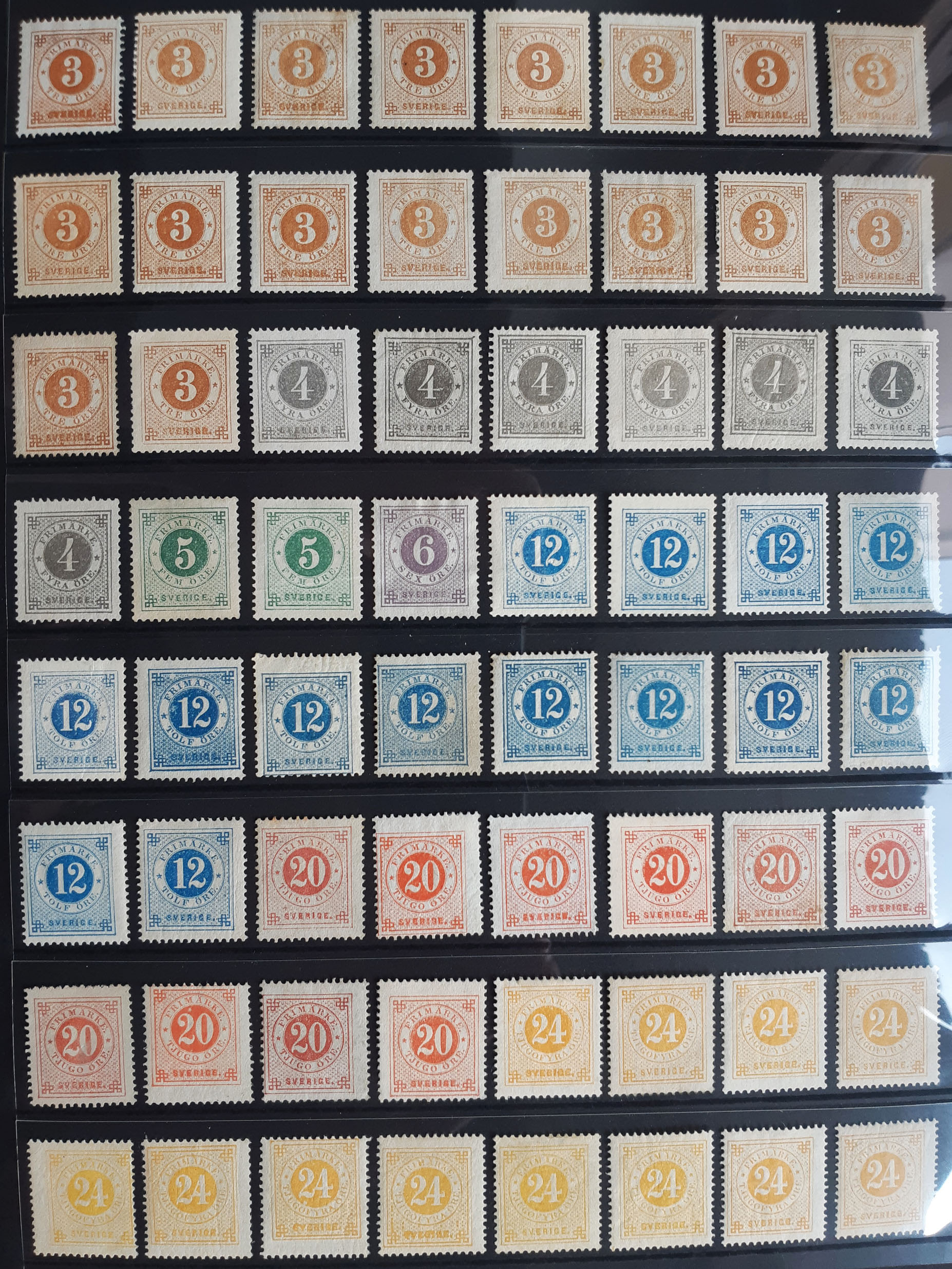 Sweden. Collection ★/(★) CIRCLE TYPE 13. Several denominations represented incl. different shades – five stamps with opionions (shades) by O.P. Somewhat mixed quality, but also fine, well centered stamps. A very few MNH. High catalogue value. Please inspect. (64)