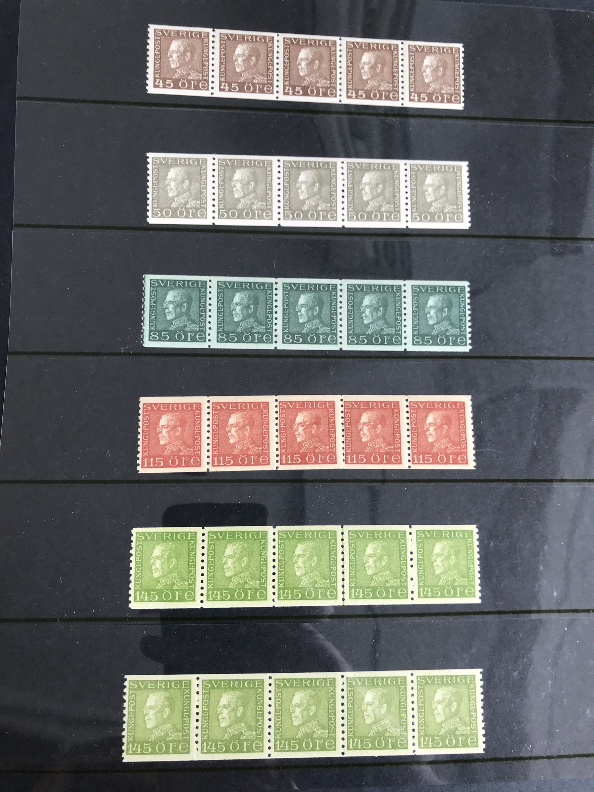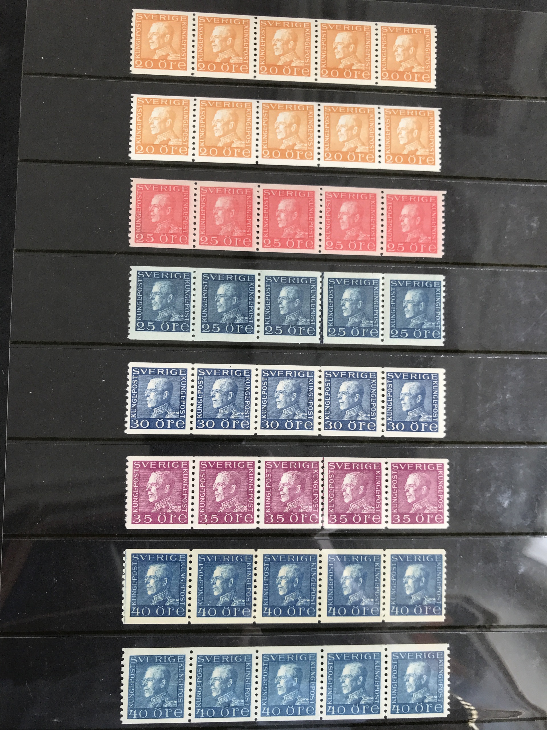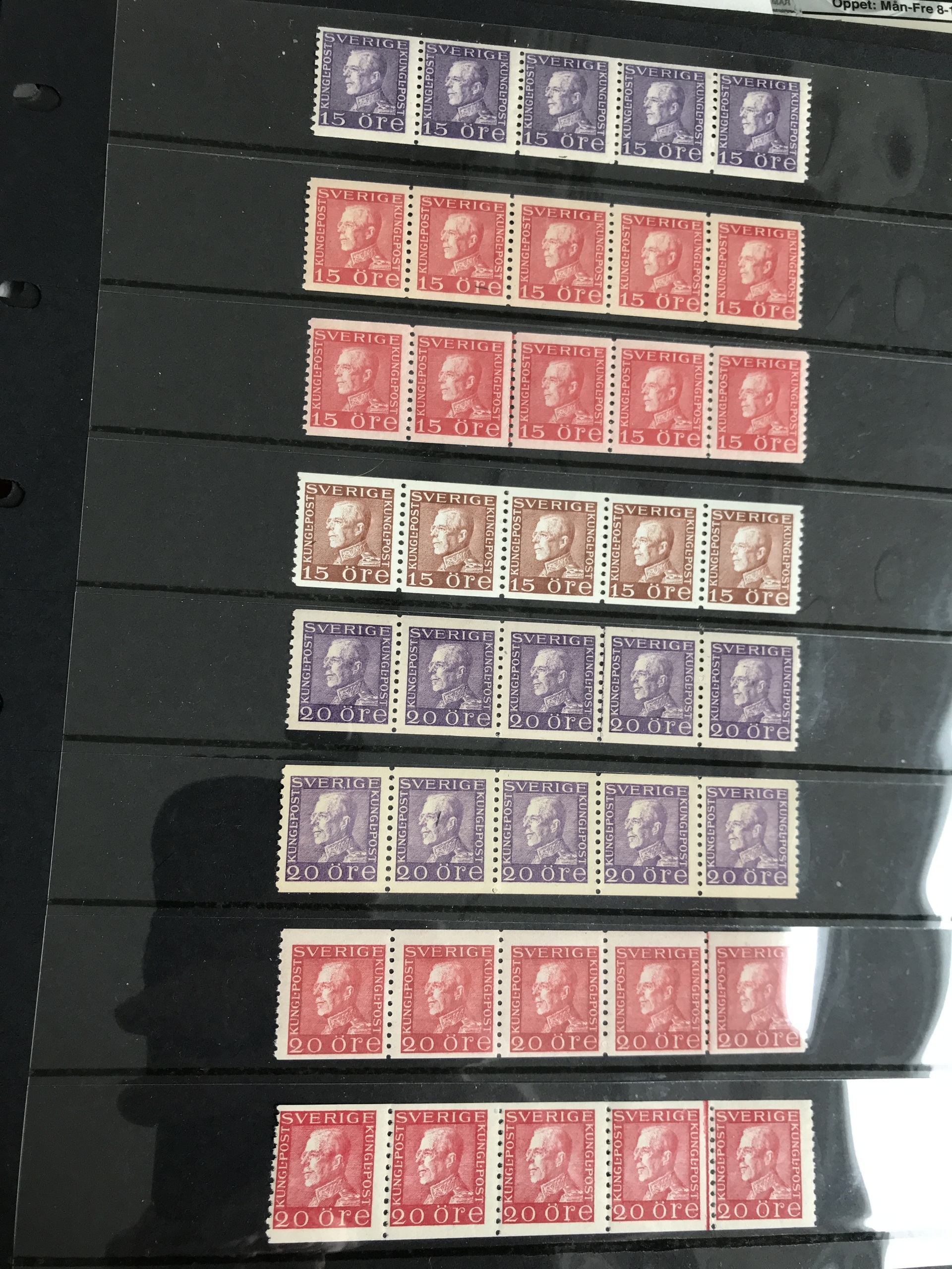 Sweden. ★★. Selection with 22 strips-of five GV Left profile incl. some different shades. F ca. 26400. The entire lot is presented at www.philea.se. Excellent quality.