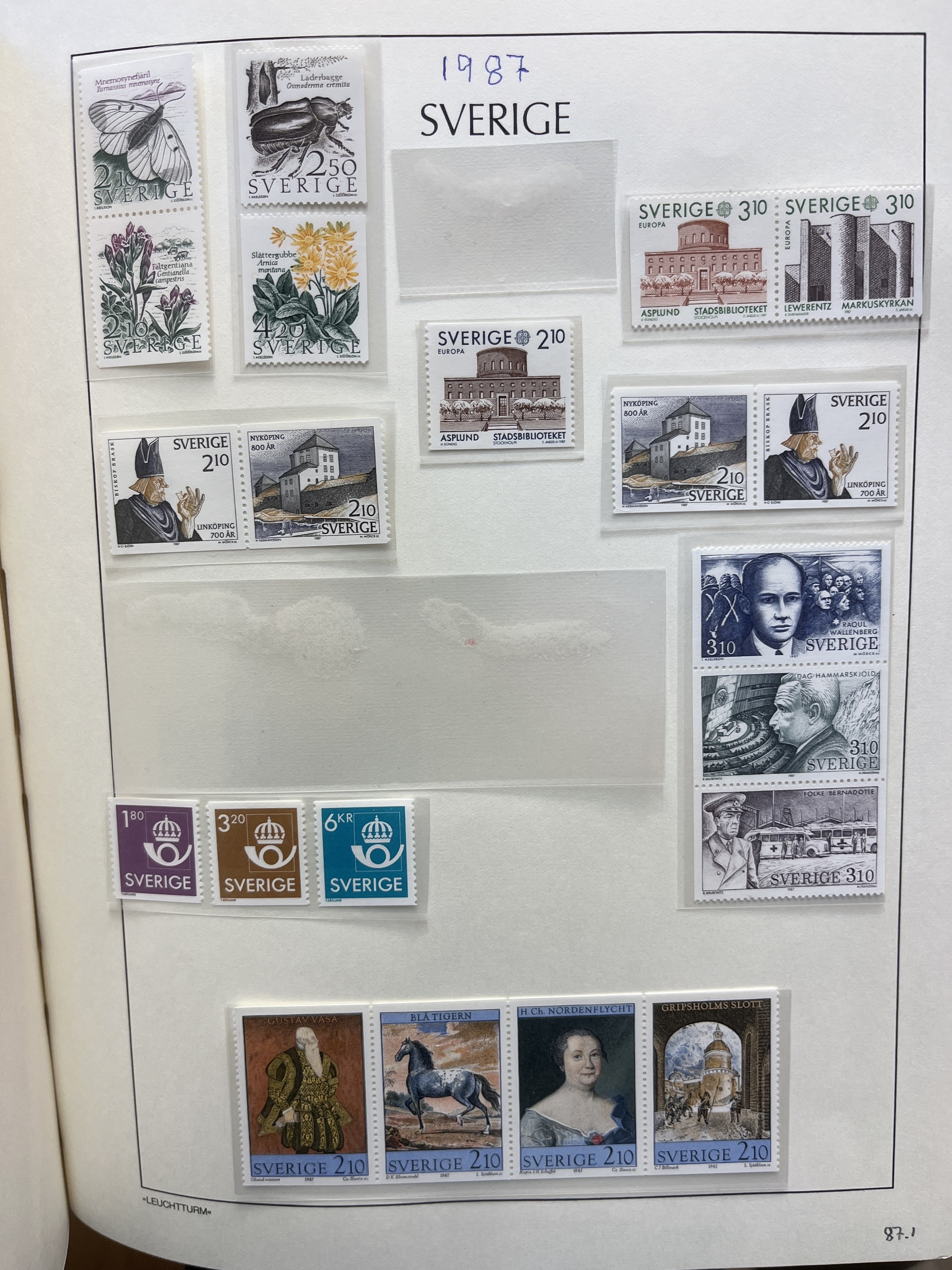 Sweden. Collection ★★/★ ca. 1890–1989 in Leuchtturm album with stamp mounts. Please see a selection of scans at www.philea.se. Mostly good quality.