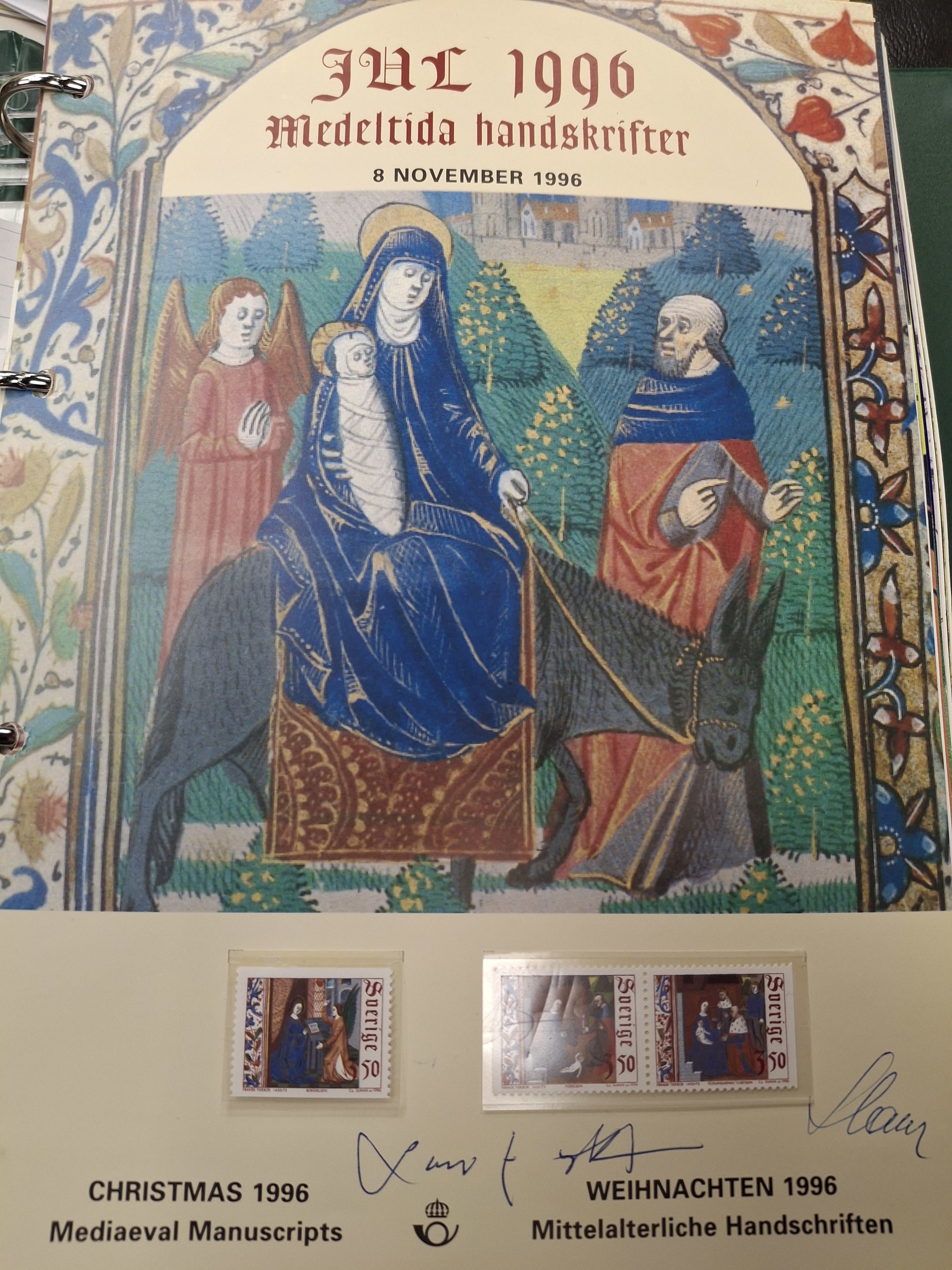 Sweden. Collection ★★ 1991–1996 in Leuchtturm album. Thematic sheets. Most with autographs by engravers and artists, e.g. Slania. Please see a selection of scans at www.philea.se. Excellent quality.