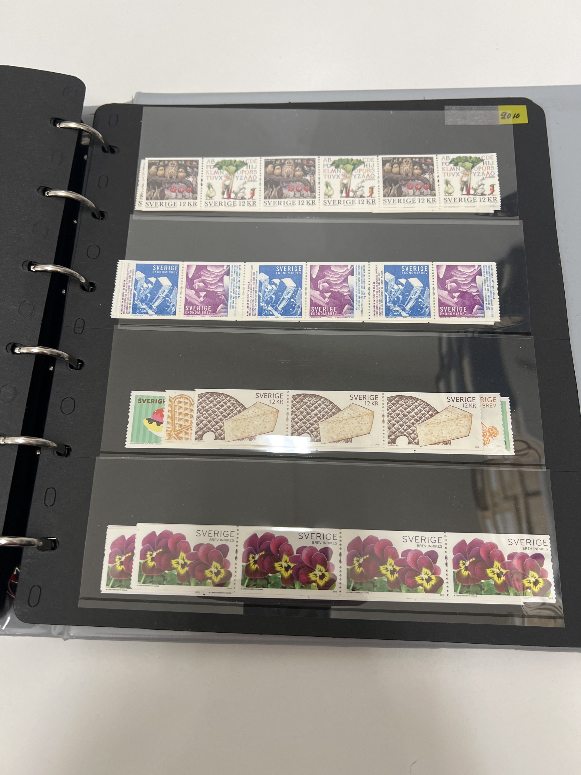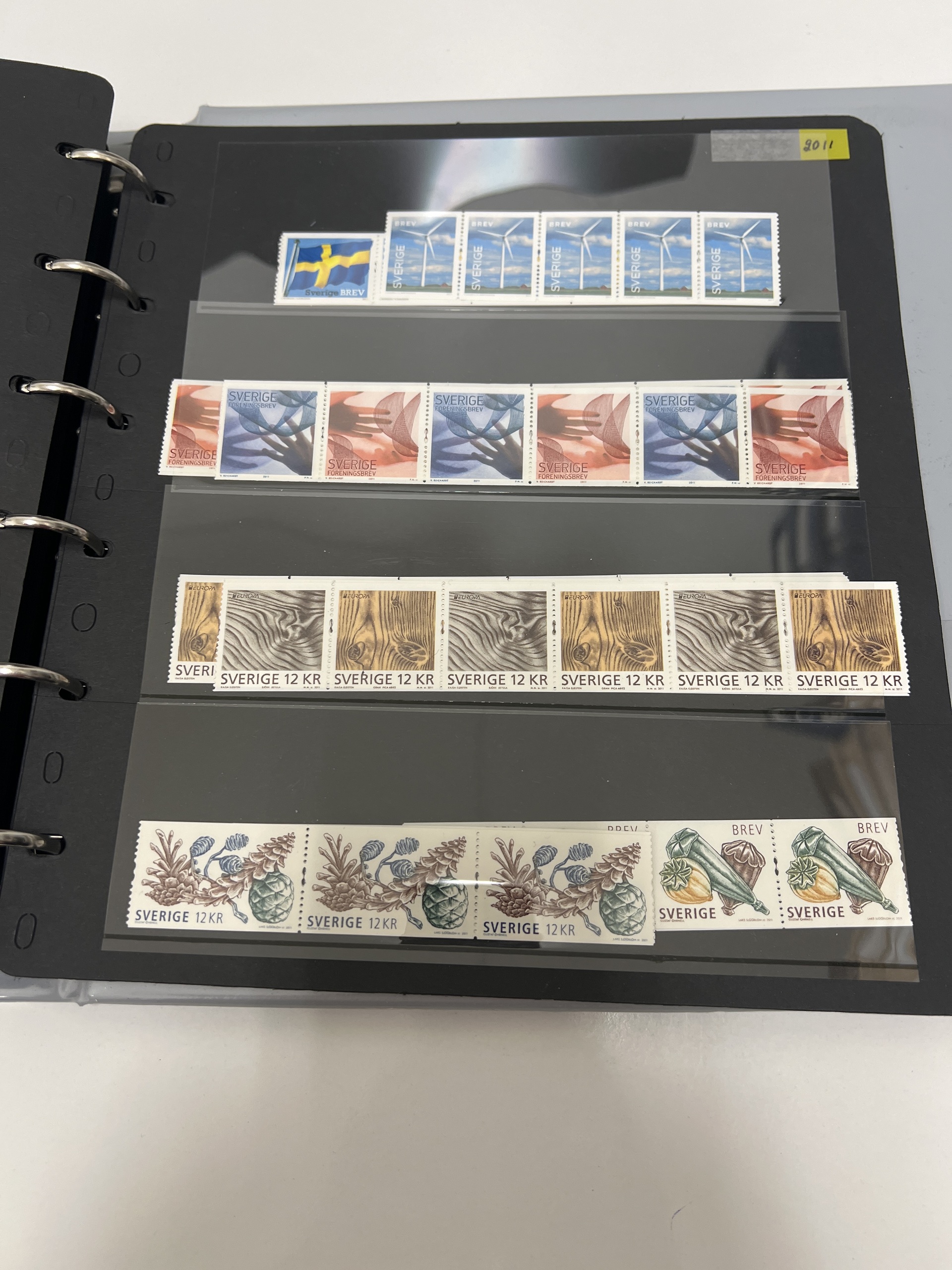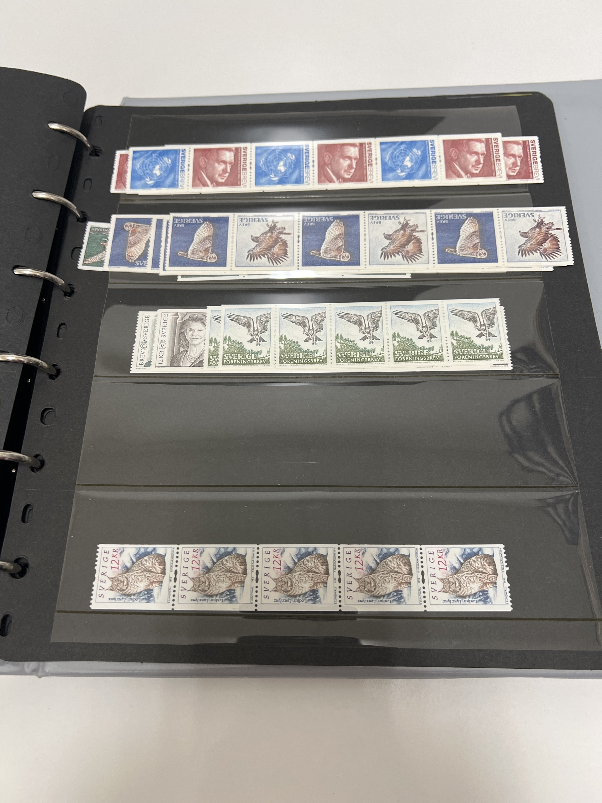 Sweden. Face value, accumulation 1990s–2011 in visir album in booklets, blocks and strips of five. Total franking value almost 25000, including 534 'Sverige BREV', and 50 discount stamps. Most of the franking value (around 65%) on strips, up to 80 stamps of each. Excellent quality. (100s)
