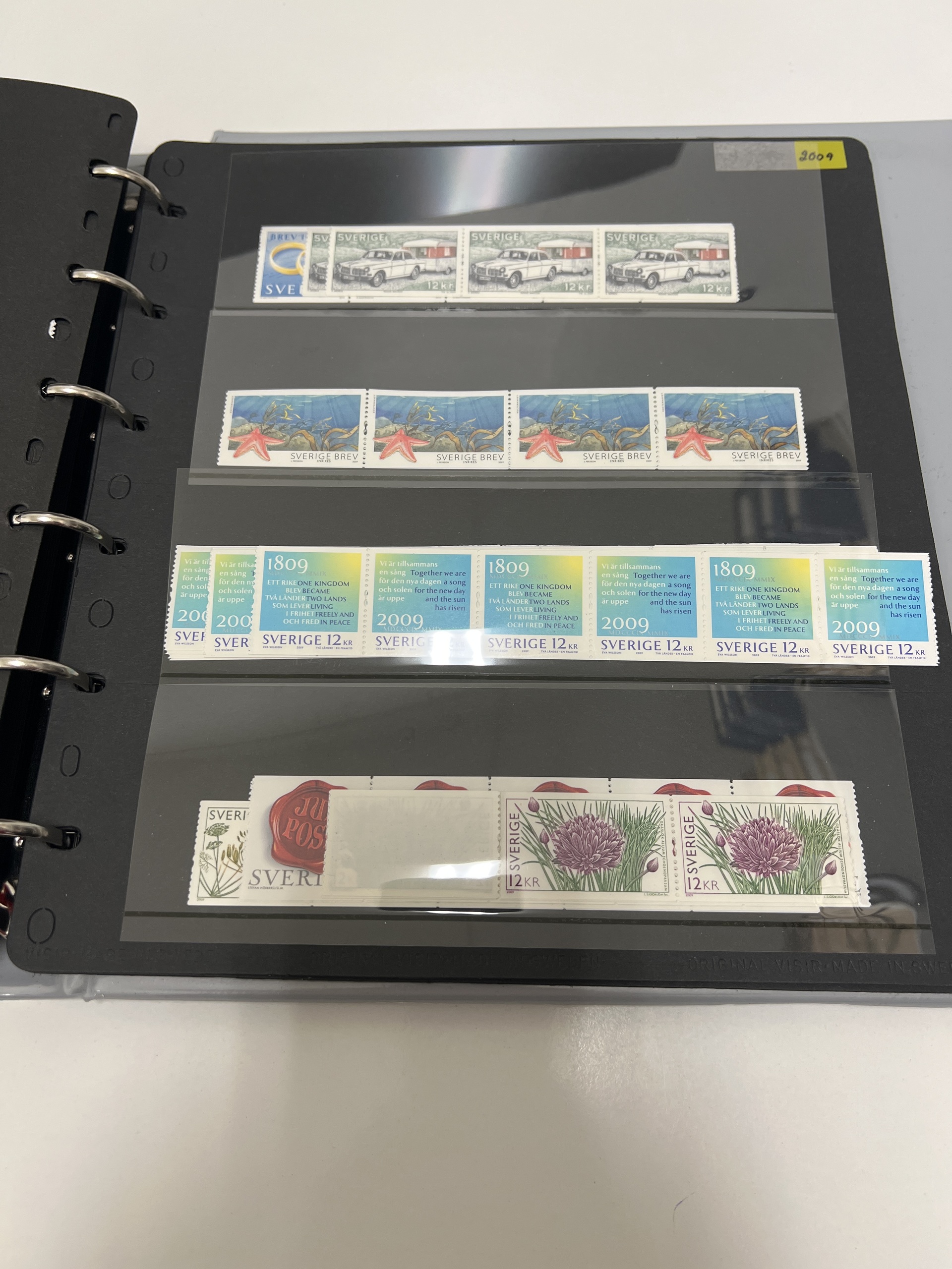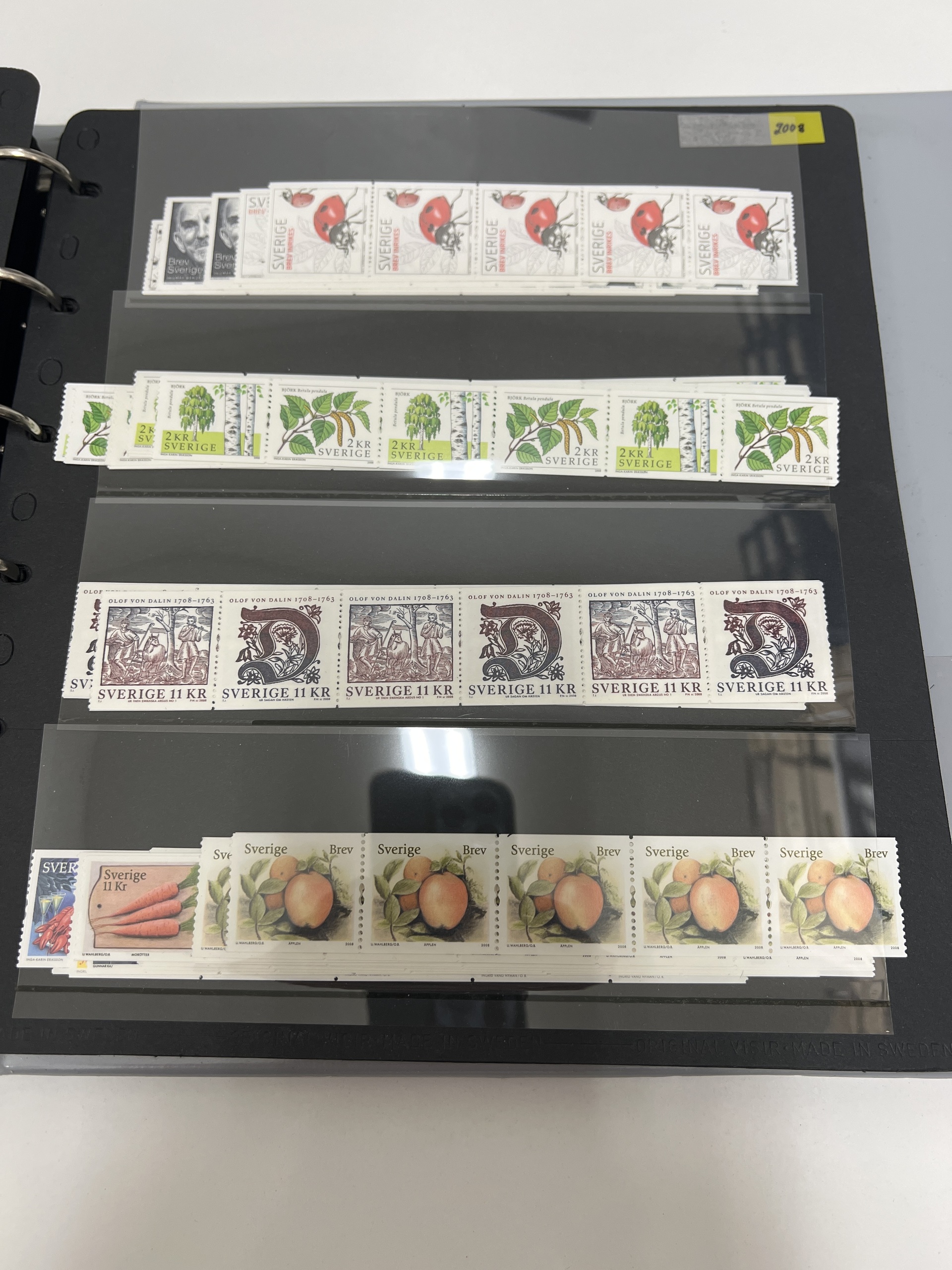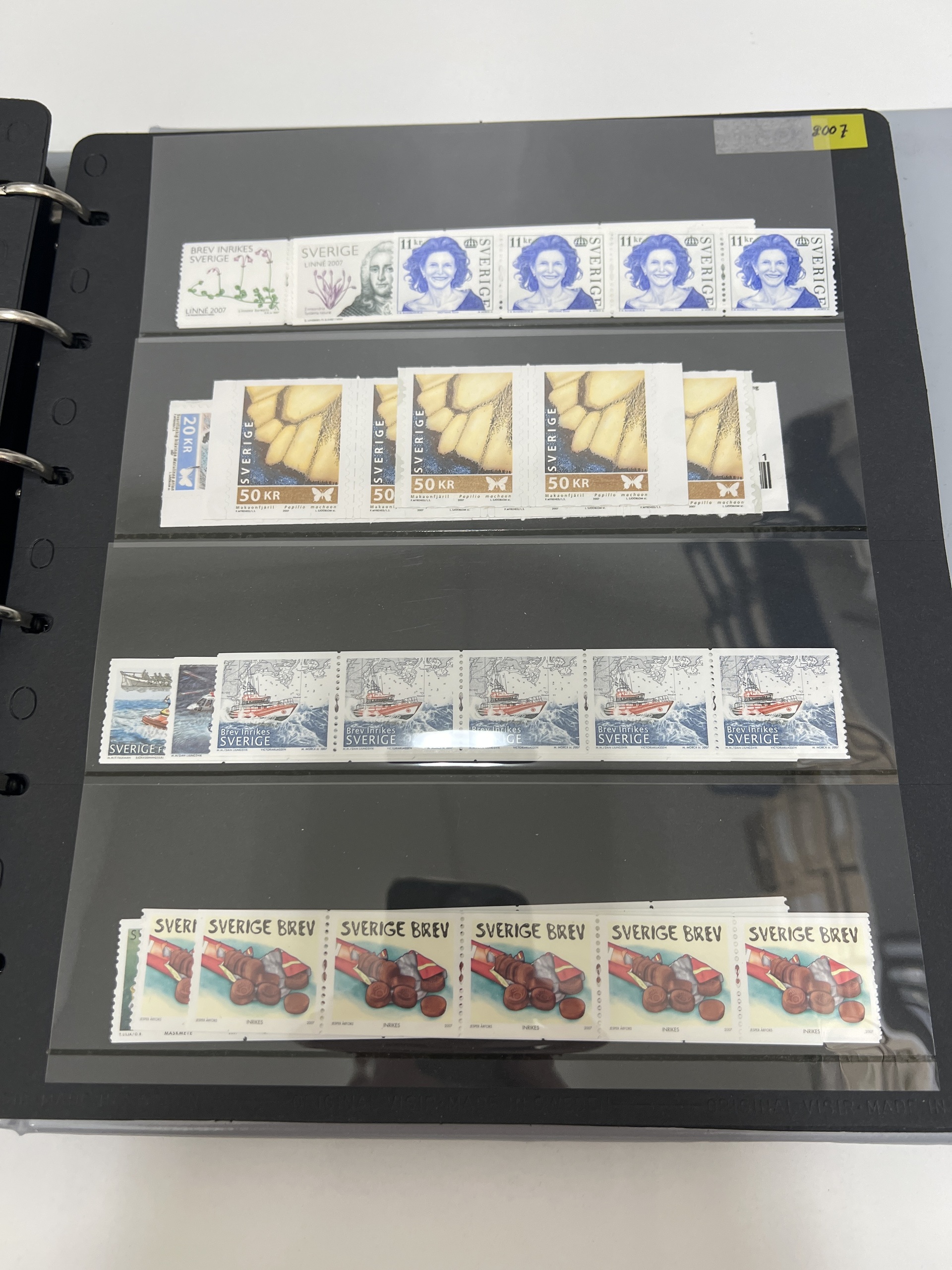 Sweden. Face value, accumulation 1990s–2011 in visir album in booklets, blocks and strips of five. Total franking value almost 25000, including 534 'Sverige BREV', and 50 discount stamps. Most of the franking value (around 65%) on strips, up to 80 stamps of each. Excellent quality. (100s)