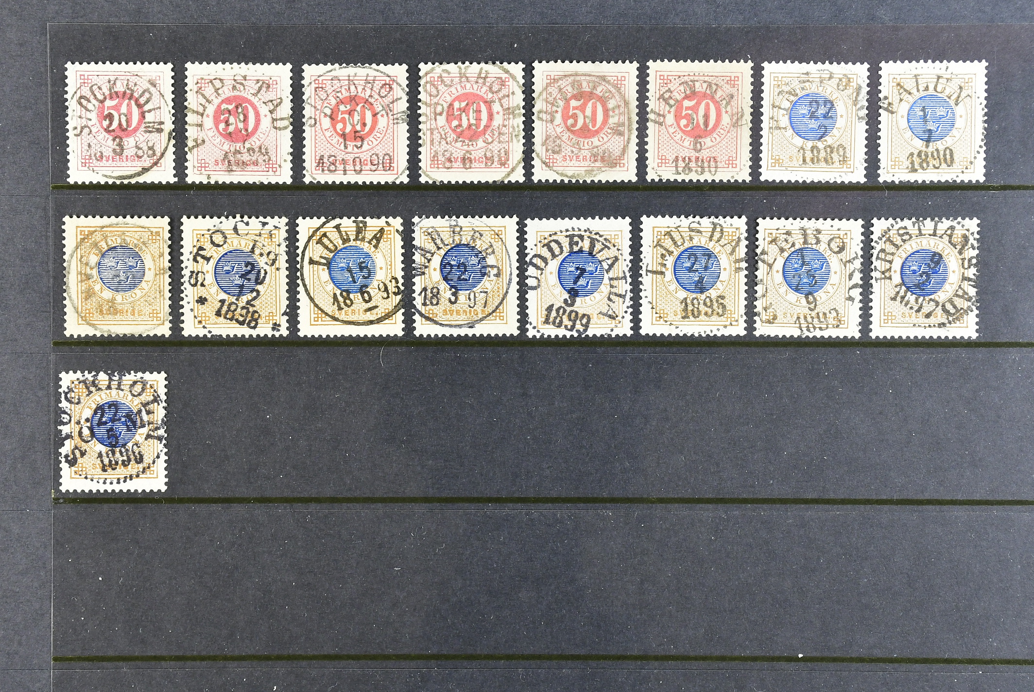 Sweden. Collection used CIRCLE TYPE PH on visir leaves. Wonderful selection almost exclusively with superb–EXCELLENT cancellations. A few signed by O.P. Please inspect. (145)