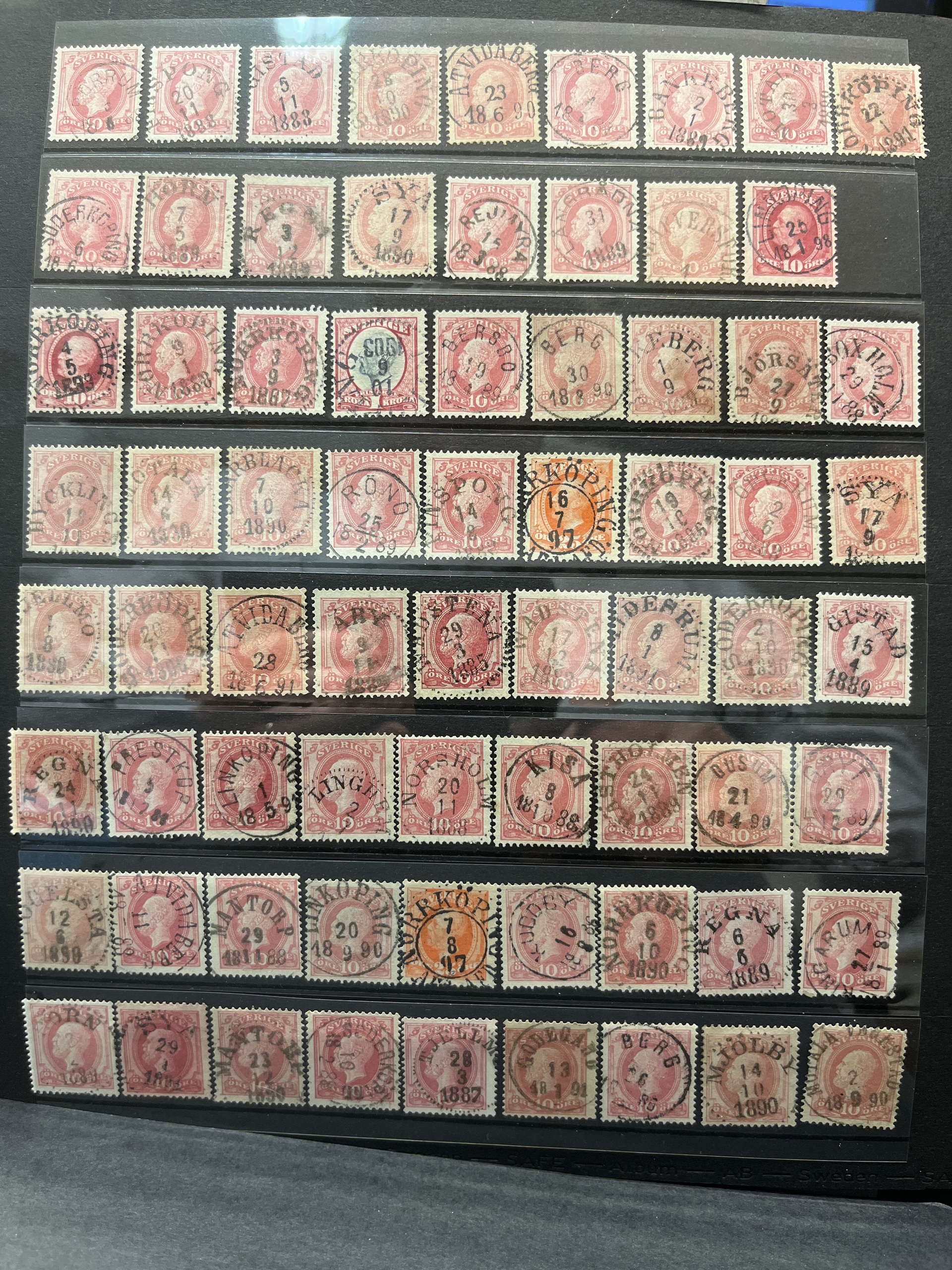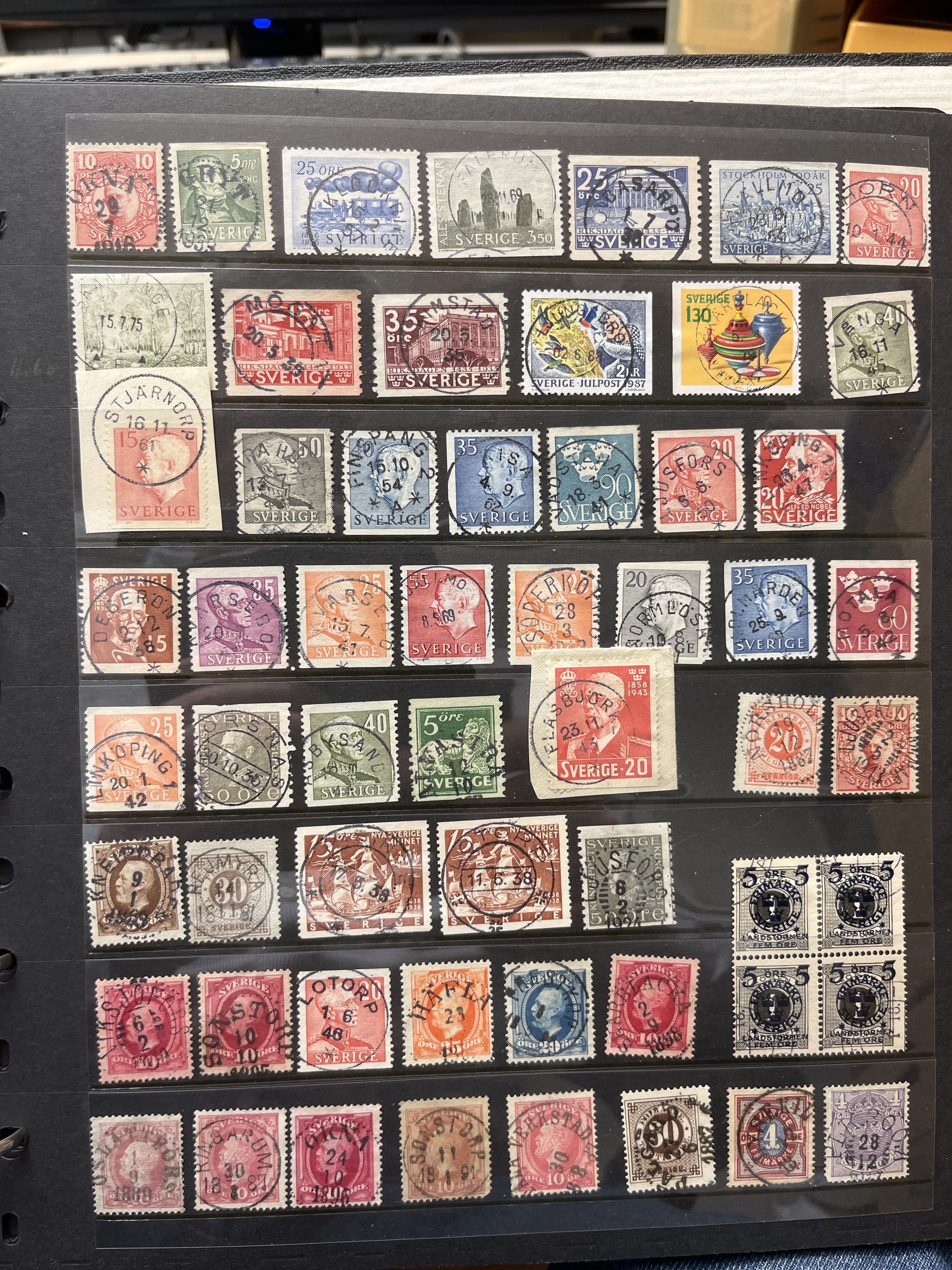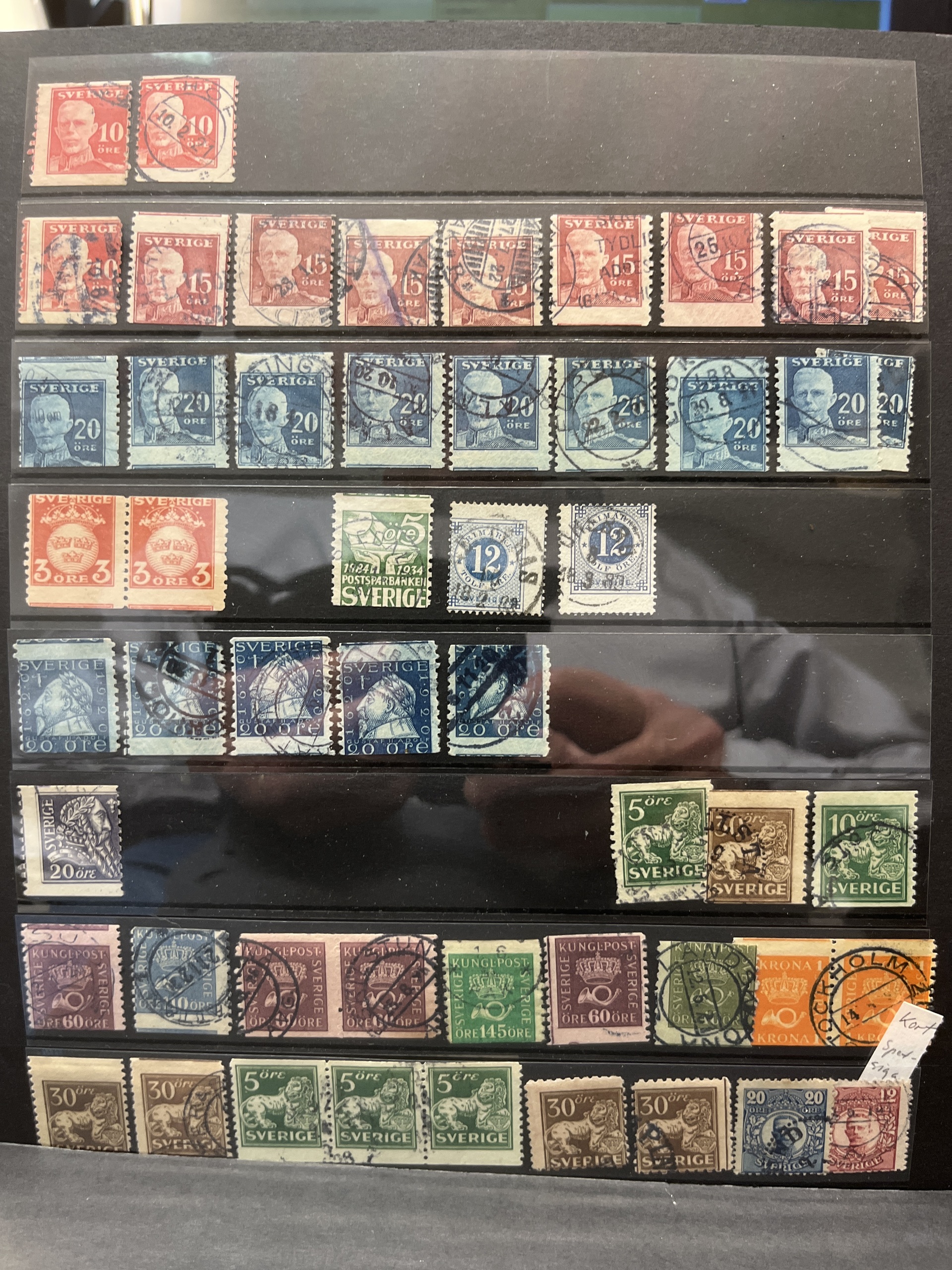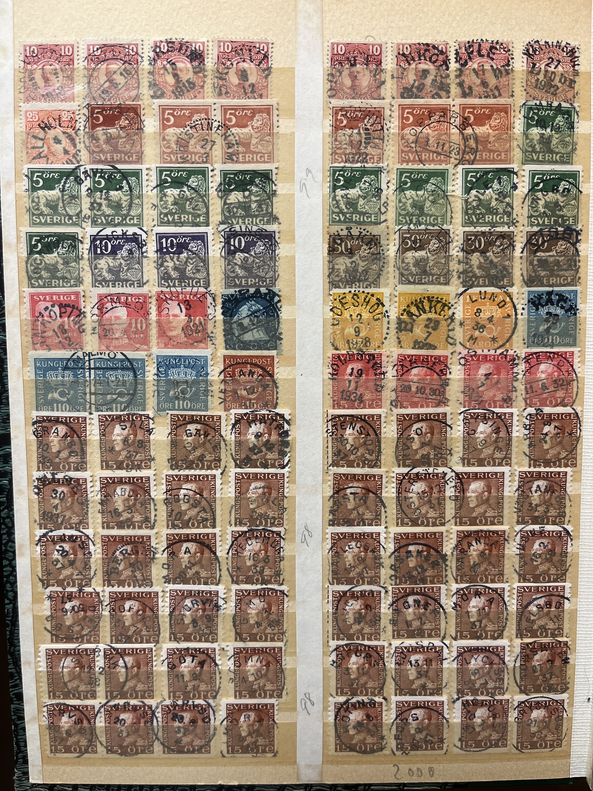 Sweden. Accumulation used in box with three albums and visir leaves. Many with nice canc. and variants also some Denmark.