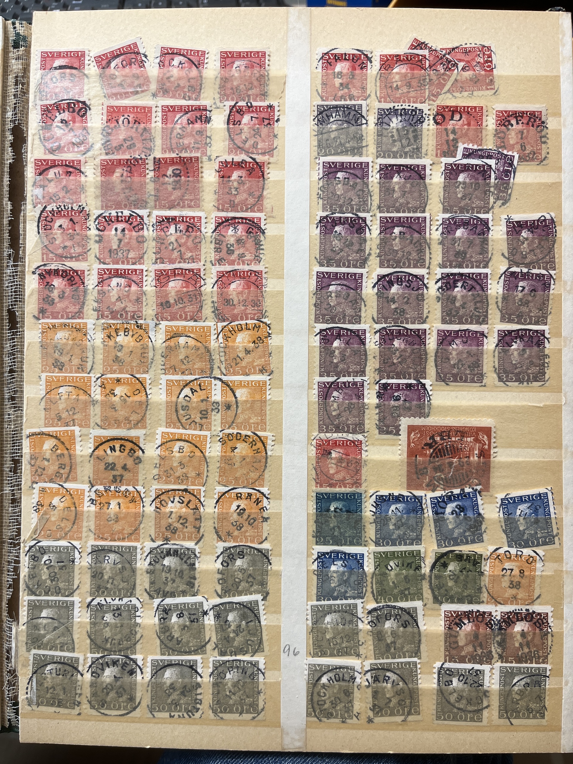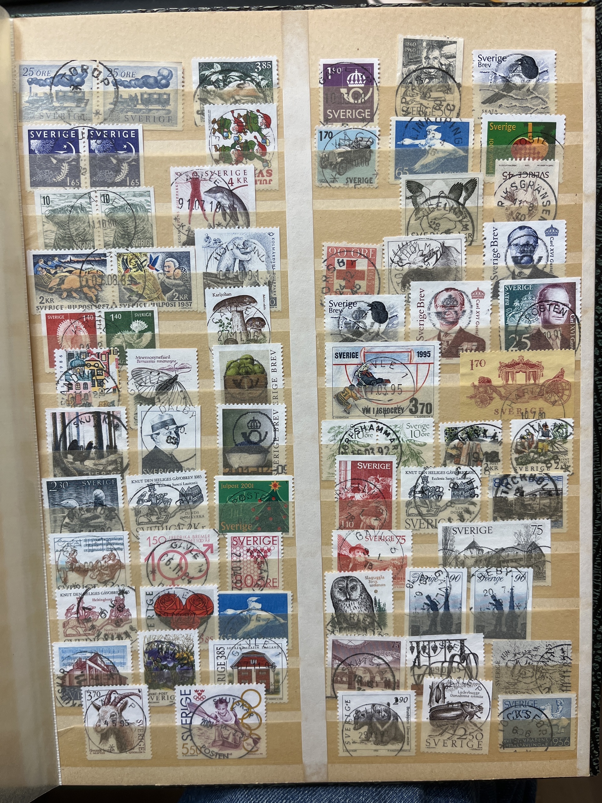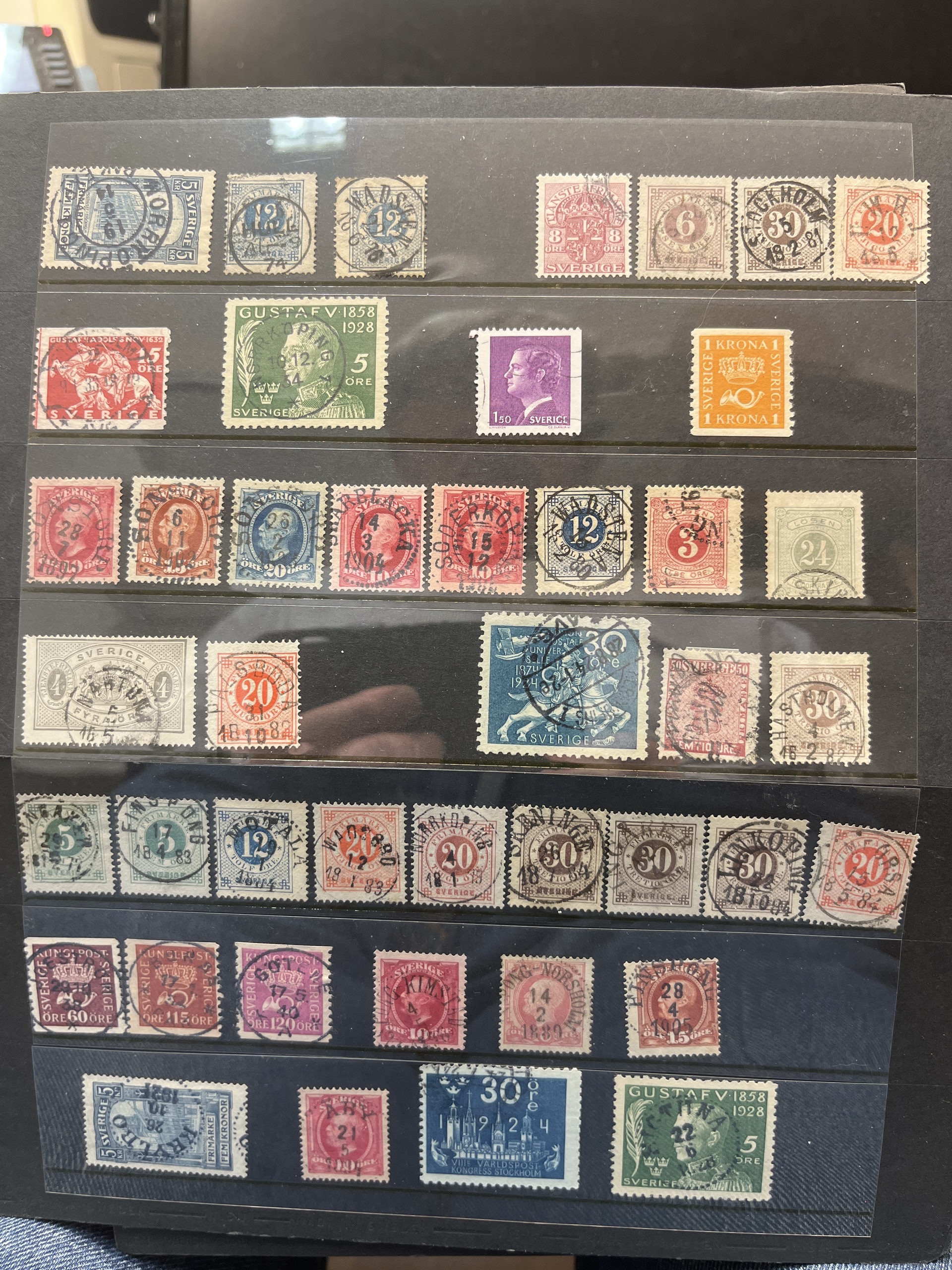 Sweden. Accumulation used in box with three albums and visir leaves. Many with nice canc. and variants also some Denmark.