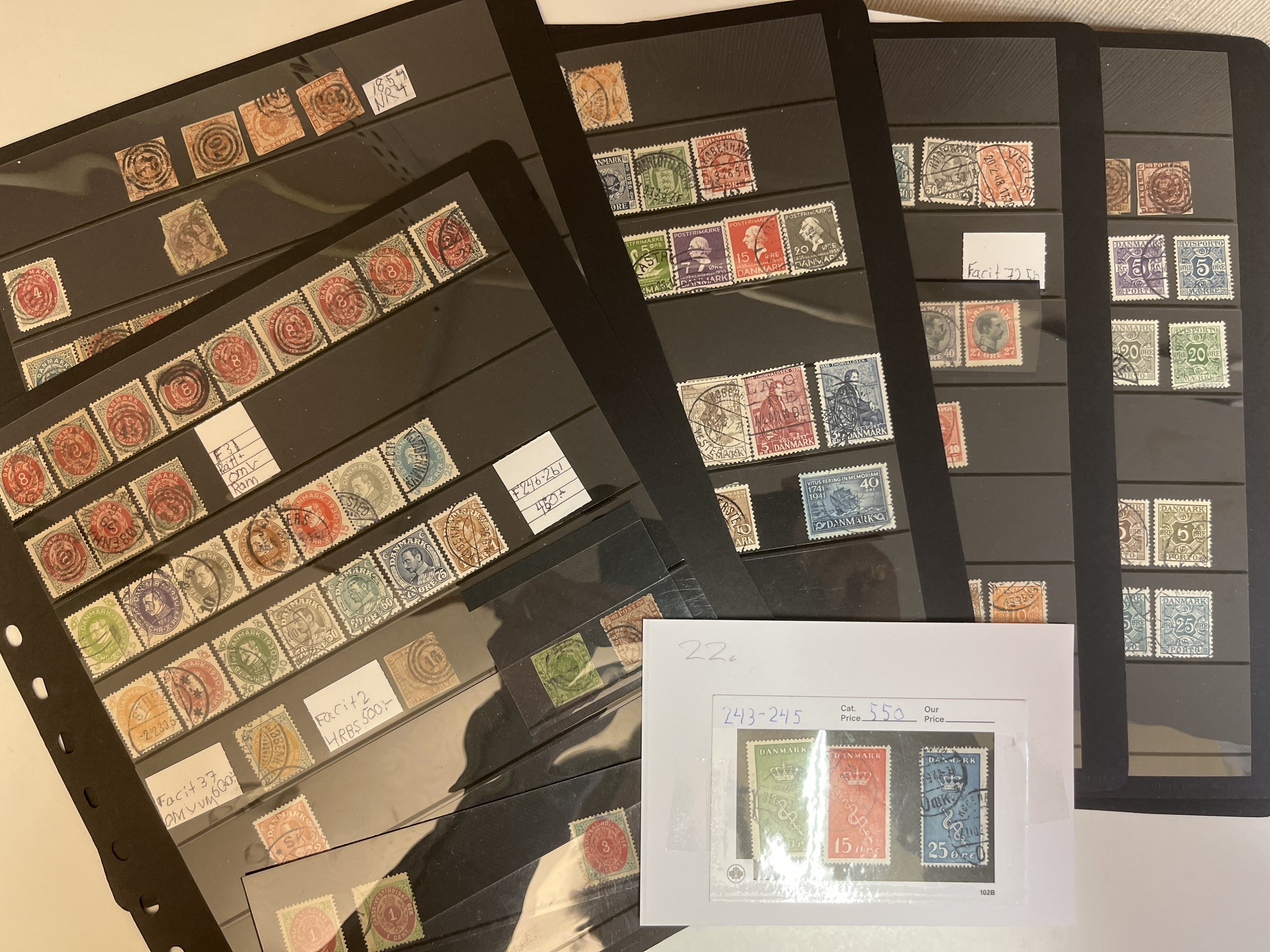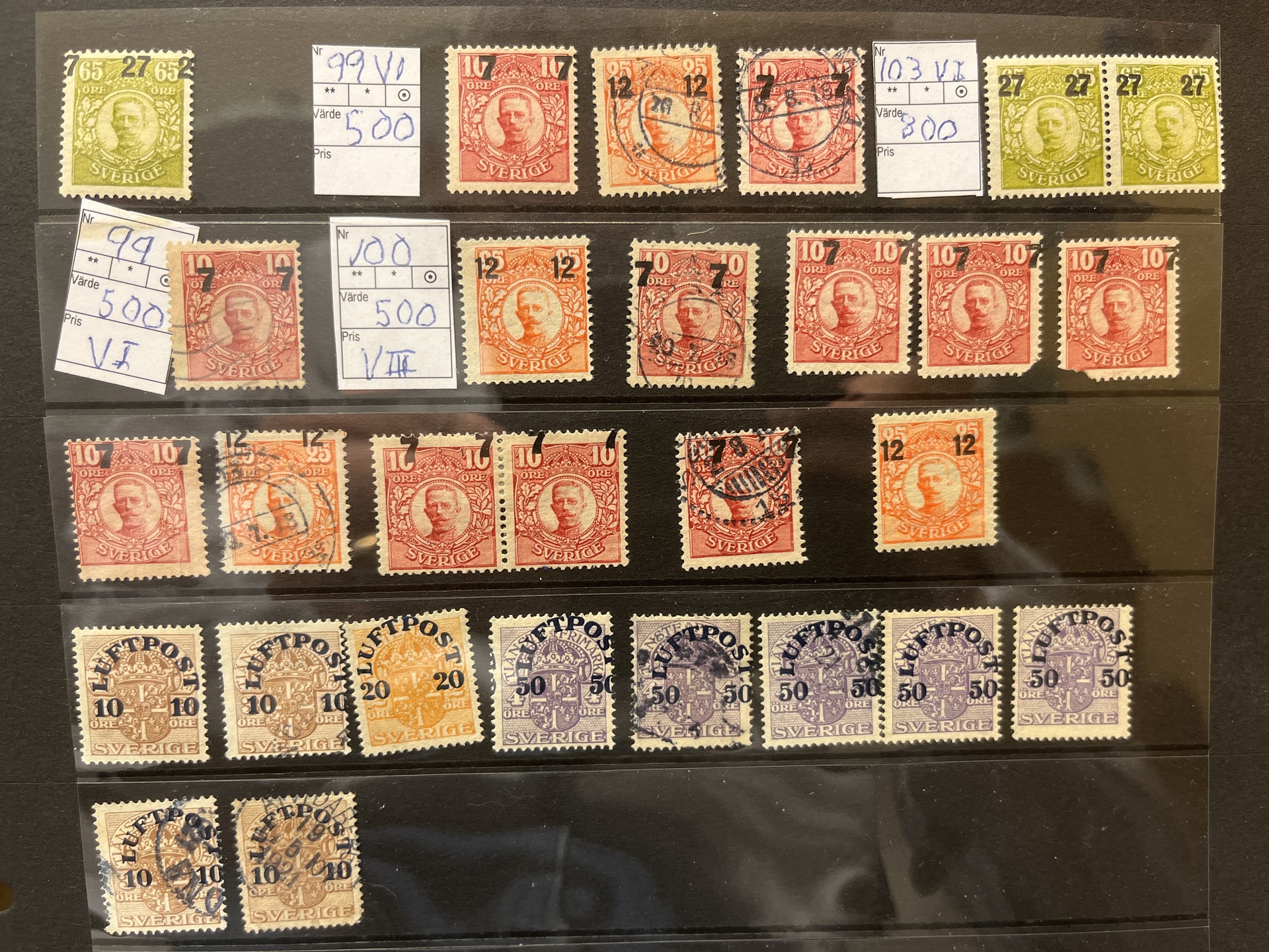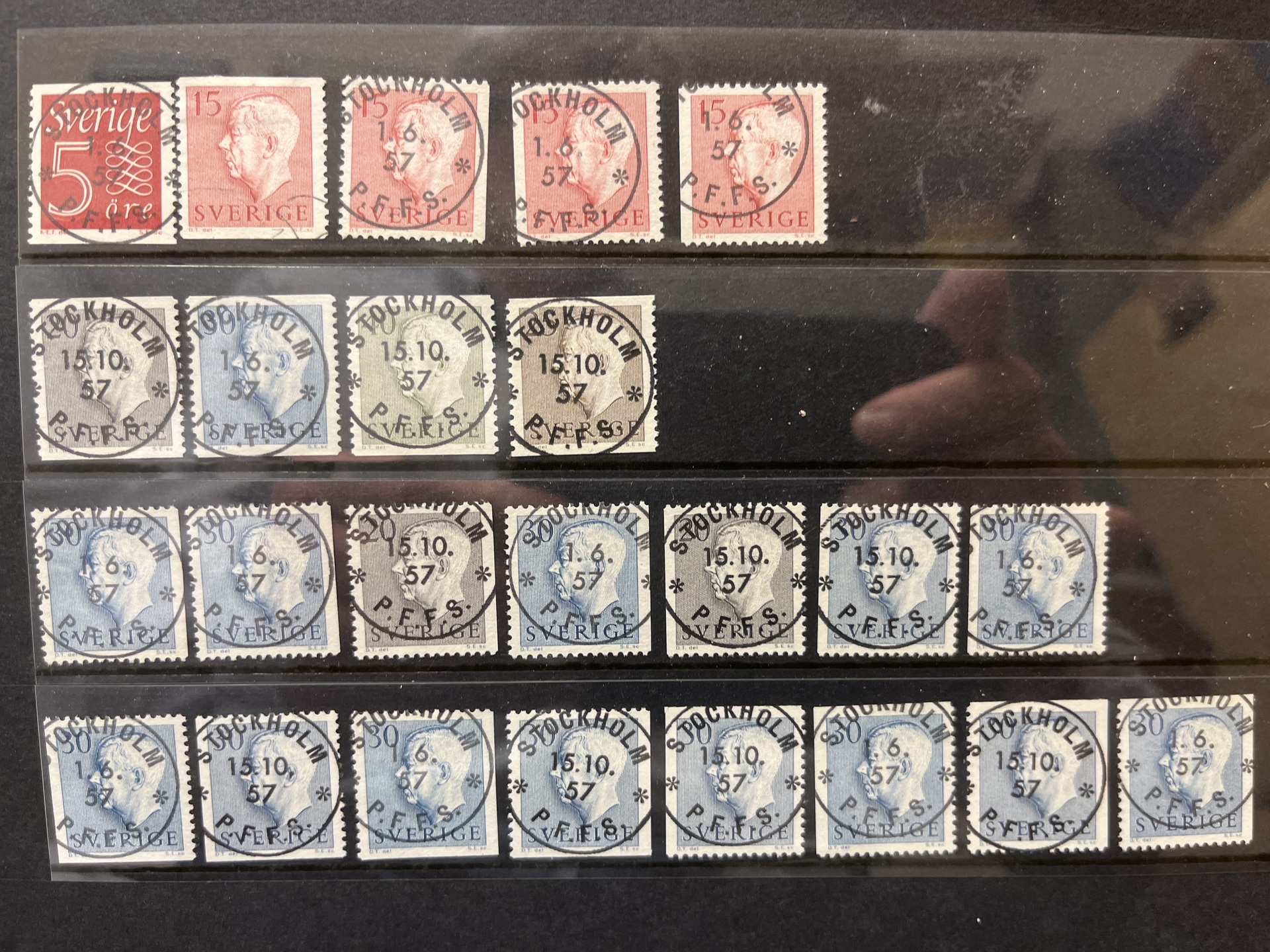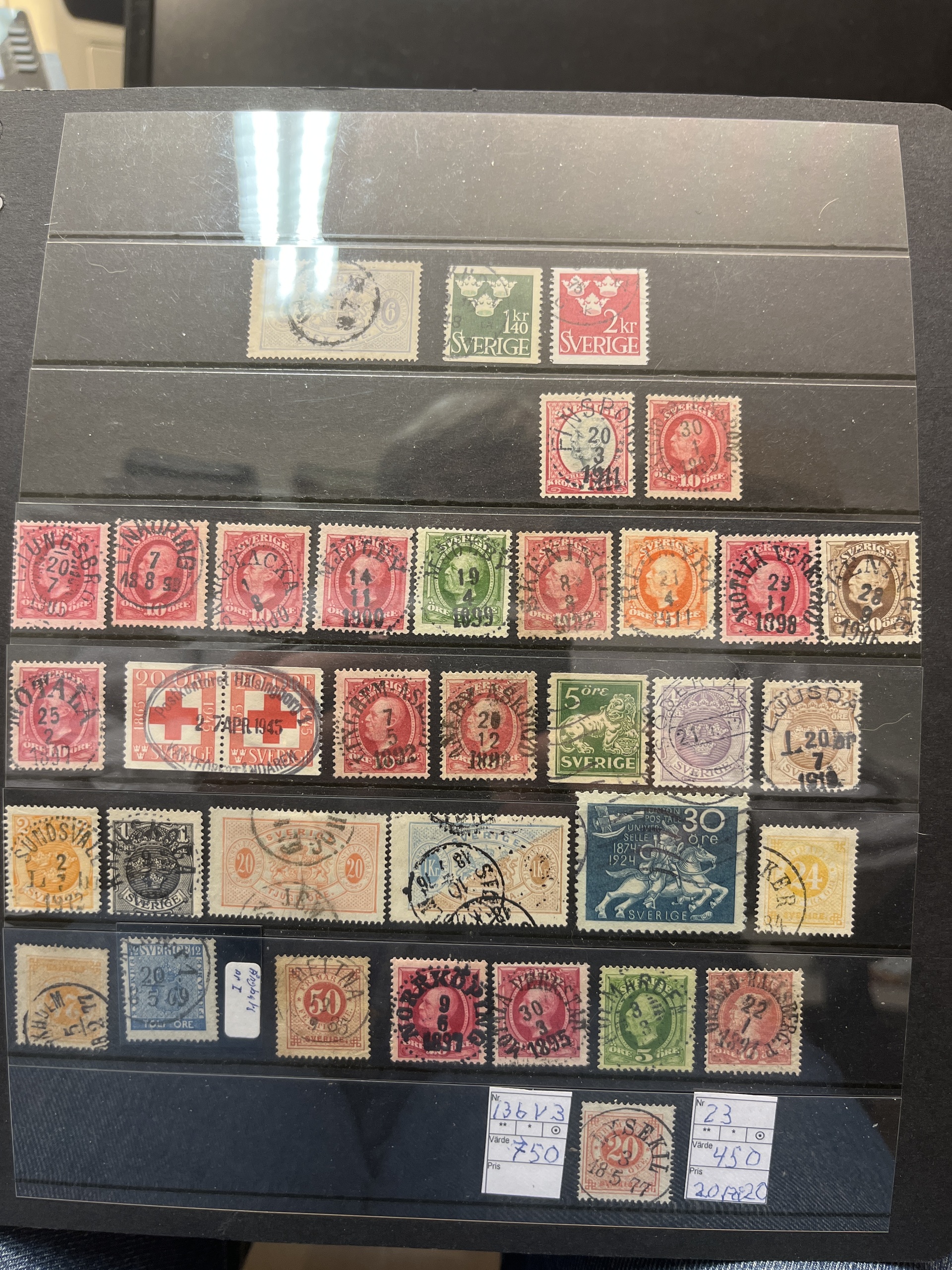 Sweden. Accumulation used in box with three albums and visir leaves. Many with nice canc. and variants also some Denmark.