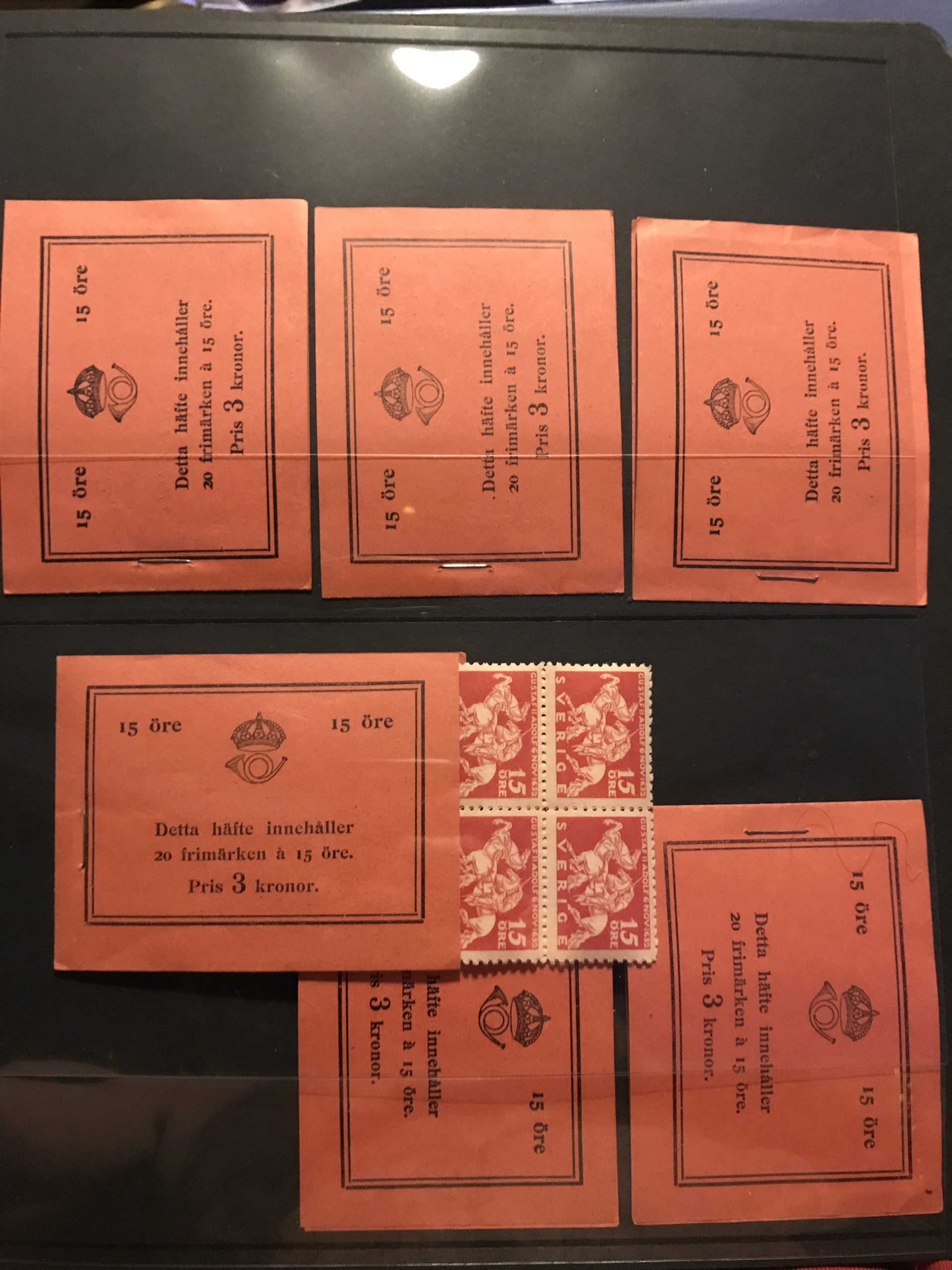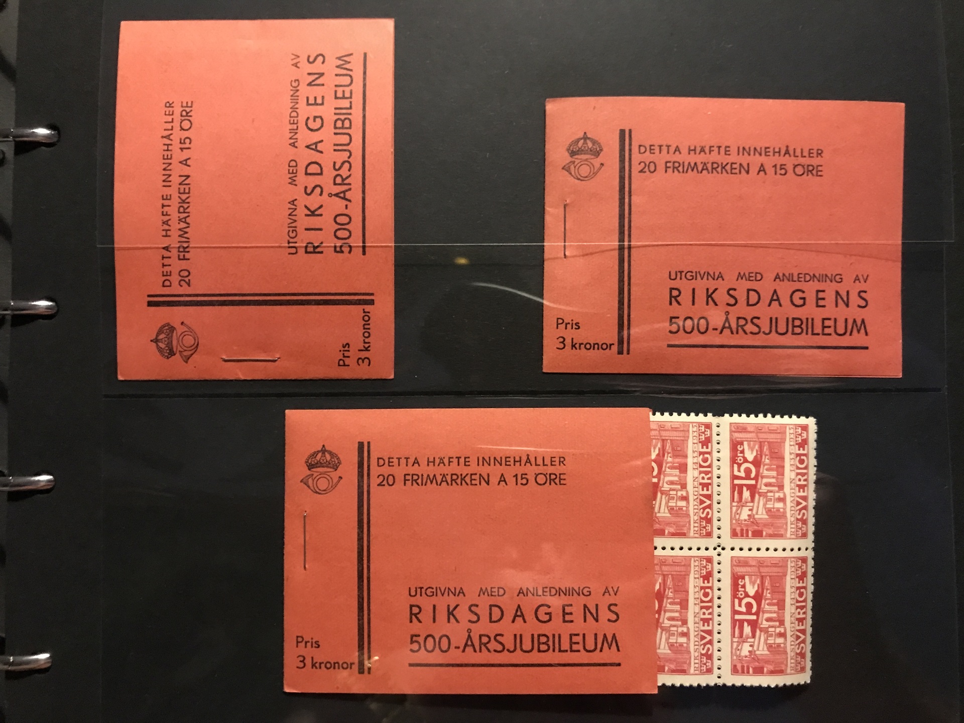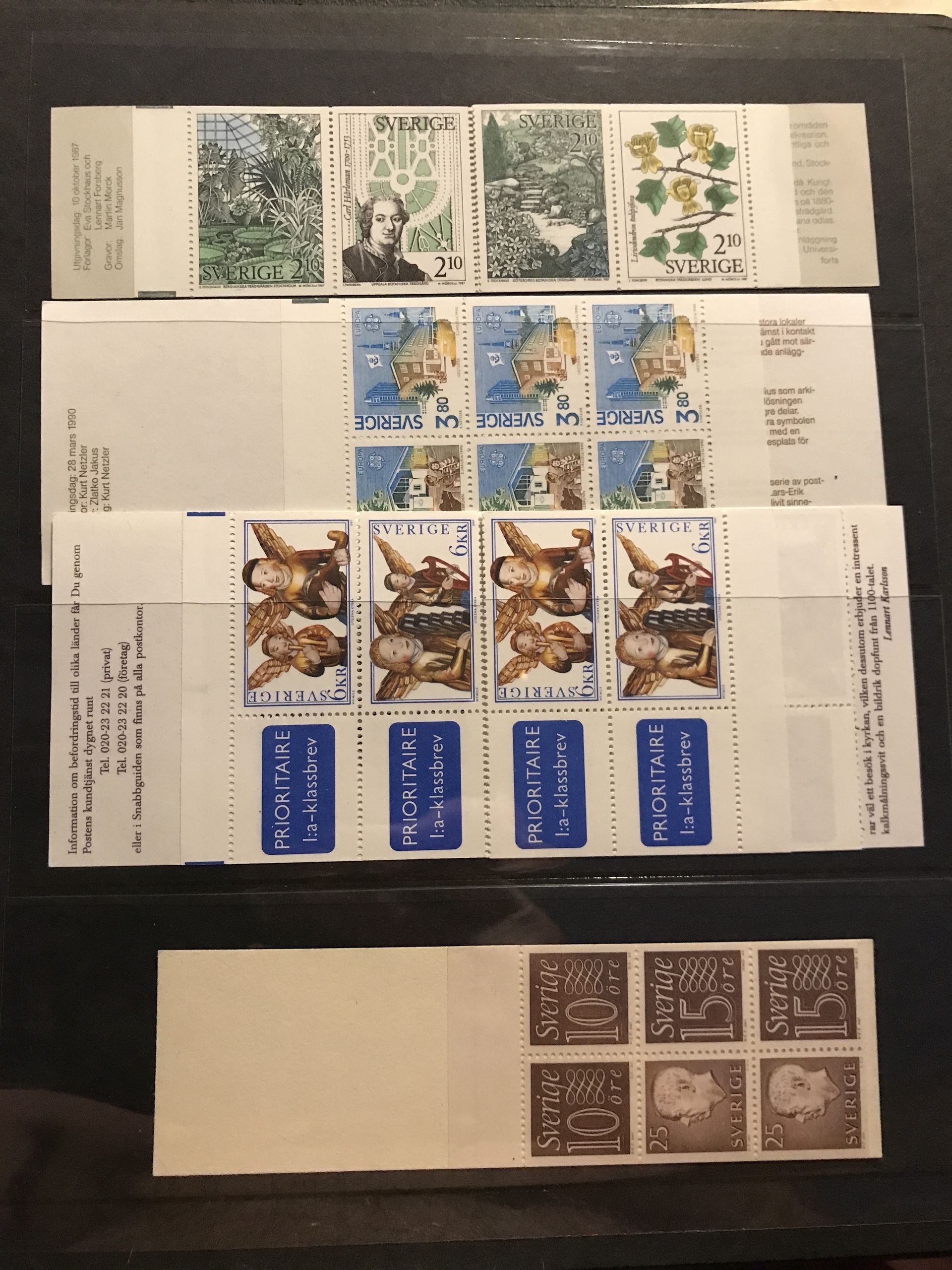 Sweden. Booklets. Two Visir binders with about 210 booklets mainly 1932–72 incl. 22 handmade. Containing e.g. four H23, six H24, one H27, three H28, 29, 31, five Swedenborg incl. four CB, H35C. Further e.g. H60 and 70 and some slot-machine booklets. Please see a selection of scans at www.philea.se.