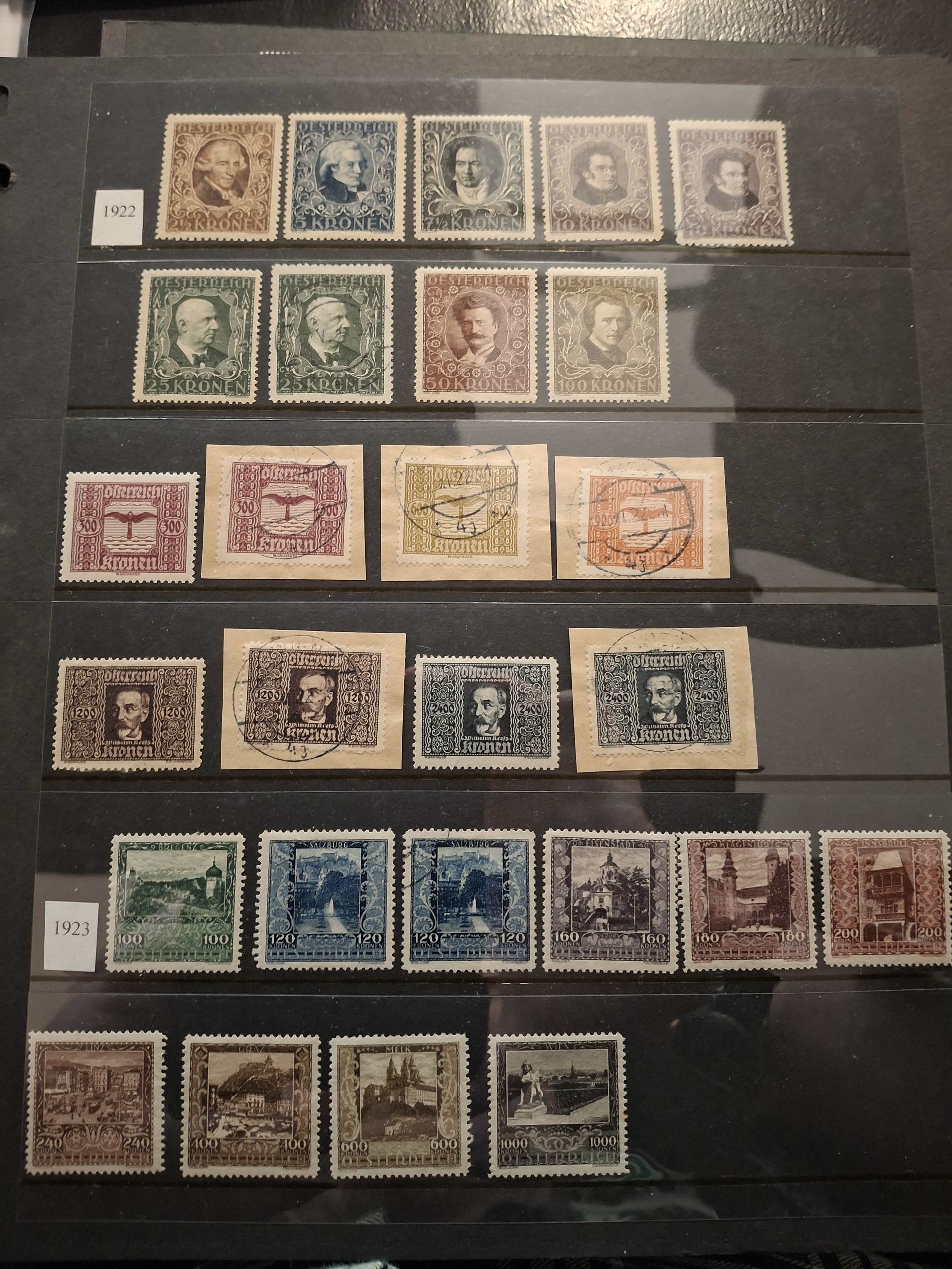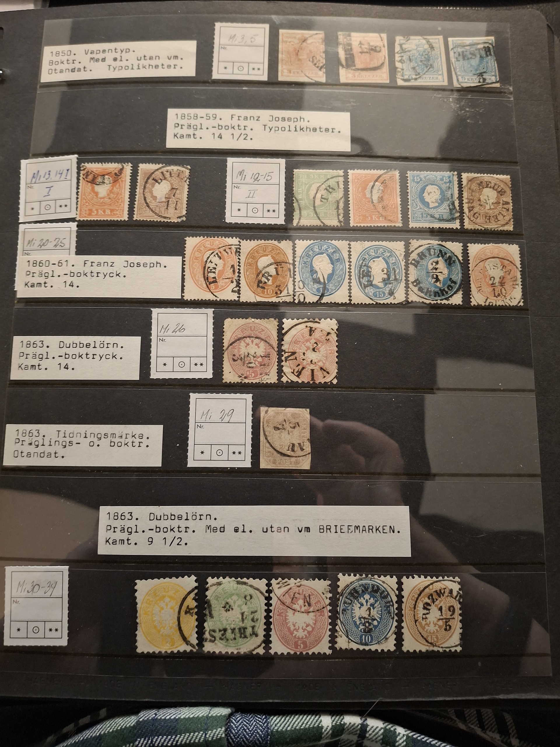 Austria. ★★/★/⊙ 1850–1994 in two albums. Mixed **/*/o collection. Classic section is specialized, different perforations. Some better 1930s series. Please see a selection of scans at www.philea.se. Mostly fine quality. Approx. 5 kg.