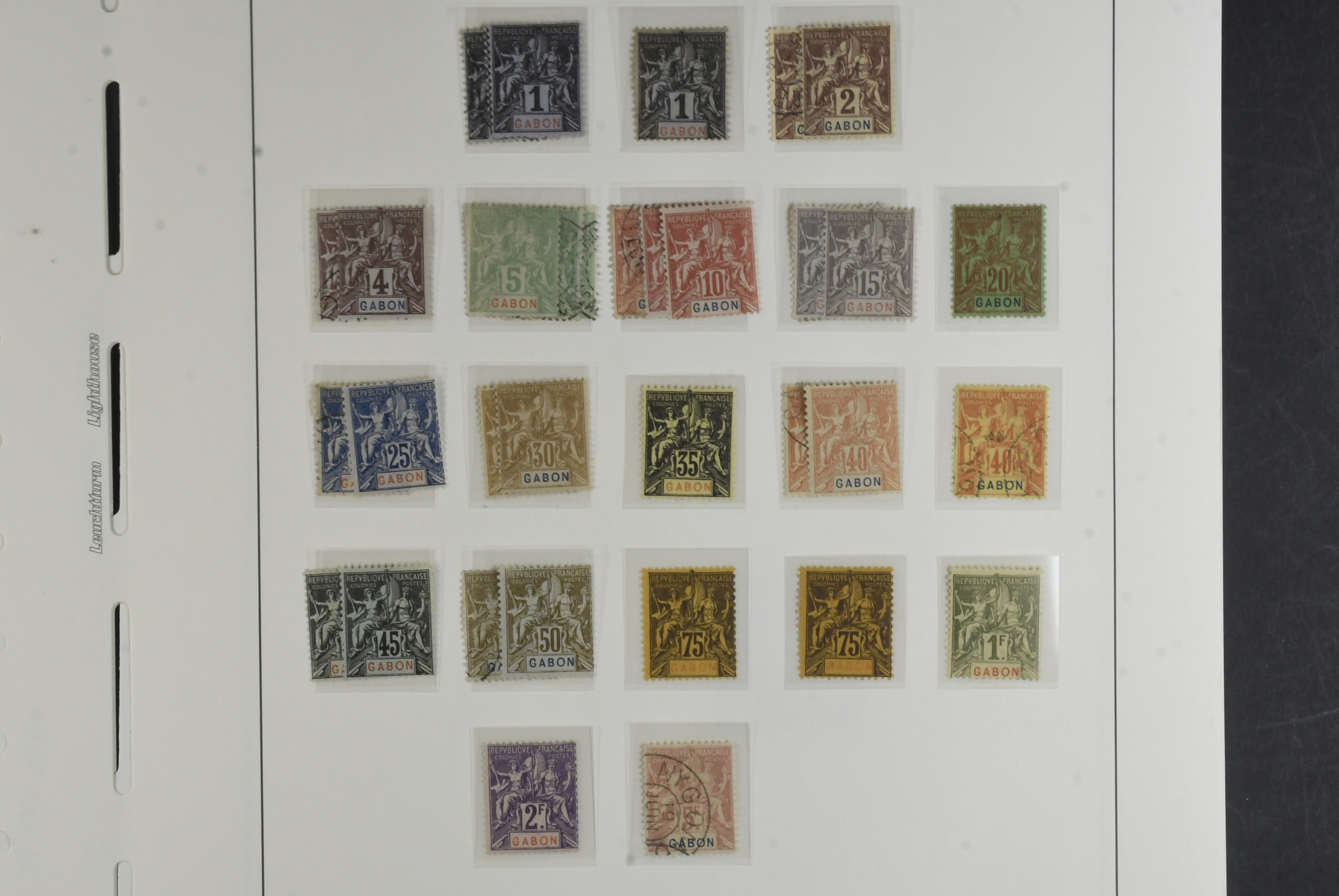 Gabon. Collection ★★/★/⊙ 1886–1932 on leaves with stamp mounts. Well filled incl. better stamps e.g. Mi1–2, 5, 11 all with faults, 13 signed Brun. Mi16–31 * and 32 ¤, 33–48 *, 46 is used. Later with many complete sets mostly mint but with some used here and there and postage dues complete. Please see a selection of scans at www.philea.se. In the beginning mixed quality, later fine. (200+)