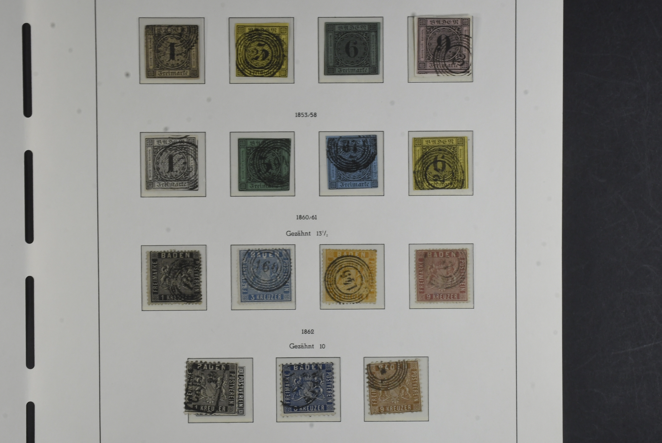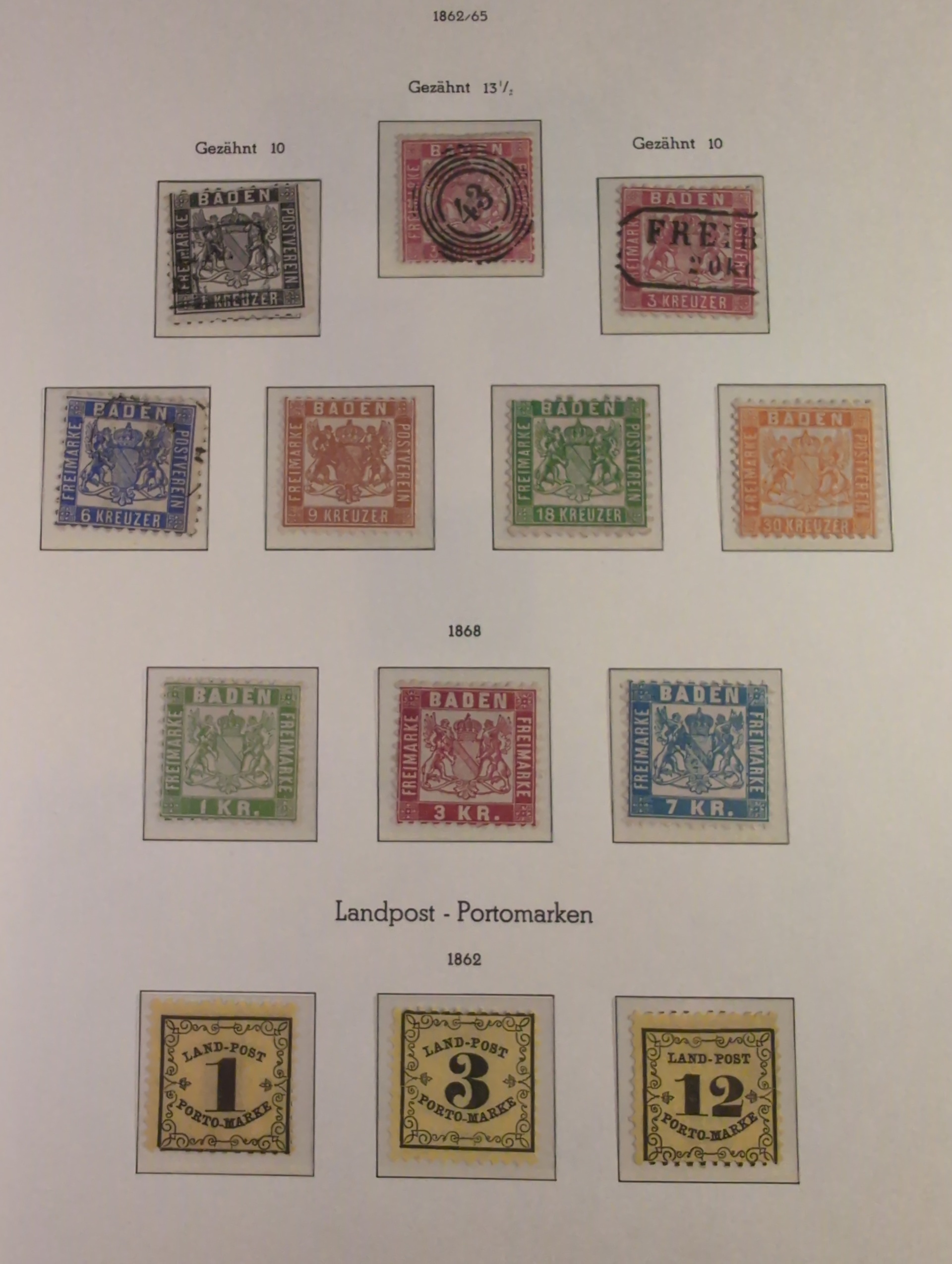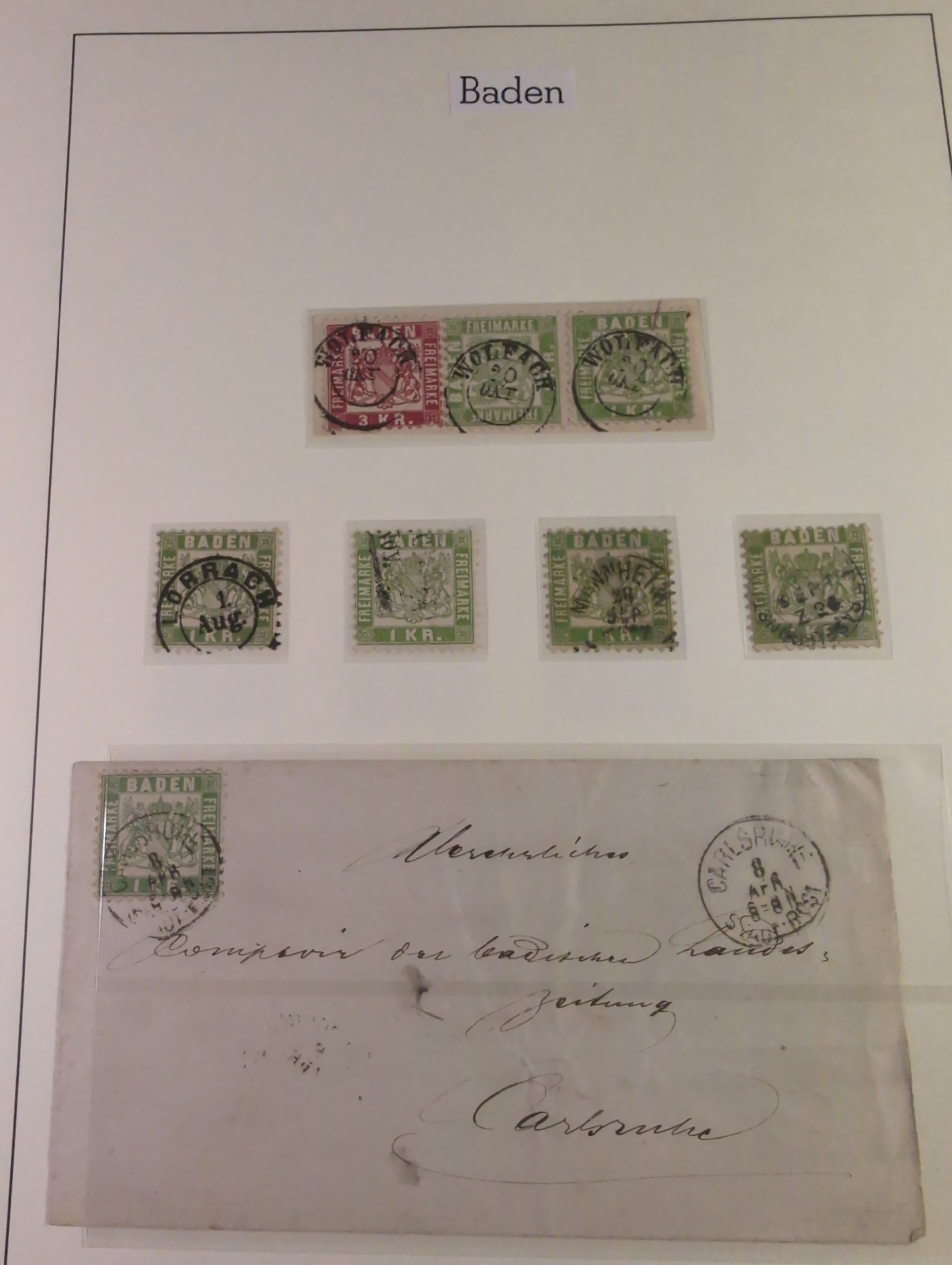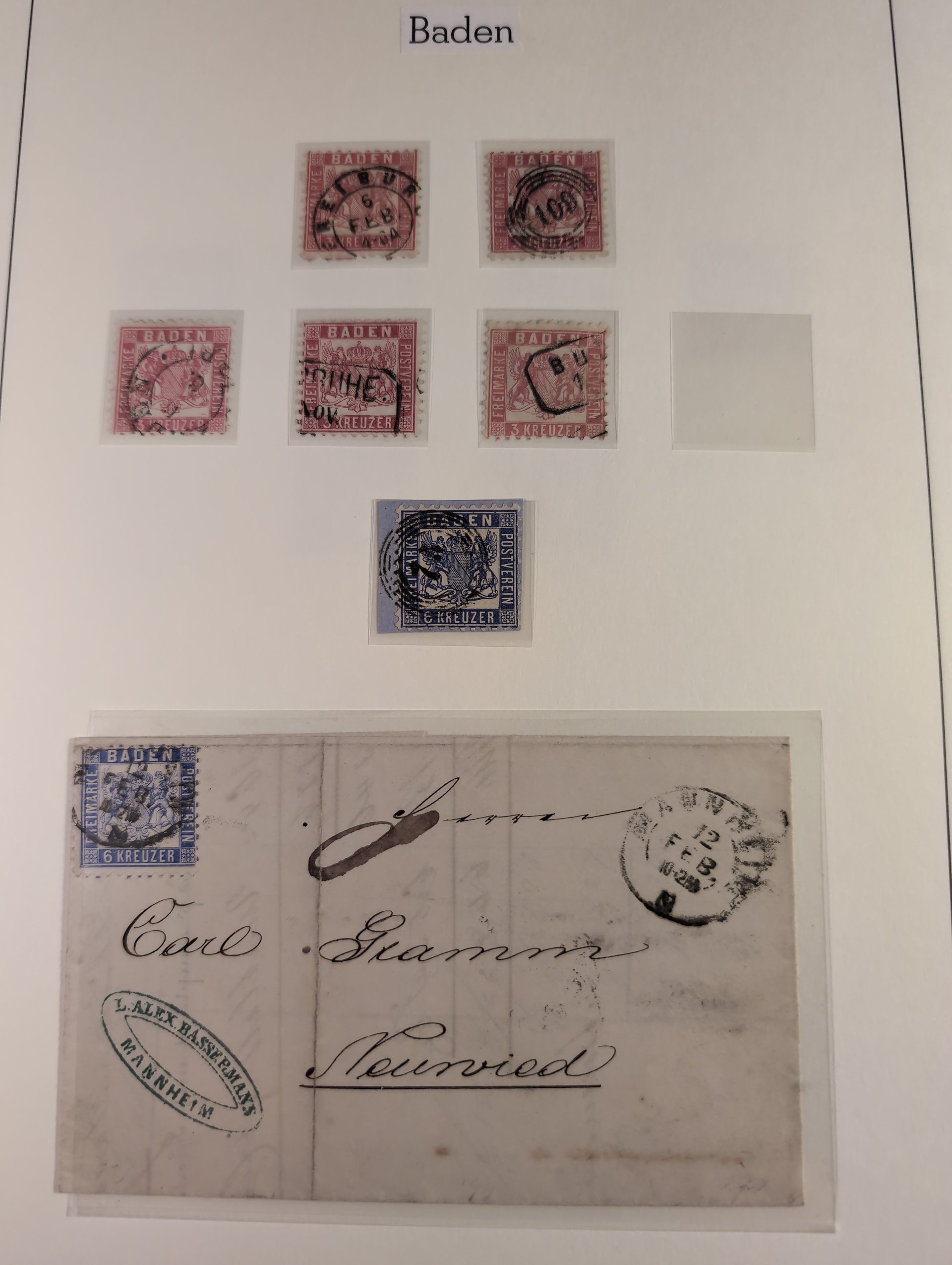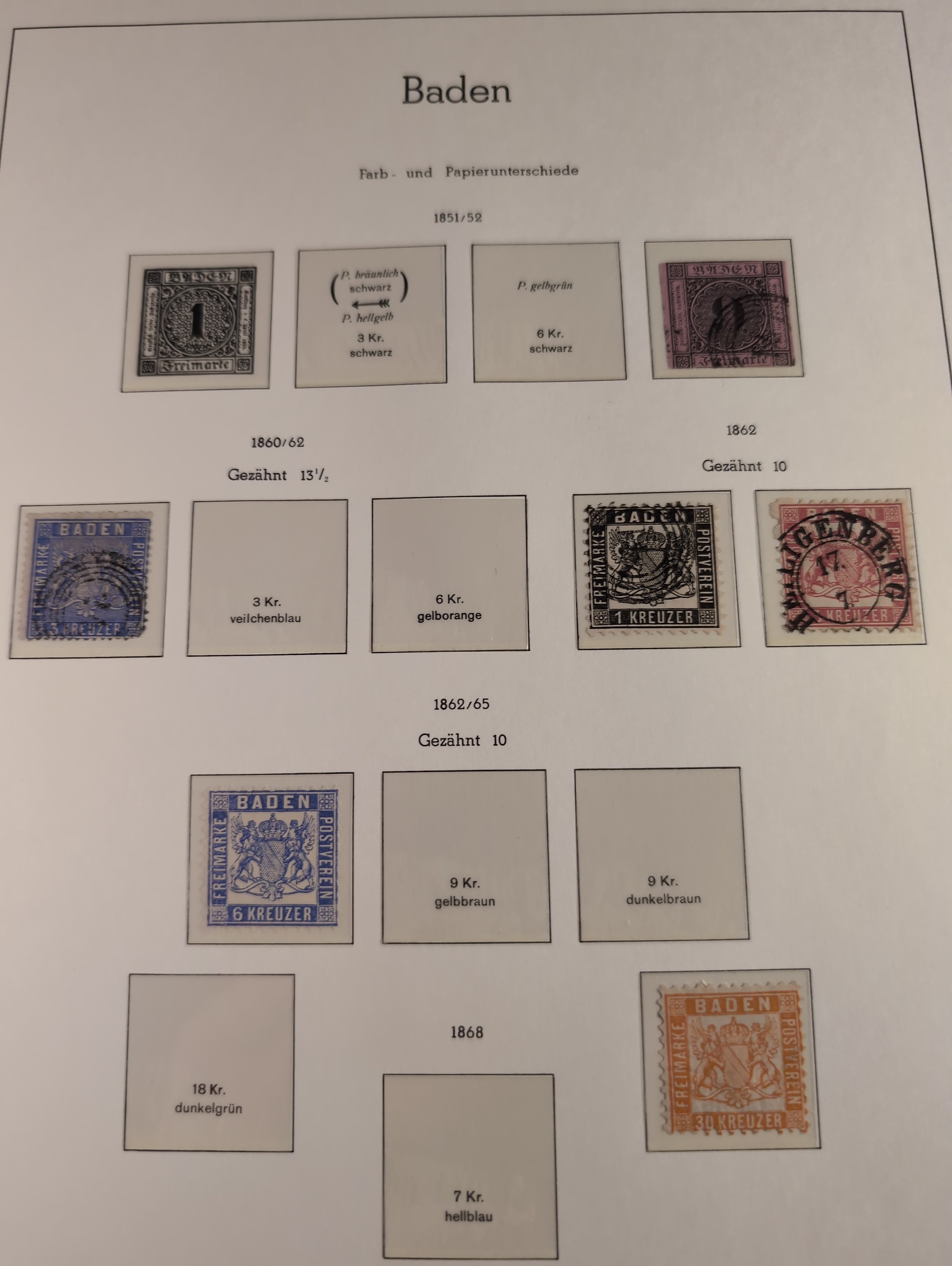 Germany, Baden. Collection ★/⊙ 1851–1868 on leaves. Apparently complete with many extra shades, mixed mint and used and sometimes both. The entire lot is presented at www.philea.se. Mixed quality. (85+4 Covers)